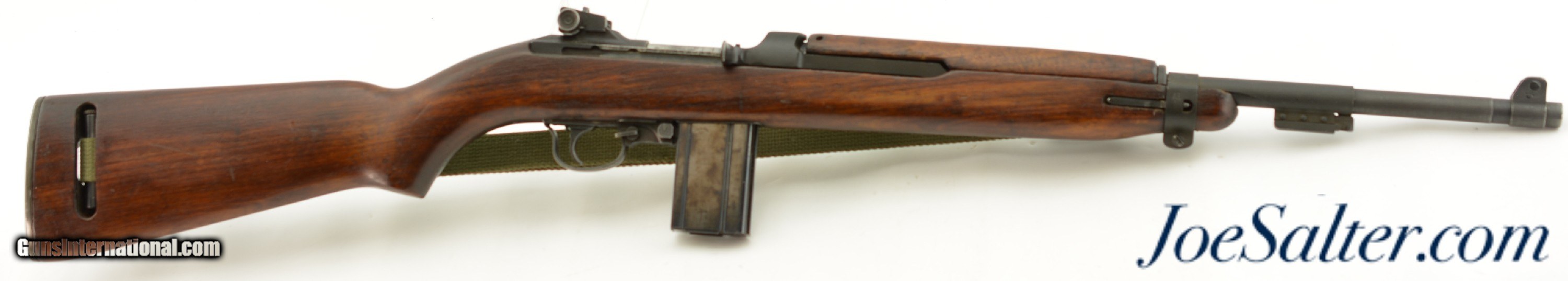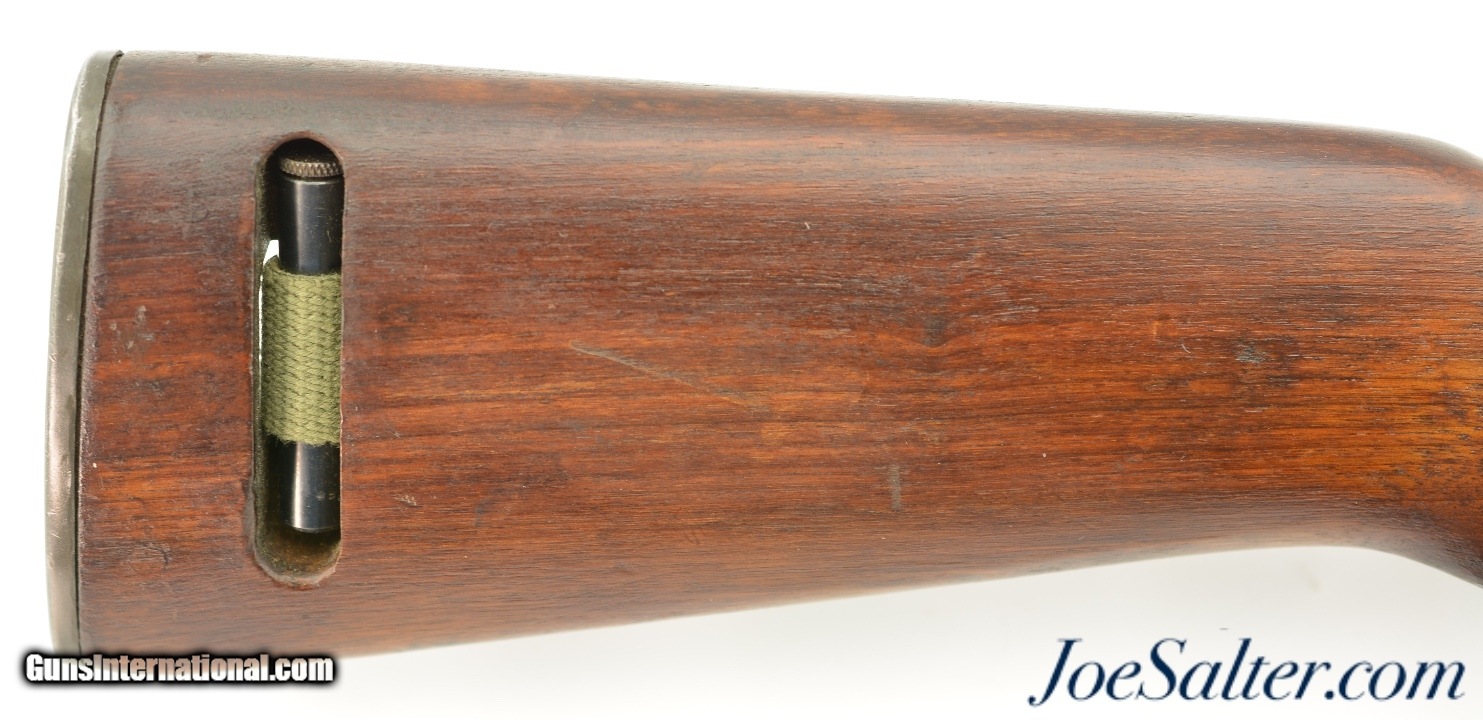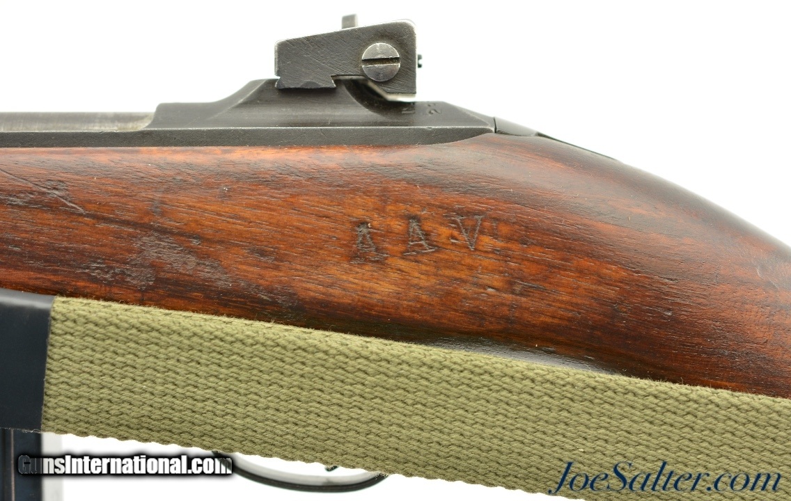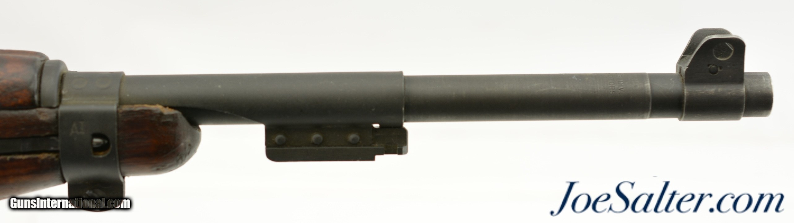 Description: Serial #2979634, .30 Carbine, 16" barrel with an excellent, bright bore. This is a handsome, post-war bayonet lug-equipped carbine that has a Saginaw marked barrel, and parts from various WW2 manufacturers fitted: "W" slide; flat "A.I." bolt; "L.G.K.T." stamped metal trigger housing; "KR" hammer; "AI" barrel band with bayonet lug; and "H (in shield)" milled adjustable rear sight. The metal retains 90-92% of a very nice armory reapplied parkerized finish, with silvering at the muzzle, along the high edges and projections, as well as within the slide raceway. The stock has an Augusta Arsenal rework stamp "AAV" with an Italian "(star) / FAT / 70" issue stamp ahead of the oiler cut-out. The wood has numerous small handling marks and blemishes scattered about the reapplied varnish and continues on the "HI" marked handguard. A single "K.I." marked wartime magazine is included, and a post-war OD canvas sling is fitted. This is a great looking M1 Carbine, and is in very good-fine condition overall. FFL or C&R; Don't forget about Free 100% Guaranteed shipping & Insurance for orders over $500 and no CC fees. ; SOLD Curio/Relic: Yes |