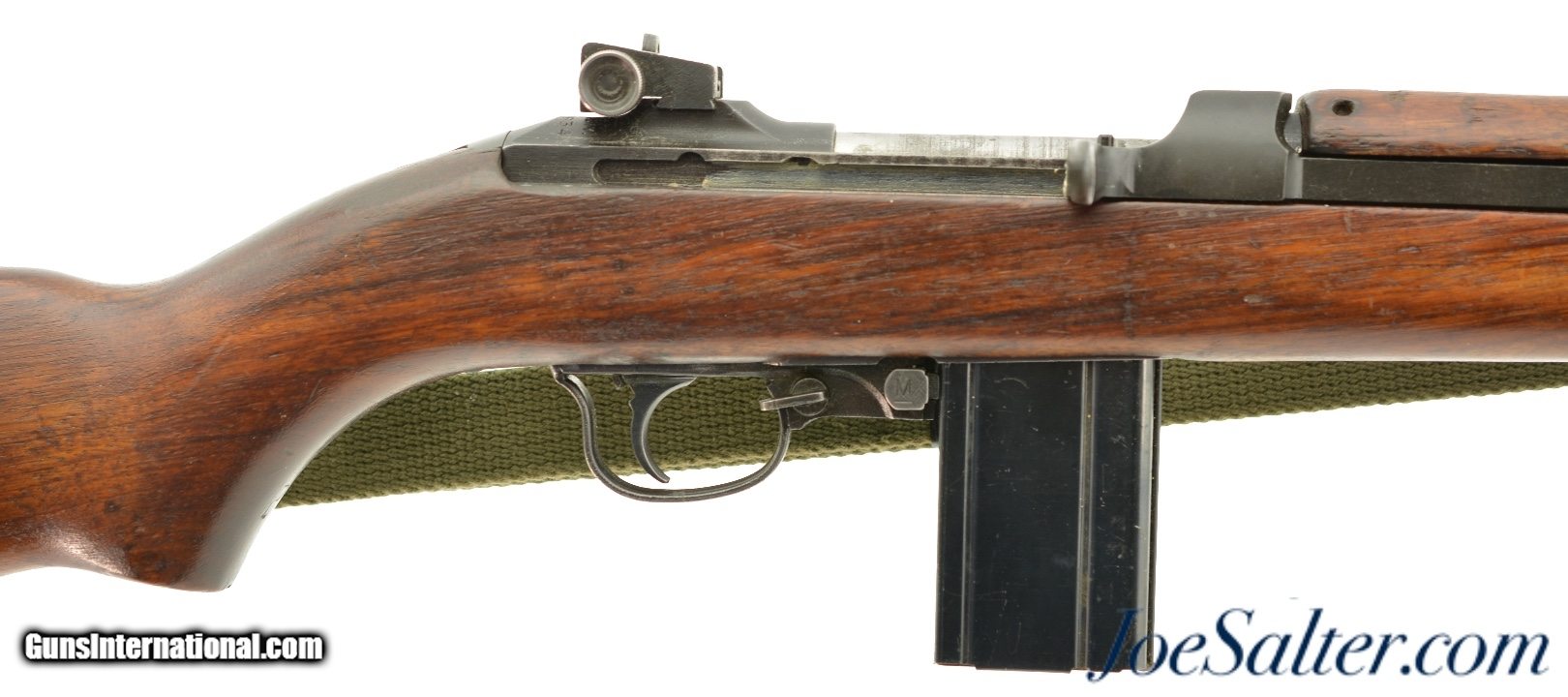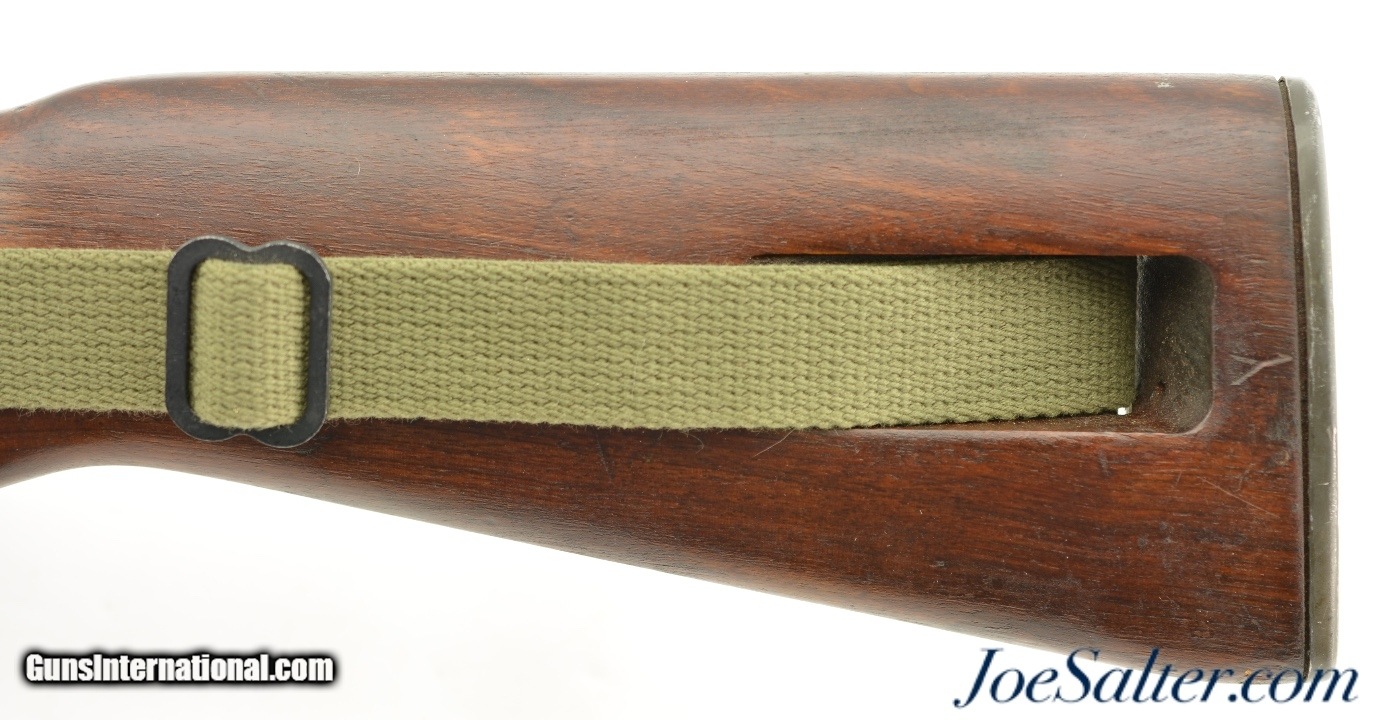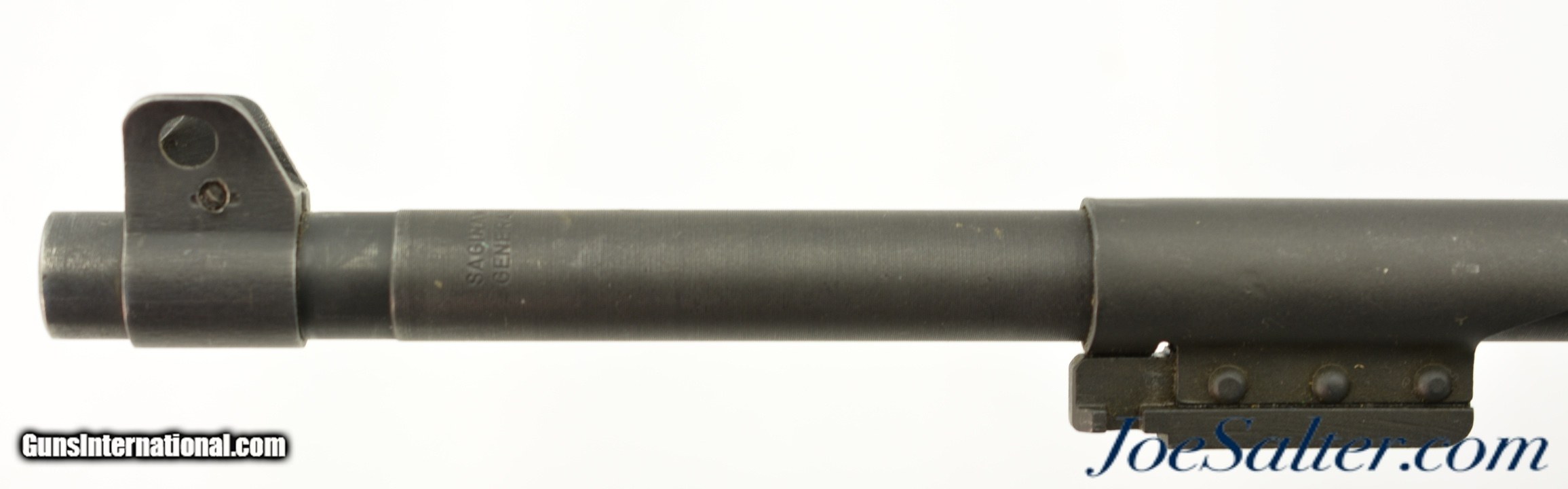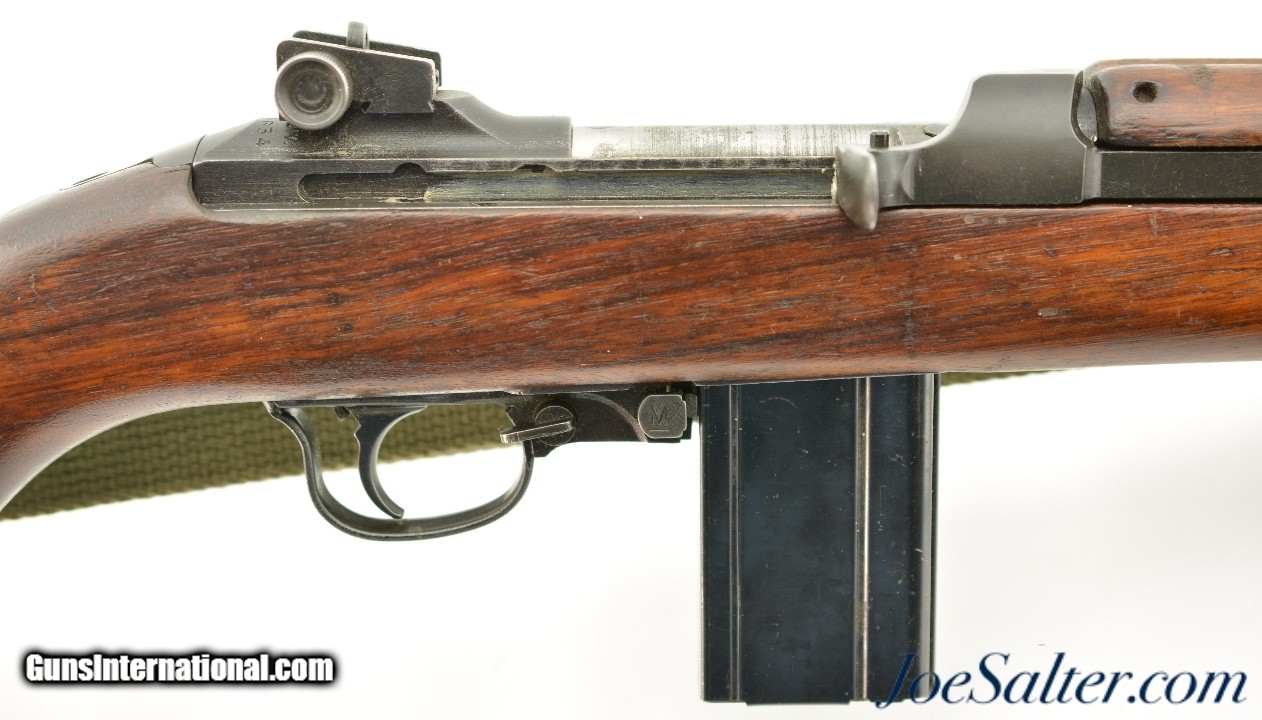 Description: Serial #2979634, .30 Carbine, 16" barrel with an excellent, bright bore. This is a handsome, post-war bayonet lug-equipped carbine that has a Saginaw marked barrel, and parts from various WW2 manufacturers fitted: "W" slide; flat "A.I." bolt; "L.G.K.T." stamped metal trigger housing; "KR" hammer; "AI" barrel band with bayonet lug; and "H (in shield)" milled adjustable rear sight. The metal retains 90-92% of a very nice armory reapplied parkerized finish, with silvering at the muzzle, along the high edges and projections, as well as within the slide raceway. The stock has an Augusta Arsenal rework stamp "AAV" with an Italian "(star) / FAT / 70" issue stamp ahead of the oiler cut-out. The wood has numerous small handling marks and blemishes scattered about the reapplied varnish and continues on the "HI" marked handguard. A single "K.I." marked wartime magazine is included, and a post-war OD canvas sling is fitted. This is a great looking M1 Carbine, and is in very good-fine condition overall. FFL or C&R; Don't forget about Free 100% Guaranteed shipping & Insurance for orders over $500 and no CC fees. ; SOLD Curio/Relic: Yes |