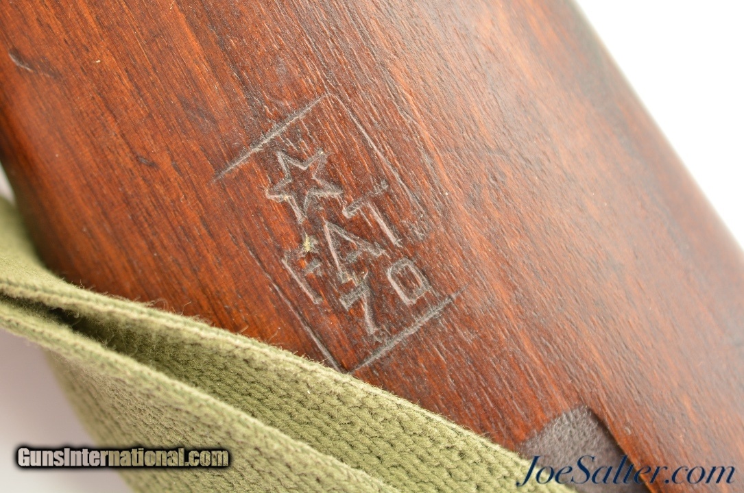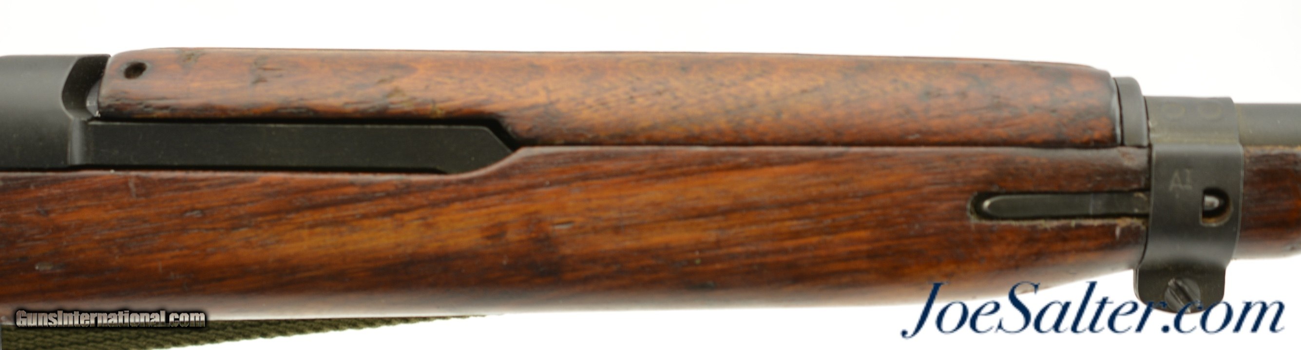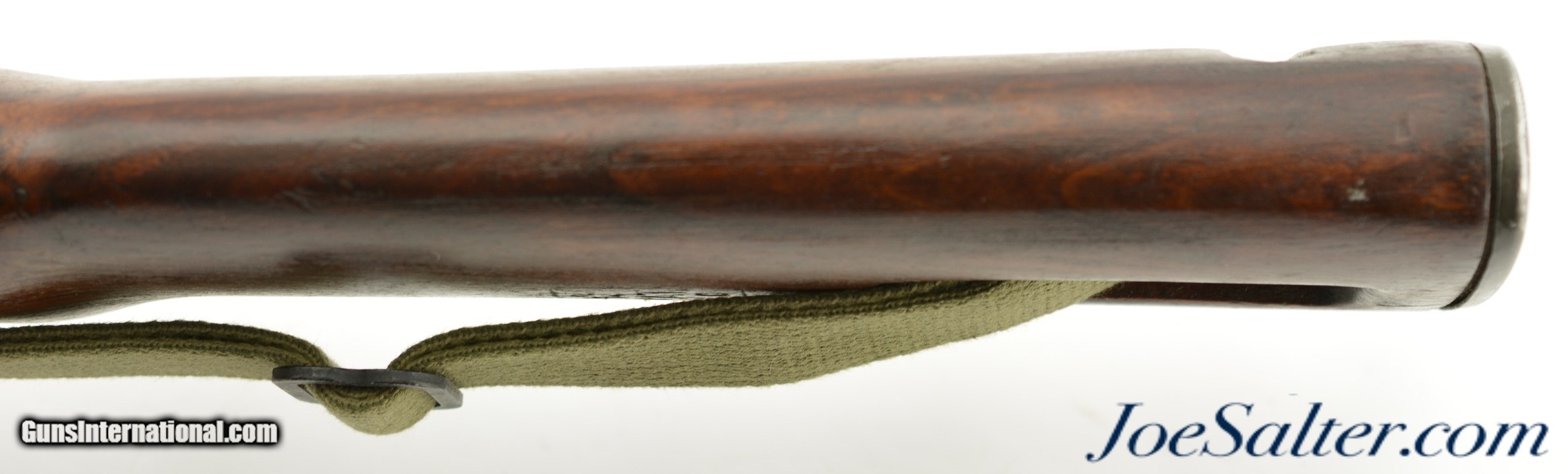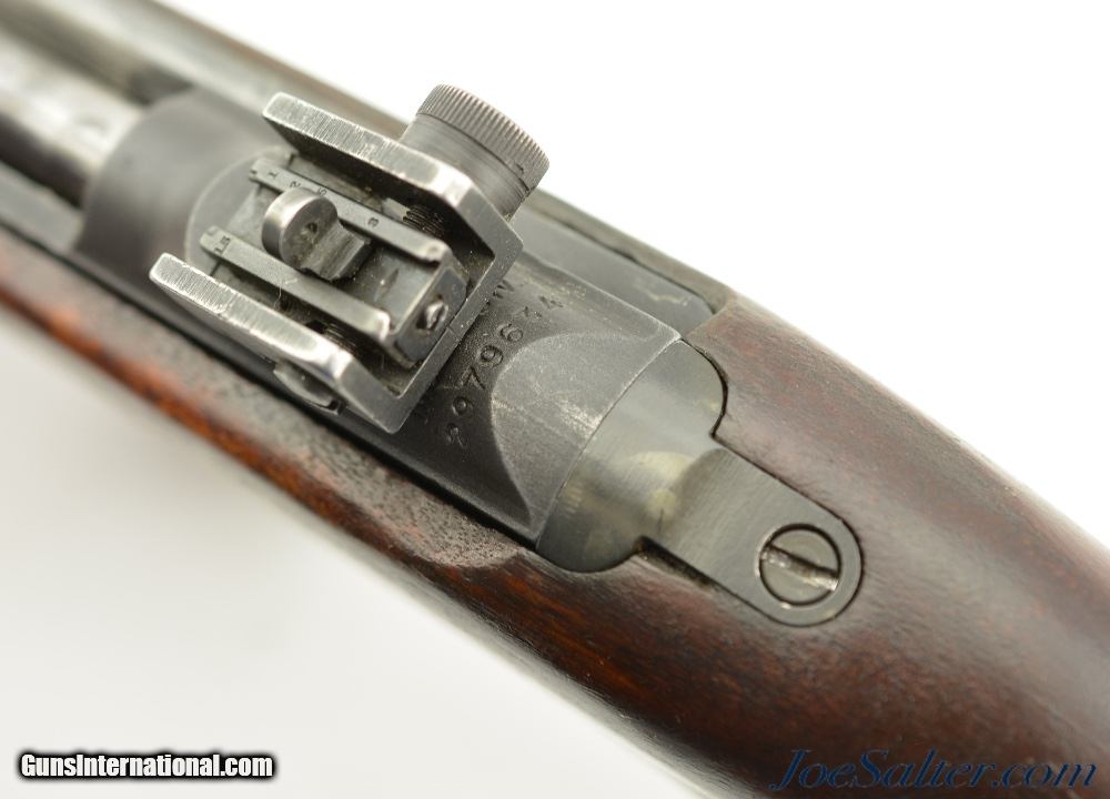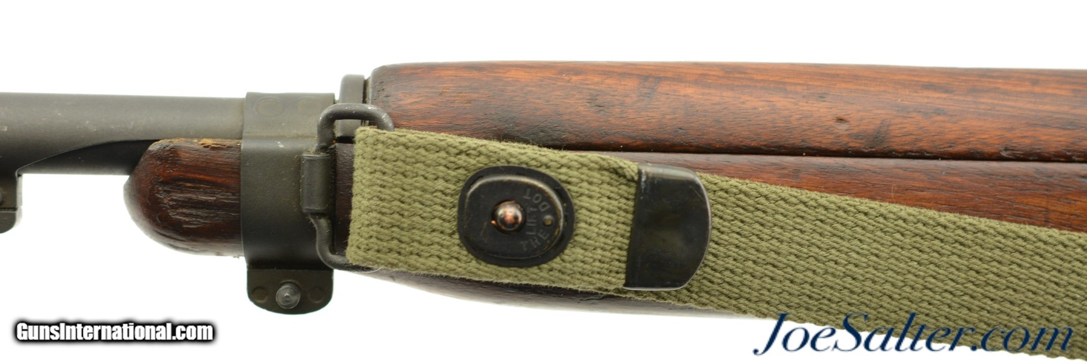 Description: Serial #2979634, .30 Carbine, 16" barrel with an excellent, bright bore. This is a handsome, post-war bayonet lug-equipped carbine that has a Saginaw marked barrel, and parts from various WW2 manufacturers fitted: "W" slide; flat "A.I." bolt; "L.G.K.T." stamped metal trigger housing; "KR" hammer; "AI" barrel band with bayonet lug; and "H (in shield)" milled adjustable rear sight. The metal retains 90-92% of a very nice armory reapplied parkerized finish, with silvering at the muzzle, along the high edges and projections, as well as within the slide raceway. The stock has an Augusta Arsenal rework stamp "AAV" with an Italian "(star) / FAT / 70" issue stamp ahead of the oiler cut-out. The wood has numerous small handling marks and blemishes scattered about the reapplied varnish and continues on the "HI" marked handguard. A single "K.I." marked wartime magazine is included, and a post-war OD canvas sling is fitted. This is a great looking M1 Carbine, and is in very good-fine condition overall. FFL or C&R; Don't forget about Free 100% Guaranteed shipping & Insurance for orders over $500 and no CC fees. ; SOLD Curio/Relic: Yes |