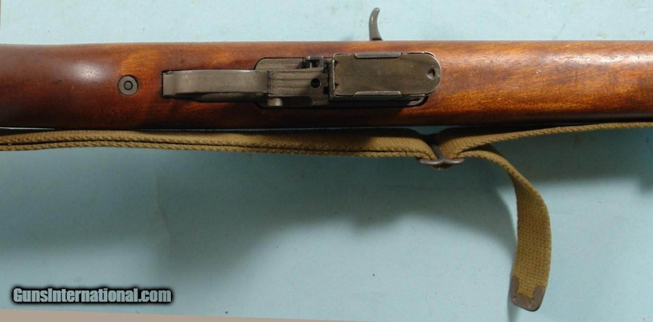 Description: WW2 WWII ALL ORIGINAL EARLY I.B.M. OR IBM CORP. U.S. M1 M-1 CARBINE IN NEAR NEW CONDITION WITH ORIGINAL WW2 SLING AND CARRYING CASE. Serial numbered in the 3,xxx,xxx range barrel dated 10-43. Best early low wood original I.B.M. we have ever seen. Has all the original Parkerizing and wood finish. Perfect Ordnance “CROSSED CANNONS” stamp on stock. Sling cut out slot with perfect and correct “JL B” Ordnance Inspector’s stamp. Correct low wood stock and handguard. Early small rear battle sight and correct front sight. Perfect working order and mint bore. Original magazine. Brought back from the Pacific by a U.S. Naval officer at the end of the war. Exceptional. SOLD Curio/Relic: Yes Rifle Caliber: .30 Carbine |