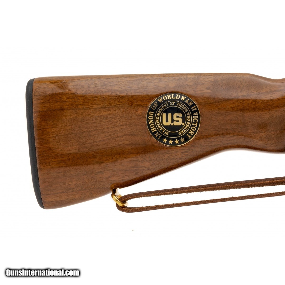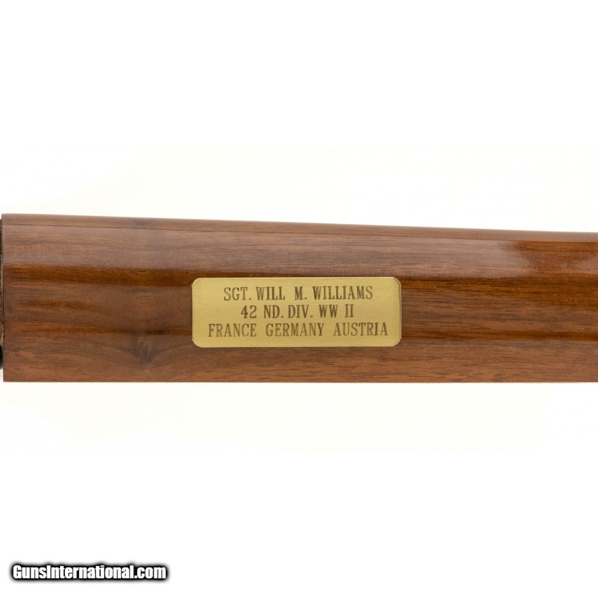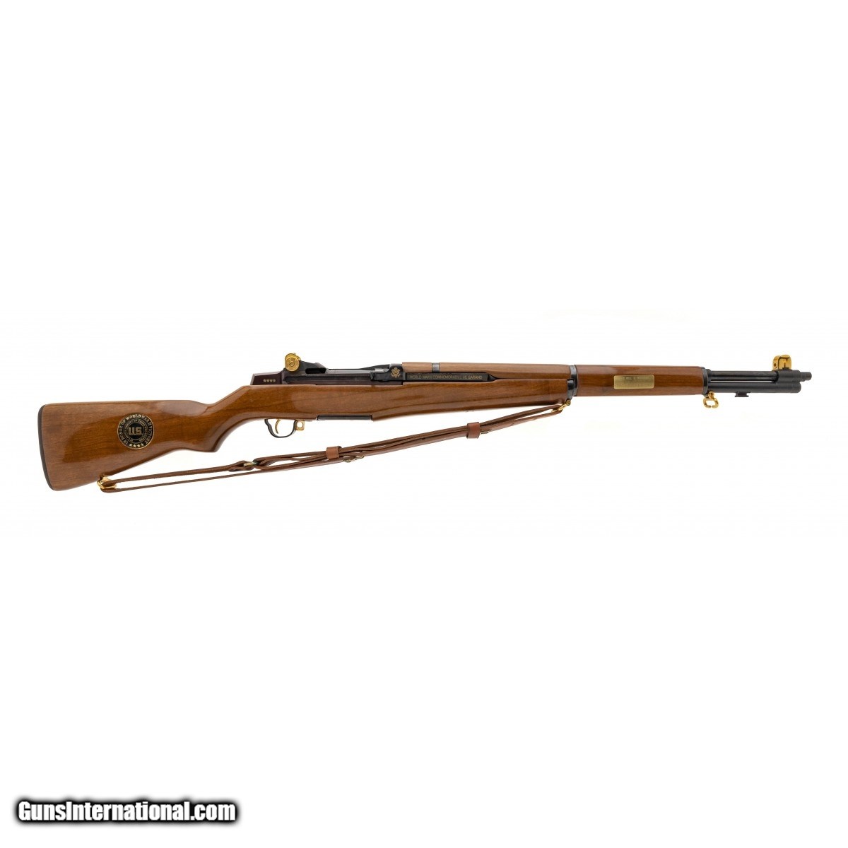 SN:WW0356: modern production, .30M1 with a 24"" barrel. Bore is in excellent condition. WWII commemorative M1 Grand with gold plated sights-small parts, high gloss wood finish and SGT Will M. Williams engraved plaque on front off rifle. Overall condition is excellent. Comes with box.