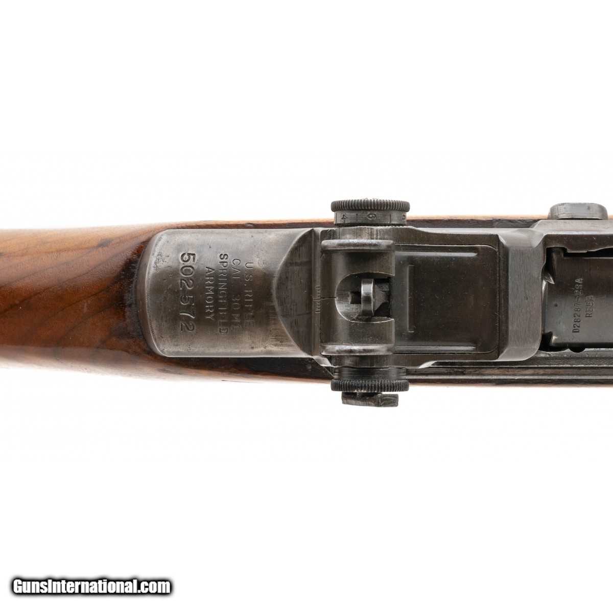 Serial No. 502572, manufactured in March 1942, chambered in .30-06, 24"" round barrel dated 9-41. Early M1 with a Winchester trigger guard, op-rod has not been modified. Stock has been sanded and revarnished, faint Springfield Armory cartouche is still visible. Bore excellent with strong rifling present. An affordable early M1!