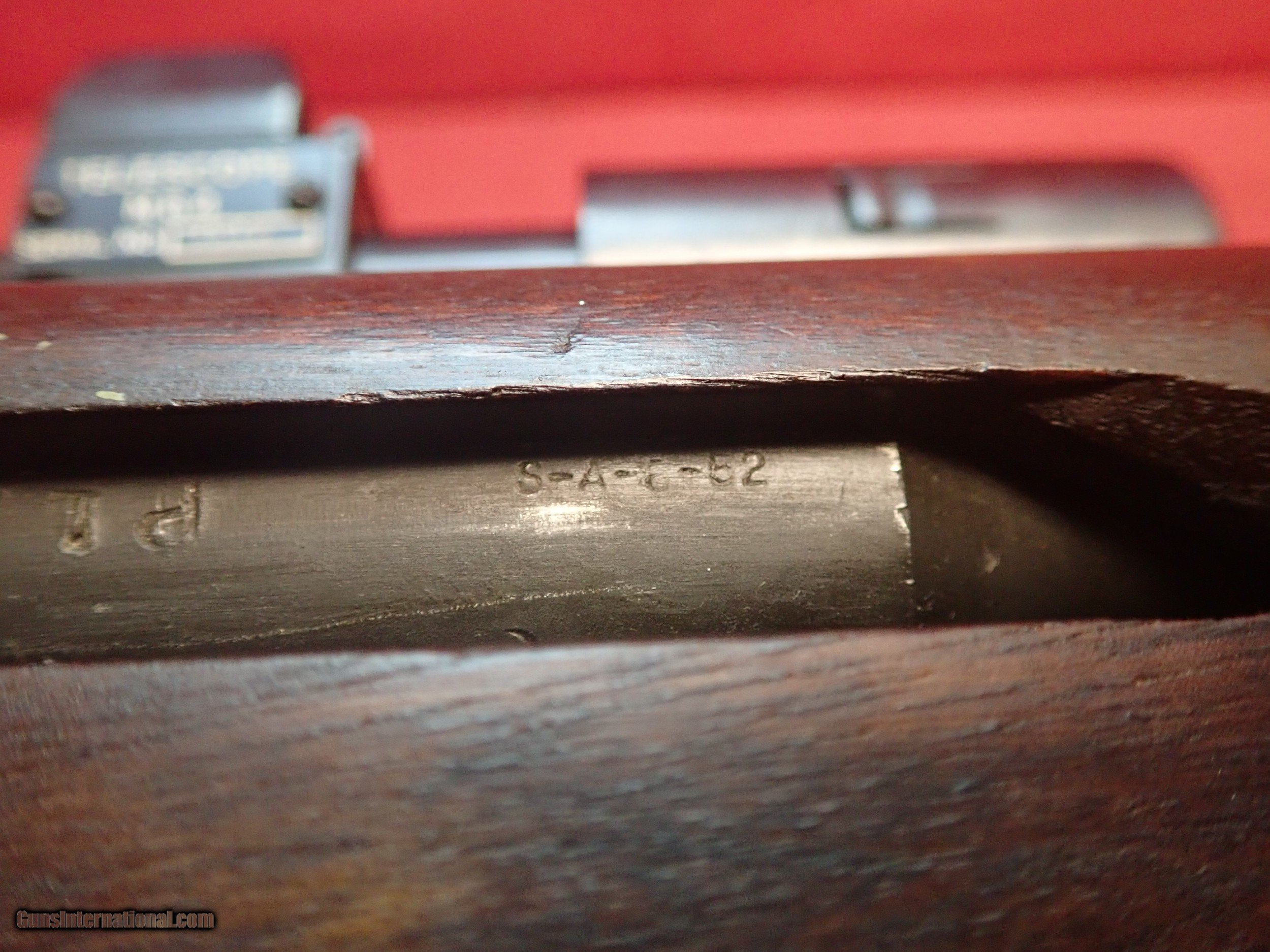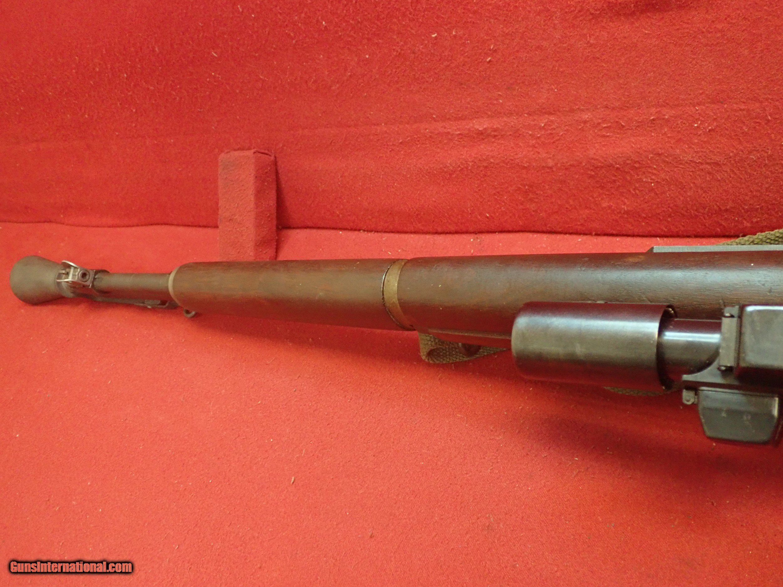 Description: **SOLD** US Springfield Armory M1D Garand .30-06 semi automatic rifle, dated to 1952. This rifle is a standard M1 Garand service rifle that has been modified to accept a scope, in order to make the rifle more suitable for a sniper or designated marksman role in a combat unit. The mounting system was designed by John Garand, and consists of a mounting block on the rear of the barrel. The rear handguard is shortened and the mount attaches with a large single screw system. This particular rifle is fit with a genuine M84 rifle scope, and also includes an original flash hider which can easily be fixed to the muzzle. The rifle itself is in excellent condition, and retains many Springfield Armory parts, including the trigger group housing, safety, hammer, operating rod (with radius cut) and the bolt. The muzzle and throat were gauged using a Brownells tool, and they showed virtually no wear or erosion on the throat or the muzzle, with a measurement of 1 on the throat, and not even reaching 1 on the muzzle. The rifle includes a number of accessories, including a sling, leather cheek piece, flash hider, rubber eyepiece, and a very rare original cloth scope case, in addition to a white plastic chamber flag, rear sight cover, and charging handle cover. Please refer to the photos to further assess the condition of the rifle. This is an incredibly nice example of an M1D, don't miss out on owning this beautiful piece of US military history! SOLD Curio/Relic: Yes Manufacturer: Springfield Armory Model: M1D Serial Number: 2881157 Caliber Info: .30-06 |