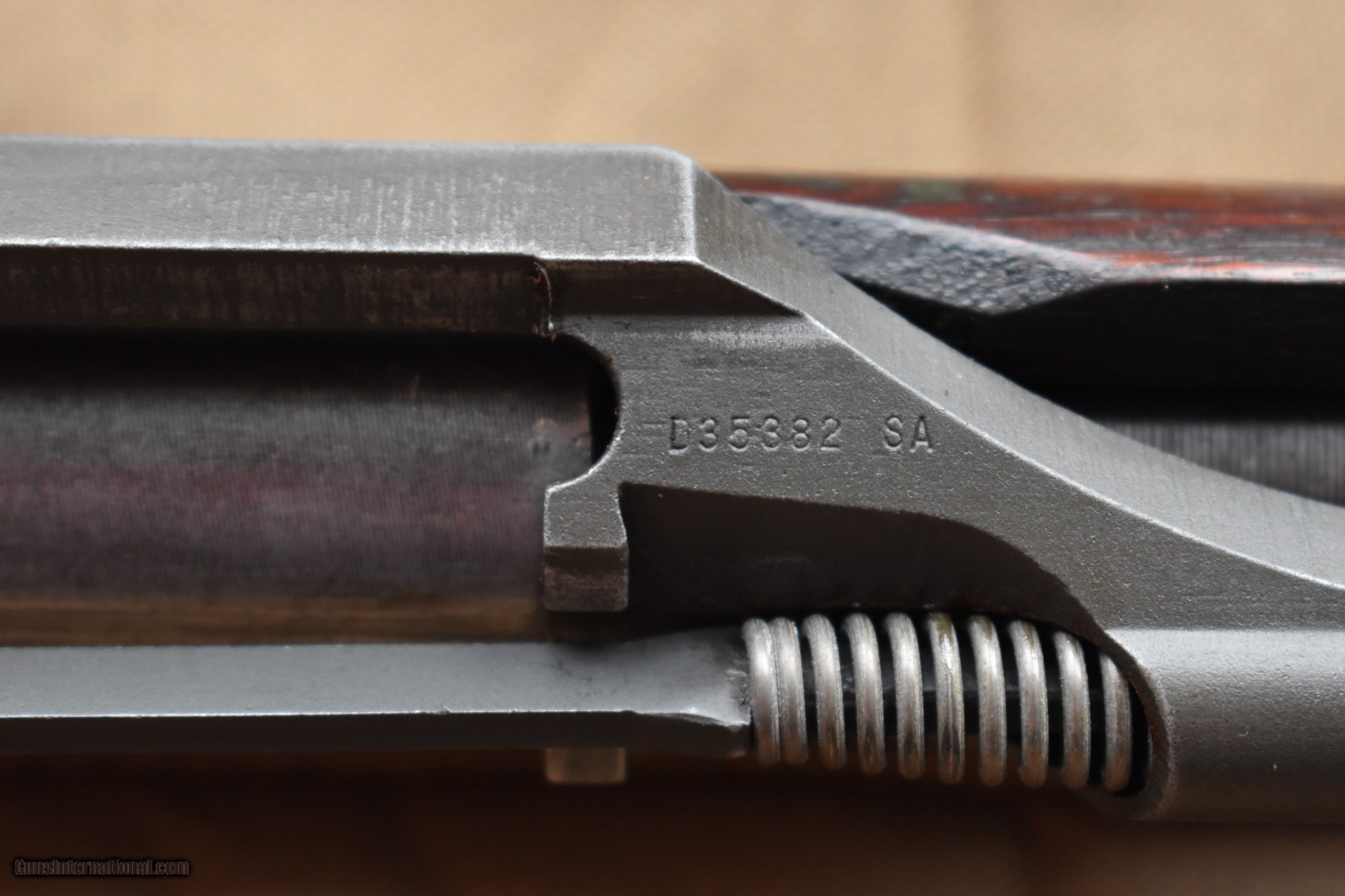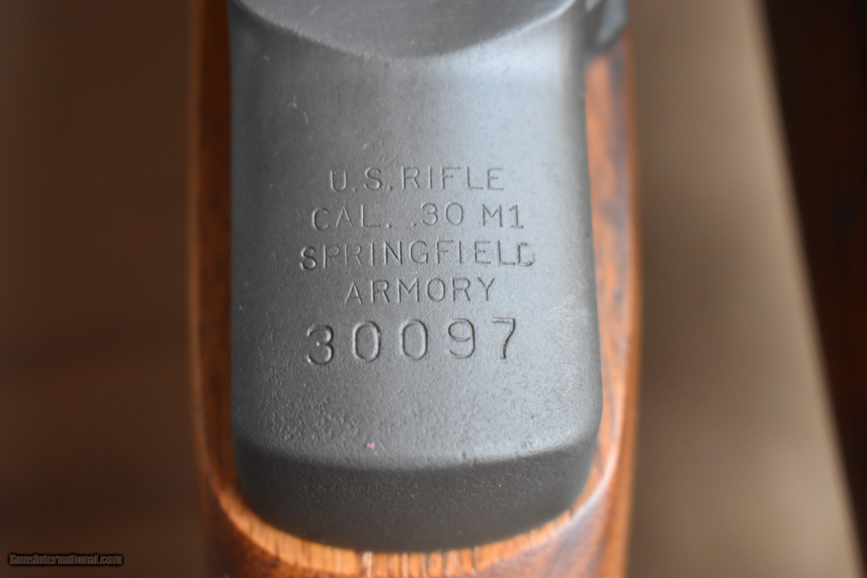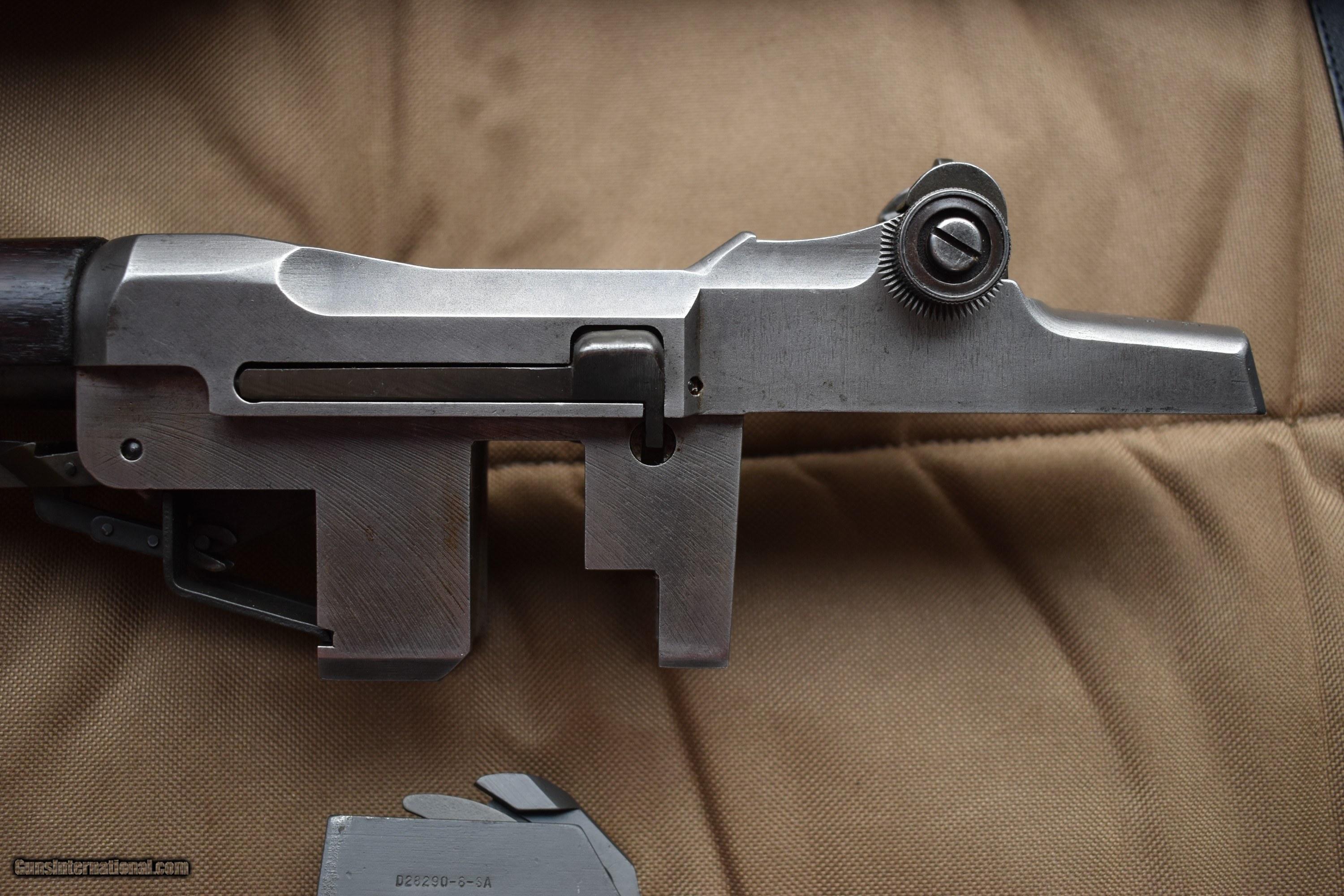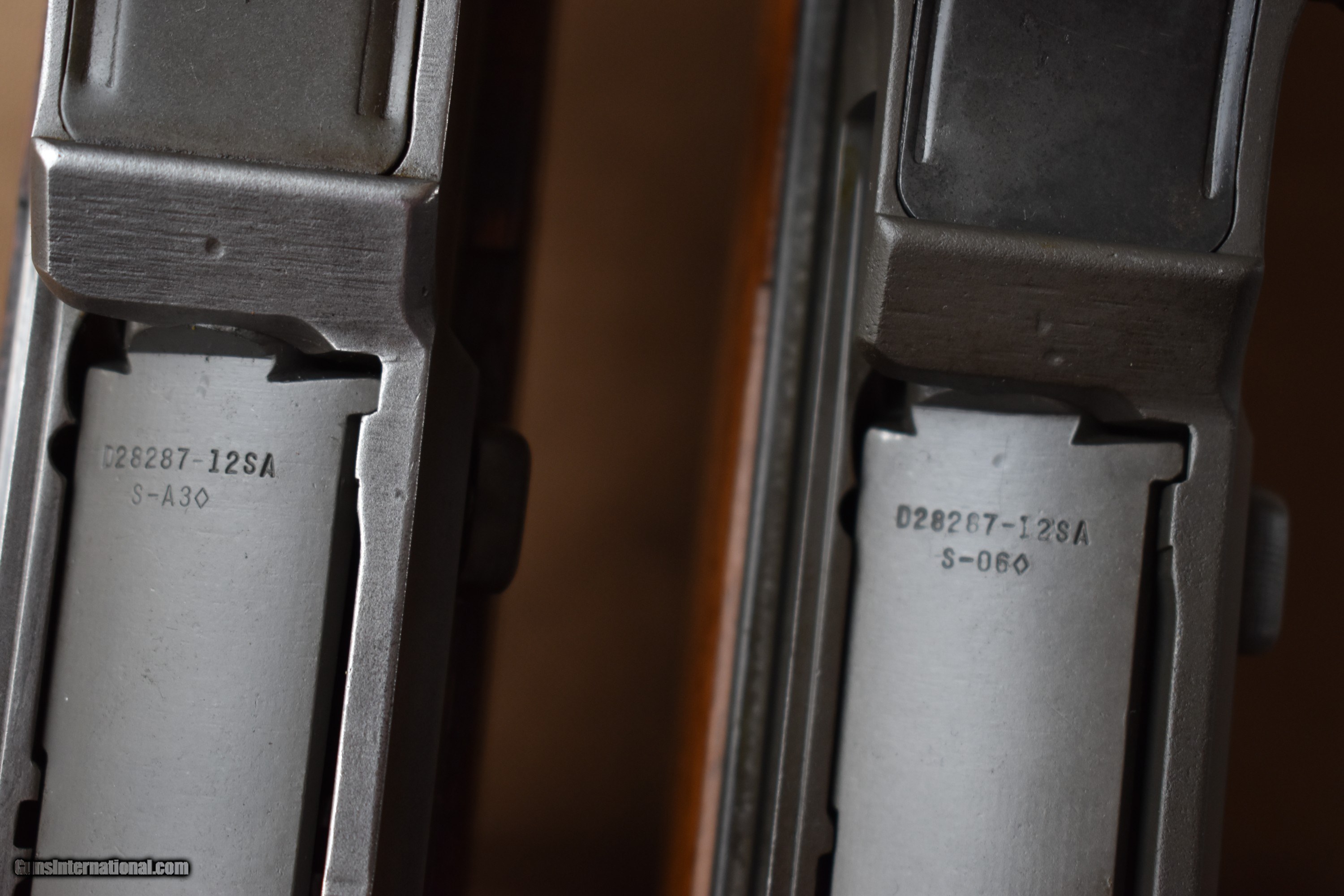 Description: Here are a consecutive pair of prewar M1 Garand rifles. Serial numbers 30097 & 30098. March 1940, gas trap era. Both have the 7th round modification. 30097 with CMP Cert. Expert grade, New Criterion barrel, New wood. Typical expert grade, mix of parts. Light pitting on the heel and under the heel. 30098 with CMP Cert. Field grade. SA 7-50 barrel MW=5 (M2 round almost goes in to the case), TE=2, bright bore. Mix of parts. 30098 was purchased by myself from the CMP, 30097 was found a few months later on the net. $100 shipping in the lower 48. $3900. Check or MO only. SOLD |