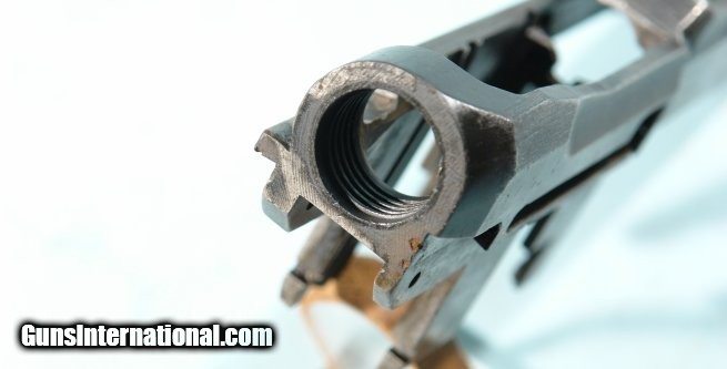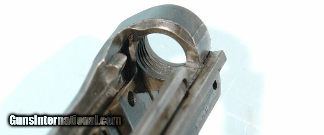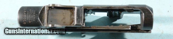 Description: EARLY WW2 SPRINGFIELD U.S. M-1 OR M1 GARAND .30-06 RIFLE RECEIVER. CIRCA MAR. 1943. Serial number "1,445,XXX" with "U.S. Rifle/Cal. .30 M1/ Springfield Armory" address. Stripped of all it's parts but with exceptional barrel threads and knurling for battle sight. All other edges un-filed and excellent. Never been cleaned so original parkerized finish and crisp address. No weld marks either so NOT a refurb dewat. Receiver leg marking with "8 0 2 7" and a diamond and under that "D 28291-17". No dings or battle damage but some pitting to undersides where wood would normally be touching it so ready to have an early WW2 complete rifle built around it. Has cosmoline grease in recesses from storage so NOT rust(see photos). SOLD Curio/Relic: Yes Rifle Caliber: .30-06 Springfield |