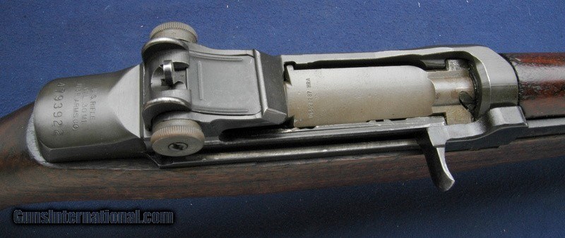 Description: Post Korean War vintage M1 Garand made by H&R. I'm not going to list all of the parts on this rifle, because it is a shooter, not a collector grade gun. That being said, it has an HRA bolt and an SA barrel dated 8/50. ME is 2, TE is 2+. That is a barrel in high excellent condition, as a new condition barrel will rate a 1 in both areas. The bore itself is bright and shiny. This is a shooter. No import stamps. The visible cartouches are a serrifed P on the inside of the pistol grip, and a thin SA over ?? in a box on the left side of the buttstock just to the rear of the pistol grip. That will be a rebuild stamp. Complete and fully functional M1 Garand as sold by the CMP as a Service Grade. $50 shipping to the lower 48, 3% surcharge for using a CC. If you choose to pay with a personal check, we will hold the item for up to 10 days to make sure that it clears. Please expedite such pymts as we will hold an item on your word for 5 days. SOLD Rifle Caliber: .30-06 Springfield |