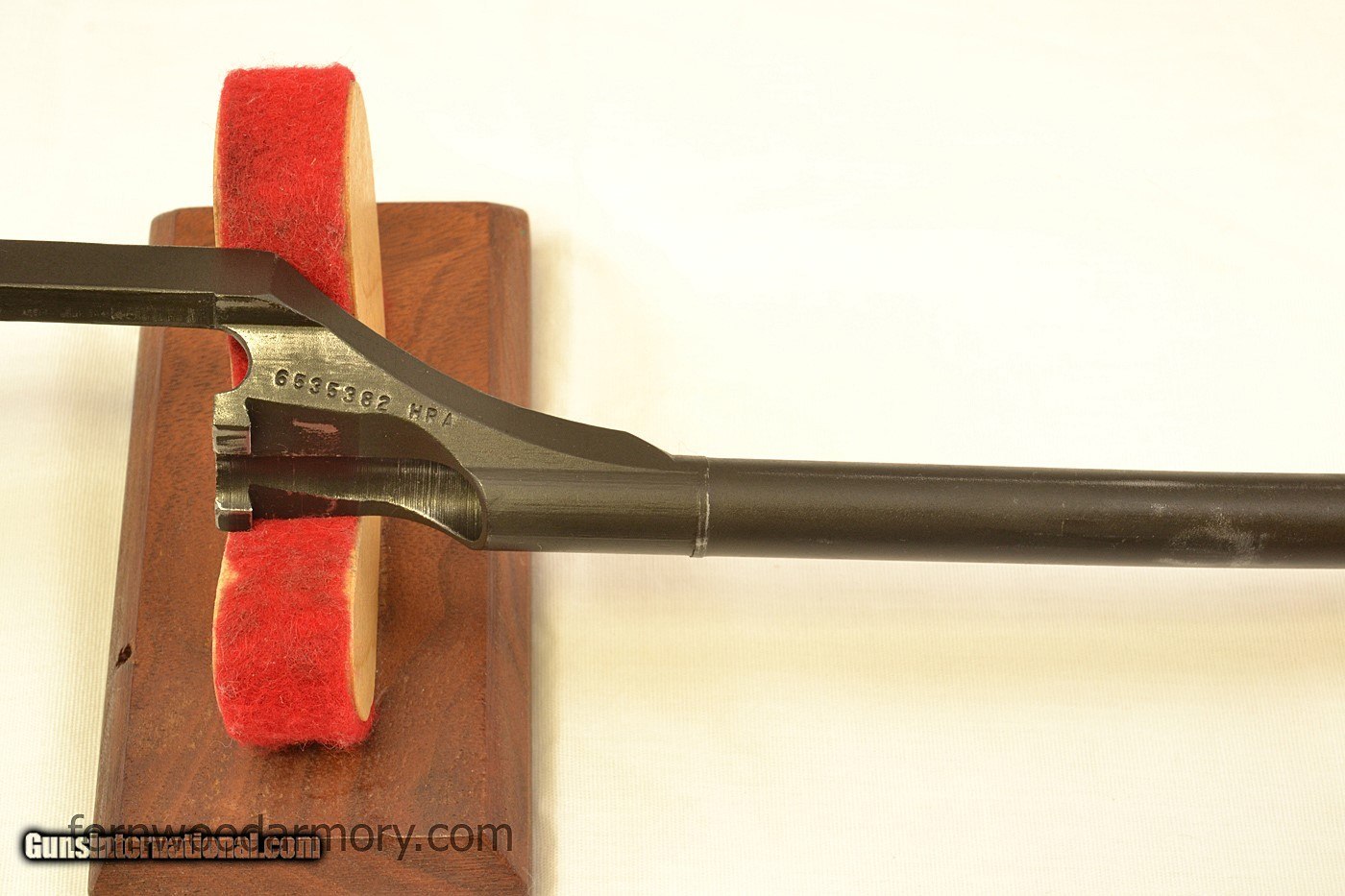 Description: SOLD A very nice example of a postwar M1 Garand. This is a Harrington & Richardson M1 rifle, serial number 5616xxx. Barrel is HRA, dated May 1955 with a bright bore. No rebuild or import marks. This M1 rifle is in excellent used condition. The barrel and receiver appear to have original finish, and are in nearly new condition. The rifle has hardly ever been fired – note condition of the barrel’s gas port, op rod piston, and gas cylinder lock screw. All marked metal parts are HRA, all are described below and shown in photos. The Garand has been disassembled, cleaned, lubricated, and test fired. Parts were clean for photos, coated with oil and greased where appropriate when reassembled. Sling and two M1 enbloc clips (no ammo) are included. Plus: a free repro M1 Garand canvas carry case, marked US. SPECS: Receiver: marked 6528291 on leg, heat lot G. Marked on top with serial number and U.S. RIFLE CAL. 30 M1 H. & R. ARMS CO.. Barrel: marked HRA 6535448 5-55 RS52, with proof marks. Very likely original to the receiver. Bore, crown and rifling are excellent. Chrome pads at gas port, chamber in the white. Barrel Gauge Measurements: Muzzle Wear:1, Throat Erosion: 2 Clip latch: square front type, unmarked Op rod: marked 6535382 HRA Op rod catch: Type 2, unmarked Bullet guide: stamped with notch Follower: unmarked Follower arm: no bevel, unmarked Follower rod: long fork, riveted, unmarked Bolt: marked 6528287 HRA U Firing Pin: Half-Round Front sight: .700 wide Sight knobs: elevation marked HRA, windage marked DRC Trigger housing: marked 6529290-HRA N. Trigger guard: stamped with stamped hook Trigger: unmarked Hammer: marked HRA 5546008 Safety: marked HRA Gas cylinder: wide sight platform, unmarked on bayonet lug, flat on top of rear ring, finish very good Gas cylinder lock: unmarked Gas cylinder screw: cross slot, marked HRA and O Stock: USGI walnut, with stars & eagle stamp (faint) and circle “P”. Very nice condition with minimal dings, no cracks. Handguards: walnut, nice match to stock Sling: web, used, very good condition TERMS We are an FFL dealer. Please read through the terms below before or purchasing. PAYMENT -Checks, money orders and credit cards accepted. No fees for credit cards. -Payments and FFL information must be received within 5 business days or item will be relisted. -Buyer is responsible for contacting their FFL and making arrangements for the transfer. -Sales Tax charged to Florida residents only. SHIPPING -Free ground shipping to FFL dealer in lower 48 states. C & R FFL is accepted. -Firearms ship insured to FFLs and require signatures for delivery. Items usually ship 1 to 2 business days after payment clears and FFL information is received. -No Local Pickup. We are an internet only dealer and do not offer in store pickup. RETURNS -Used Firearms: 3 day inspection policy. Item may be returned if in same condition as when it left our facility. Returns are subject to a $35.00 restocking fee. Buyer is responsible for return shipping charges (must include insurance and signature requirement) and any transfer fees. -In the event of shipping damage please contact us for a return authorization number. OTHER To purchase a handgun: You must be 21 years of age or older To purchase a long gun (shotguns and rifles): You must be 18 years of age or older. (21 and over for Florida residents) Please verify the firearm you wish to purchase meets the laws of your state, county, or city. No Trades No Layaways QUESTIONS? Customer service hours: Monday-Friday 9am-5pm Eastern Phone: 888-319-4811 SOLD Curio/Relic: Yes Manufacturer: Harrington & Richardson Model: M1 Garand Caliber Info: .30-06 Barrels: 24 inch Action: semi-auto Stock: USGI Walnut Manufacture Date: 1955 Extras: Sling, M1 clips Case: Canvas Carry |