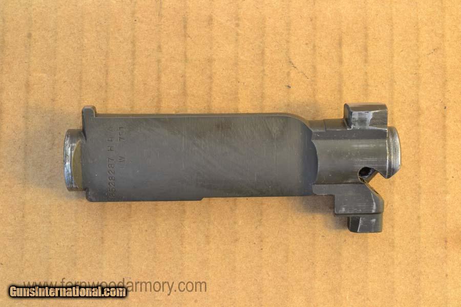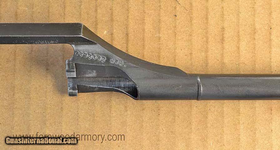 Description: SALE PENDING HRA M1 Garand, serial number 55702xx, made about 1955. HRA 12-54 barrel with bright bore and sharp riflings. All metal parts in near mint condition. Stock is HRA with stars & eagle. No import marks. This rifle is in excellent used condition. The gun has been disassembled, cleaned, and lubricated. Parts were clean for photos, coated with oil and greased where appropriate when reassembled. This Garand has been test fired, cycling through a clip with no issues, ejecting the clip at the end. Sling and two M1 enbloc clips (no ammo) are included, along with a canvas bandolier. HRA M1 sn 55702xx Specs: • Receiver: marked “6528291” on leg, heat lot “V”. Excellent condition, no scratches or gouges, absolutely no pitting. Parkerized finish in near perfect condition. Very little wear even in contact areas. • Barrel: marked “HRA 6353448 12-54 RS45” in op rod slot, with “P” and punch mark, “M”, “K”, and small stars and eagle. Chrome pads at gas port. Bore is bright as new, rifling and crown excellent, chamber in the white. External finish is nearly perfect. • Barrel Gauge Measurements: Muzzle Wear (MW): ¾, Throat Erosion (TE): 2 • Clip latch: square front type, unmarked • Op rod: marked “6535382 HRA.”, no pitting, a little finish wear from contact. Op rod and bolt cycle freely by tilting when everything is assembled except main spring and hammer (Garands with binding or rubbing op rods tend to have feeding and/or ejecting problems). • Op rod catch: HRA/SA/IHC type, unmarked • Bullet guide: stamped with notch, unmarked • Follower: late type, unmarked • Follower arm: no bevel, unmarked • Follower rod: long fork, riveted, unmarked • Bolt: marked “658287 H.R.A UW 751” • Firing pin: half round, no chrome tip, unmarked • Elevation knob: marked “HRA” • Windage knob: marked “HRA-W” • Rear sight base: late SA/HRA type, unmarked • Rear sight aperture: SA/HRA type, double track • Trigger housing: marked “6528290-HRA N”. Small pad, cloverleaf hole, no pitting, nearly new condition • Trigger guard: stamped with milled hook • Trigger: late type, no extra hole • Hammer: marked “HRA 5546008” • Hammer spring plunger: postwar type, no wings • Safety: round top, marked “HRA” • Gas cylinder: wide sight platform, flat on top of rear ring. Gas cylinder group finish is excellent. • Front sight: 0.68 wide, unmarked • Gas cylinder lock: postwar high hump type • Gas cylinder lock screw: cross slot poppet valve type, marked “HRA O” • Stock: walnut, clearly HRA from thickness at pistol grip and the “horseshoe”. Markings are circled “P” on pistol grip, stars and eagle on left side, “416” on left side. No cracks, has dings from handling but far fewer than average. • Stock ferrule: no hole type • Handguards: walnut, no cracks, same condition as stock, good color match • Sling: used, common postwar type TERMS Free shipping to FFL in lower 48 states. Please contact us for quotes to Alaska and Hawaii. No Local Pickup. Sales Tax charged to Florida residents only. Return Policy: