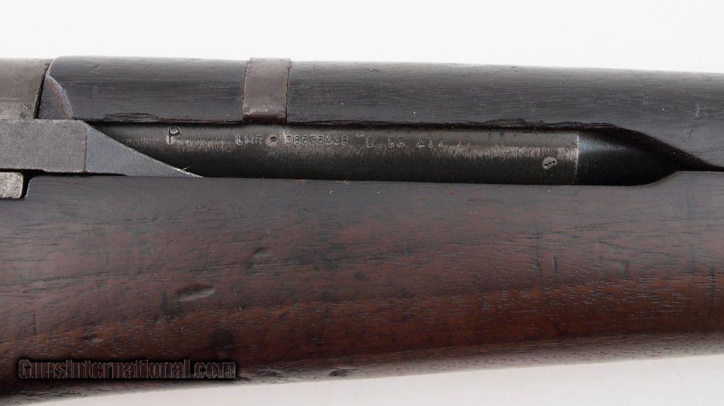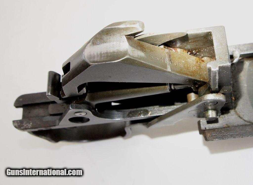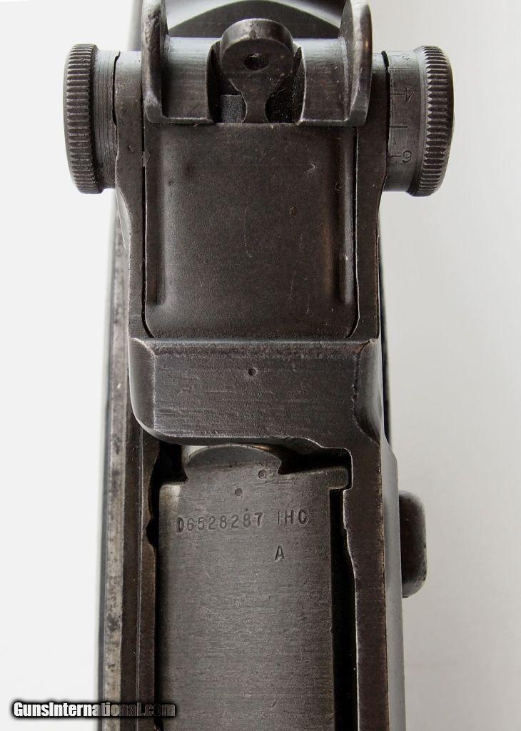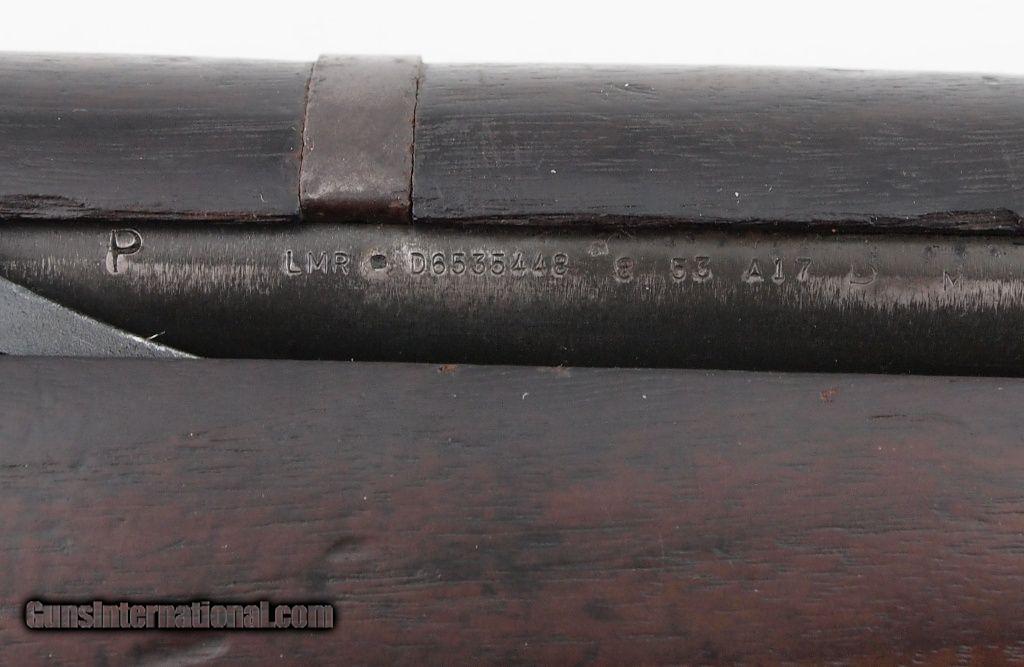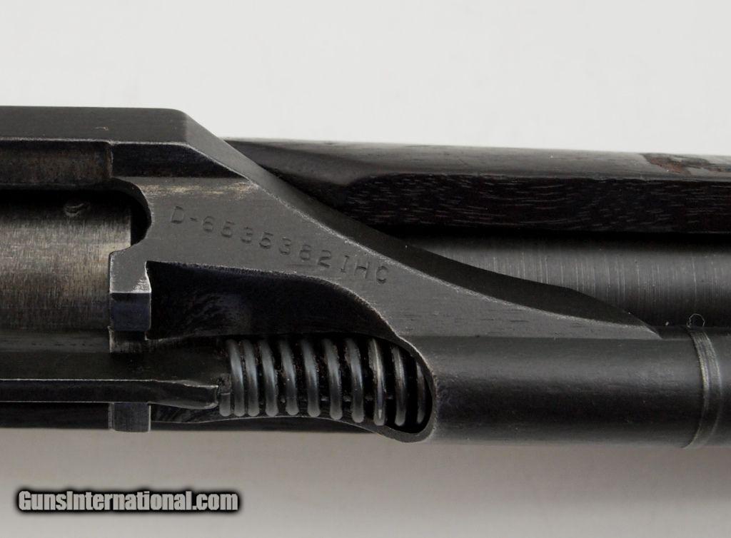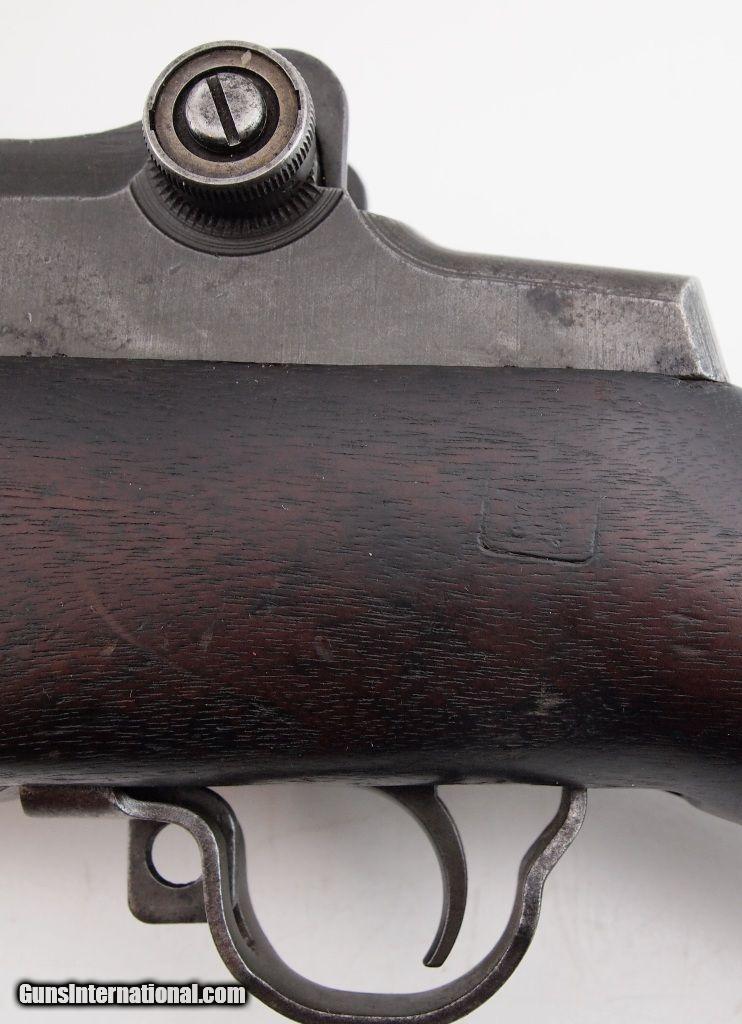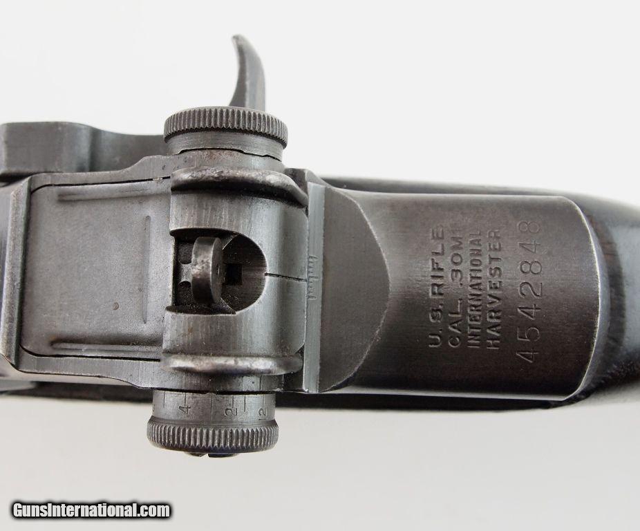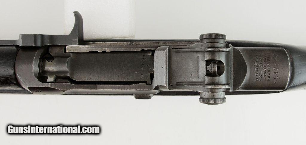 Description: International Harvester M1 Garand .30-06, 24" bbl, adjustable rear peep sight, blade in military wings front sight, parts are correct, nice wood stock with multiple character marks from use, cartouche visible on left side of stock, circle "P" stamp visible behind trigger guard, and metal butt plate with compartment door. See pictures for details. Add 3% for Credit Card Shipping $30.00 SOLD |