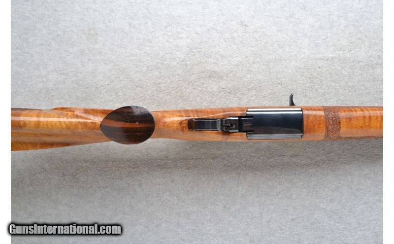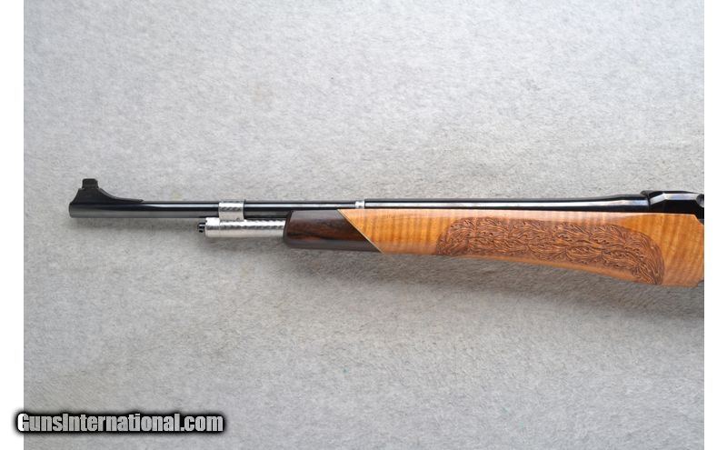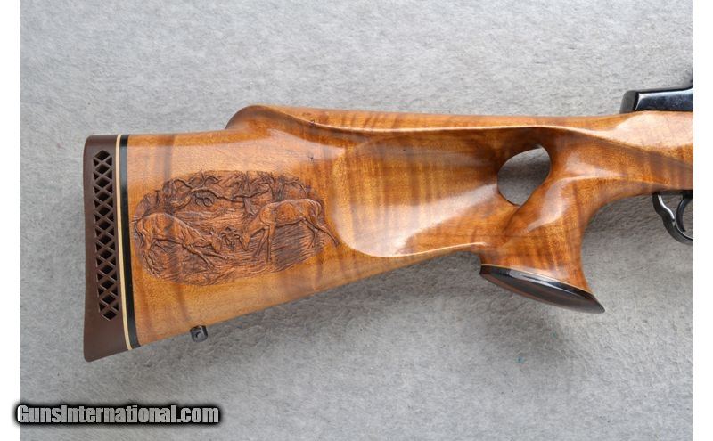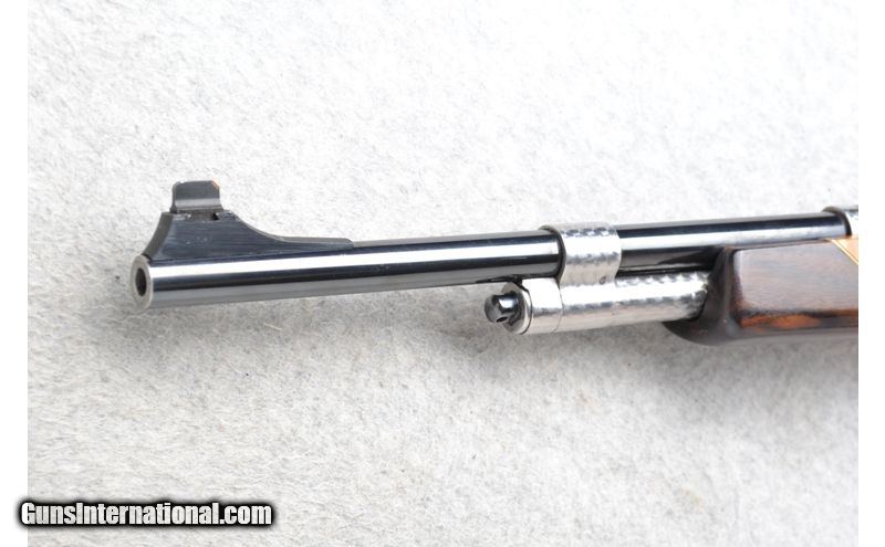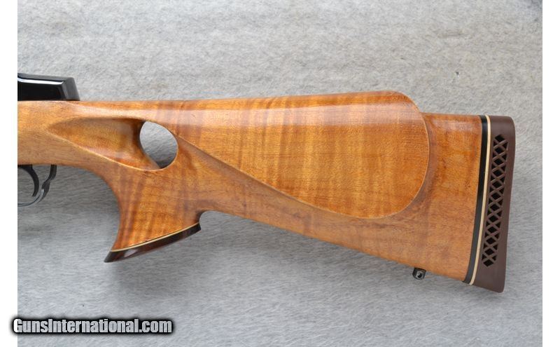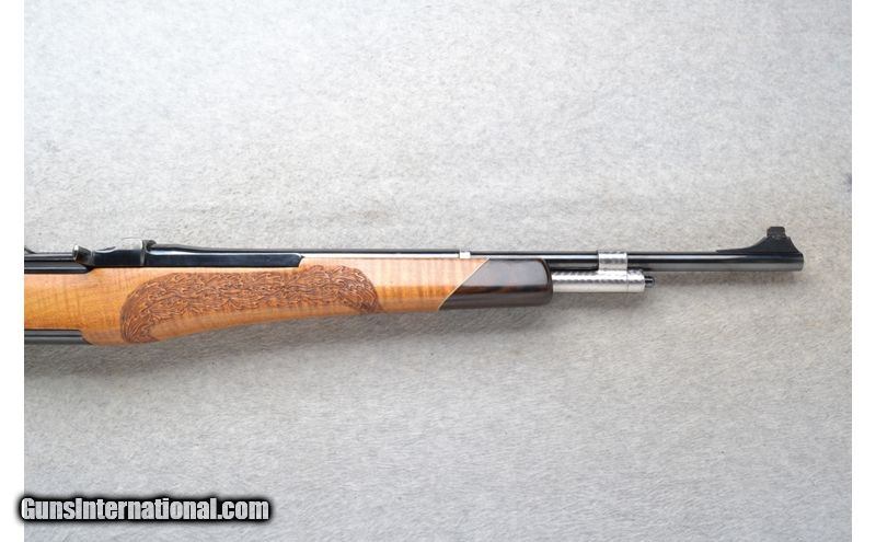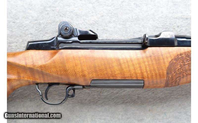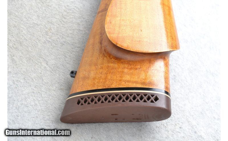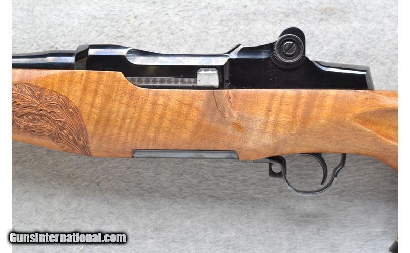 Description: This International Harvester Model U.S. Rifle M1 Garand is a Custom Sporter semi-automatic rifle in .30-06 Cal. It has a 20.5 inch replacement barrel. A raised blade front sight and an adjustable aperature rear sight. The maple thumbhole smooth grip butt .30-06 Springfield SOLD Chambers: Semi-Auto 8 round en-bloc clip internal magazine. Or single shot. Metal Condition: Excellent with a couple of handling marks. Receiver has been re-blued. Wood Condition: Good with some light handling marks. Crack left side below the receiver has been professionally repaired. Barrels: 20.5 inch high polished blue. replacement barrel. Stock Dimensions: LOP 13 7/8 inches. Fore End: Custom carved in leaf grip with a rosewood tip. Butt Pad: Pachmayr White Line rubber recoil pad. Sights: Raised front blade sight. Adjustable aperature rear sight. Item Location: League City, TX |
