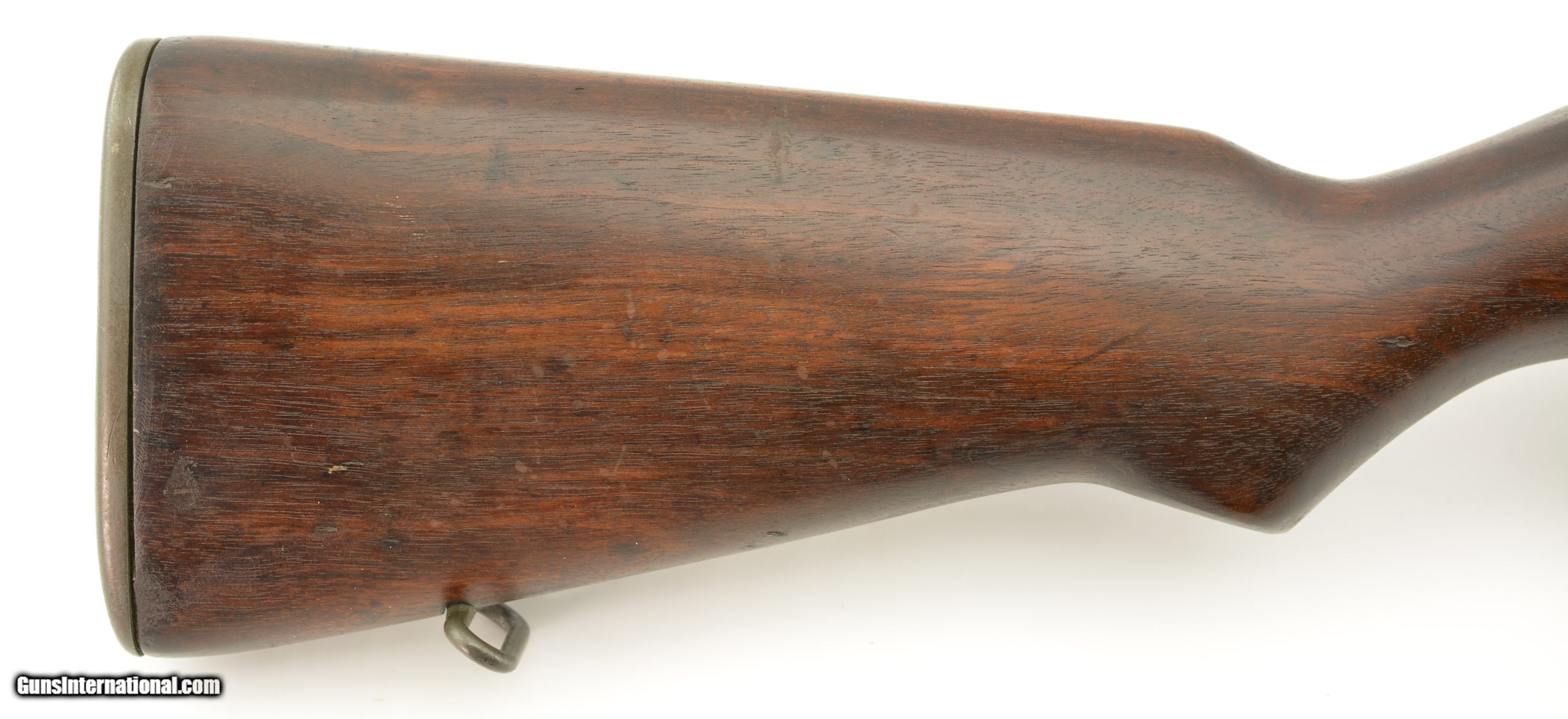 Description: Serial #1635100, .30-06, 24" barrel with an excellent, bright bore. This rifle generally conforms to "WIN-13" specs save for the rear sight windage knob, and SA stock. The metal retains 97-98% of the original parkerized finish, with some silvering along the high edges and projections, and on the bearing surfaces of the bolt and op-rod raceway. The gas cylinder retains a commensurate amount of the original Winchester Du-Lite blue finish as well. All labeled parts are correct, and although the rifle is fitted with an early type op-rod, it does have the correct time period modification cut at the base of the handle. The walnut stock and handguards are in very good-near fine shape with minor handling marks and blemishes scattered about the reapplied oil finish. There is a straight, with-the-grain crack on the top of the rear handguard running back from the band to the receiver, and the ghost of an "SA / NFR" cartouche on the left side of the stock. While not a 100% WIN-13 rifle, this is nevertheless a splendid example of a late production Winchester Garand, and would make a great addition to any collection. FFL or C&R SOLD Curio/Relic: Yes Manufacturer: Winchester Model: Garand Serial Number: 1635100 Caliber Info: .30-06 Gauge Info: .30-06 |