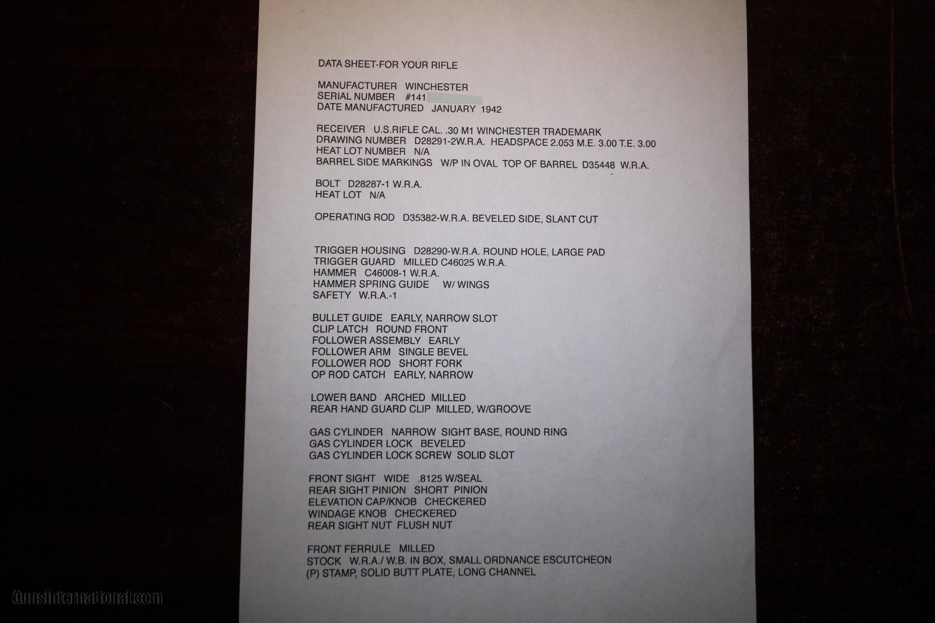 M1 GARAND WINCHESTER JANUARY 1942 ALL CORRECT