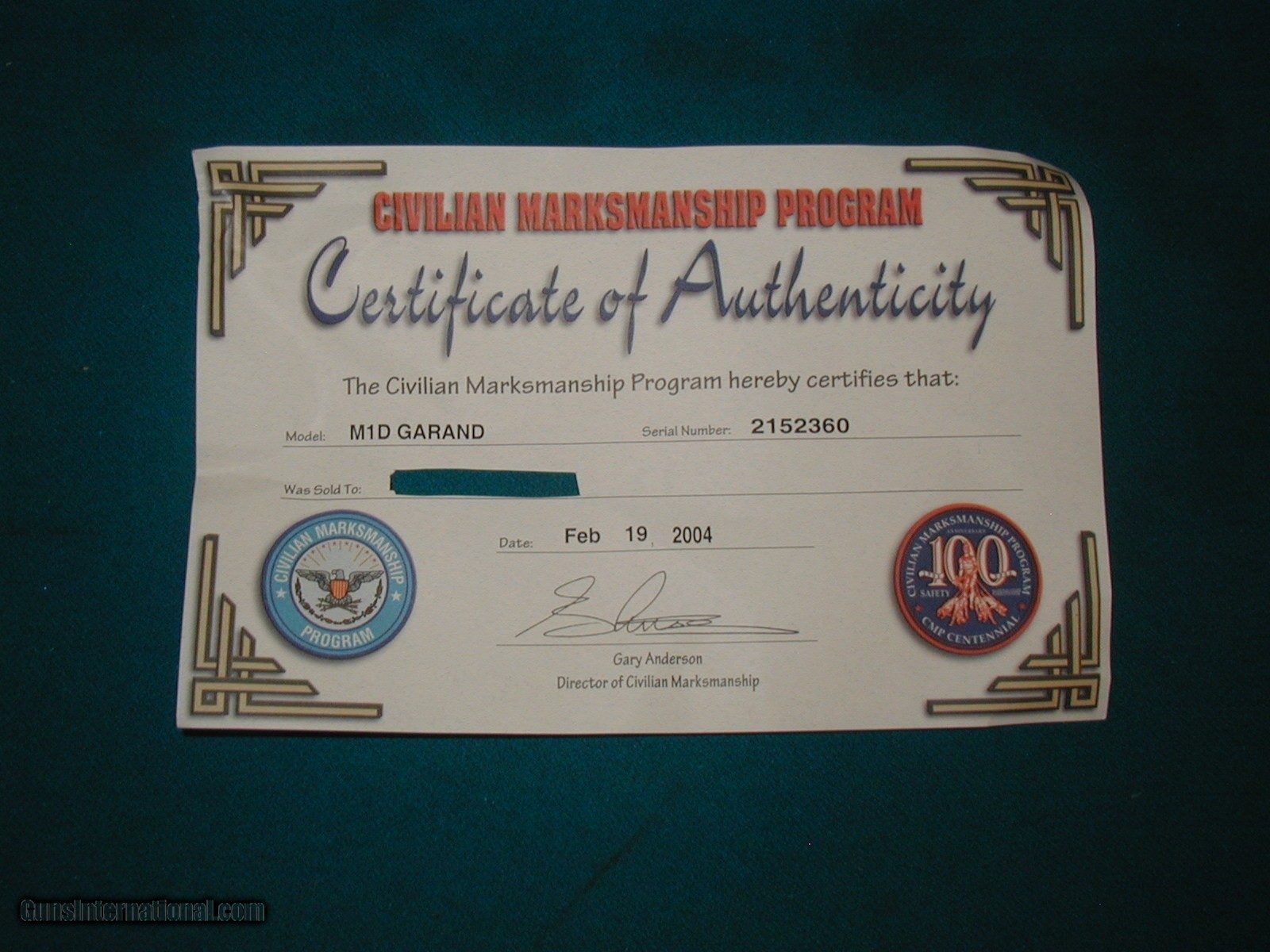 MINT M1 D, ORIGINAL , GOV'T ISSUE W/ CERTIFICATE