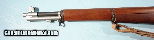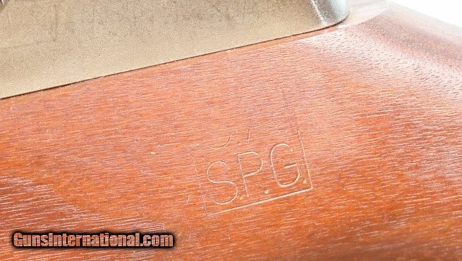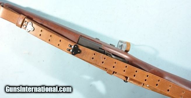 Description: PRE-WW2 GAS TRAP SPRINGFIELD U.S. M1 OR M-1 GARAND .30-06 CAL RIFLE CA. FEB. 1939. Four digit 95xx serial range rebuild with original receiver in the original parkerized finish. Replacement repro wood with correct type “SA/SPG” cartouche and “P” stamp behind trigger guard. Replacement new barrel with no date stamp. Reproduction new gas trap not recommended as safe to shoot as were the originals. Before shooting it should be properly replaced with a standard gas cylinder and is offered as a non-shooter collector item only. Excellent plus condition with wood and repro parts in near new condition. Mint bore. Repro leather military sling. SOLD Curio/Relic: Yes Rifle Caliber: .30-06 Springfield |
