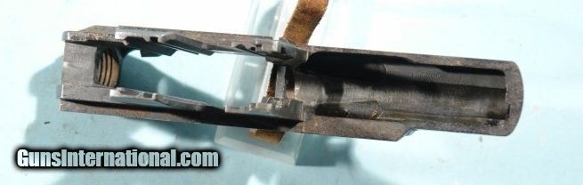 Description: PRE WW2 SPRINGFIELD U.S. M-1 OR M1 GARAND .30-06 RIFLE RECEIVER. CIRCA DEC. 1940. Serial number "973XX" with "U.S. Rifle/Cal. .30 M1/ Springfield Armory" address. Stripped of all it's parts but with exceptional barrel threads and knurling for battle sight. Never been cleaned so original parkerized finish and crisp address. No weld marks either so NOT a refurb dewat. Receiver leg marking with "C 1 5 A" and under that "D 28291-3 SA". No dings or battle damage but some pitting to undersides where wood would normally be touching it so ready to have an early WW2 complete rifle built around it. Has cosmoline grease in recesses from storage so NOT rust(see photos). SOLD Curio/Relic: Yes Rifle Caliber: .30-06 Springfield |
