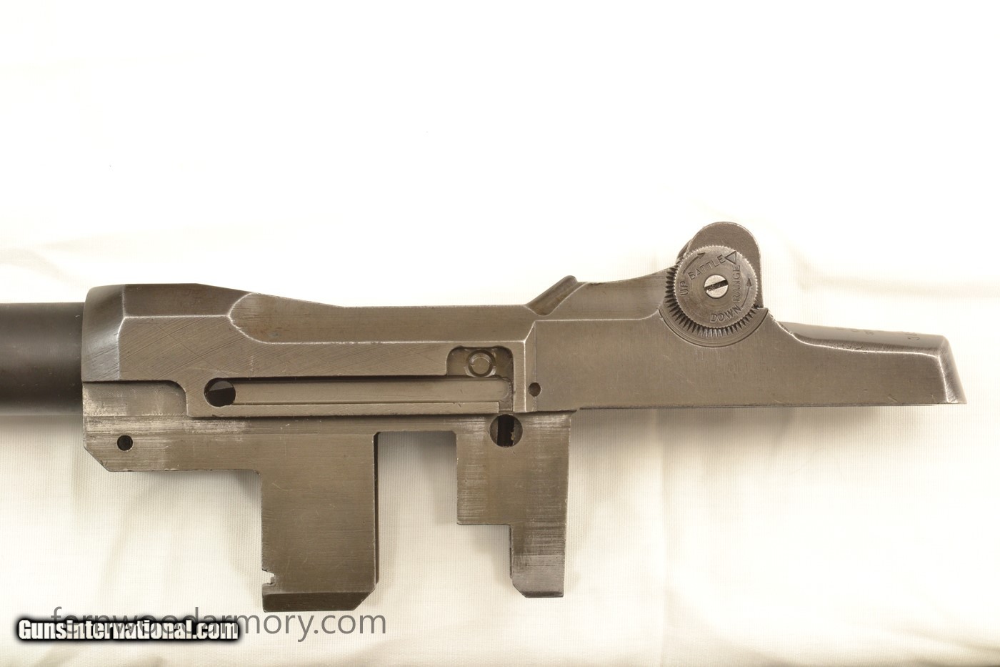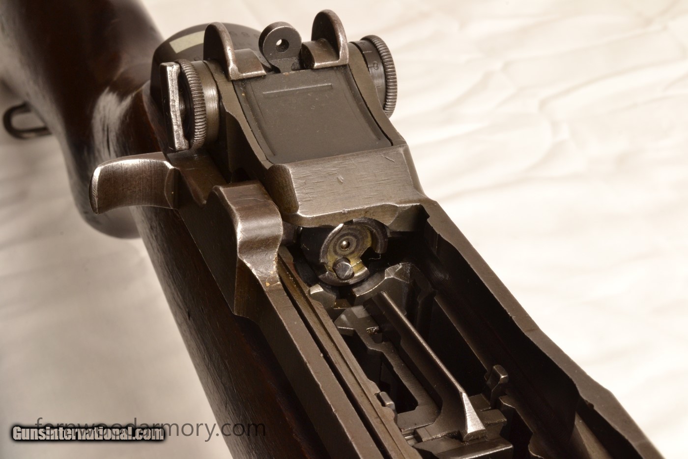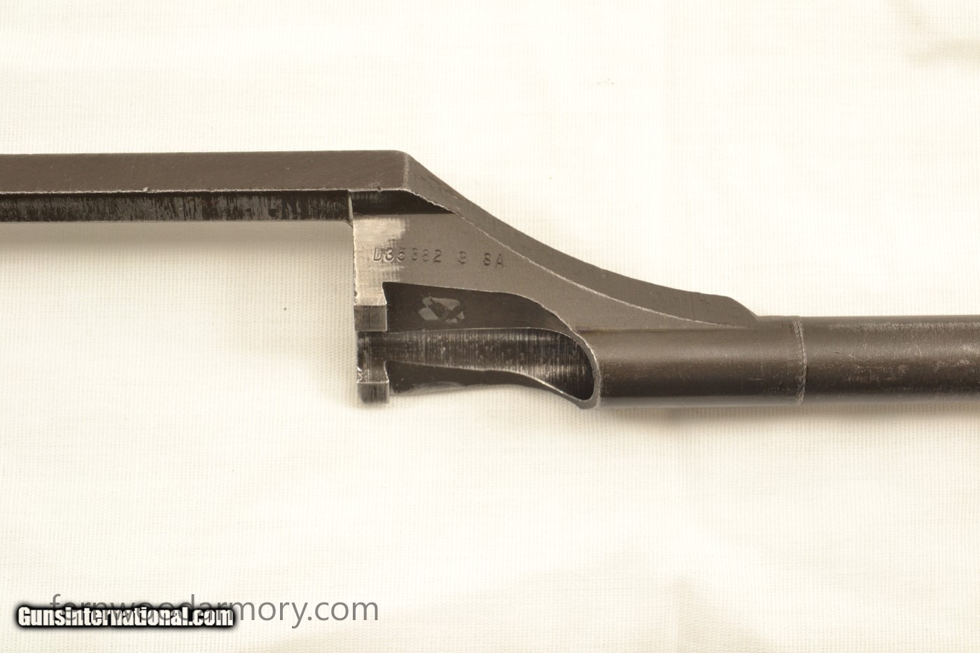 Description: Late WW2 Springfield Armory M1 Garand serial number 3850xxx, manufactured June 1945. SA 5-45 barrel with bright bore and very good gauge numbers. Springfield stock marked “S.A. N.F.R.”. No import marks. This M1 is in excellent used condition. All parts are in great working condition. This is a good collector piece, with one minor drawback – the barrel, of the expected date range, has been reparkerized. There was never any pitting on the exterior, so why it was refinished, we don’t know. Receiver and other parts appear to be original finish. All are described below and shown in pictures. The rifle has been disassembled, cleaned, lubricated, and test fired. Parts were clean for photos, coated with oil and greased where appropriate when reassembled. Two M1 enbloc clips (no ammo) and sling are included. SPECS: Receiver: marked “D 28291 35” on leg, heat lot B42A, excellent condition. Finish appears original, with the expected wear at corners and contact areas. Barrel: marked “3 S A 5 45” with “P” and punch mark in op rod slot, also marked “D353448-35-Y-217-8” on top, with “M”, small crossed cannons stamp, and 3 punch marks. Bore, crown and rifling are very good. No chrome pads at gas port. Barrel Gauge Measurements: Muzzle Wear: 1, Throat Erosion: 2 Barrel band: two-piece flat top with solid pin Clip latch: late square front type Op rod: curved side, marked “D35382 9 SA”, unmodified. Finish is worn, more at the front. Op rod catch: late type, unmarked Bullet guide: stamped without notch Follower: late type, marked “12” Follower arm: no bevel, unmarked Follower rod: long fork, riveted Bolt: marked “D28287-19SA 0-14A” Sight knobs: SA lockbar with square ends; both knobs knurled. Rear sight cover: late type with ribs Rear sight aperture: double track Trigger housing: marked “D28290-18-SA”. Finish is worn. Trigger guard: stamped with milled hook Trigger: late type, no extra hole Hammer: marked “C46008-9 SA” Hammer spring plunger: late type without wings Gas cylinder: wide sight platform, flat on top of rear ring Front sight: .65 wide Gas cylinder lock: beveled front WWII type Gas cylinder screw: cross slot poppet valve type, marked “P” with hexagon Stock: walnut, marked “S.A. N.F.R.” in box with crossed cannons on left side, circled “P” on pistol grip struck twice, small crossed cannons on bottom of pistol grip. Painted “3” on comb. No cracks or repairs. Fewer than average dings/scratches, very nice appearance. Handguards: walnut, same condition and appearance as stock. Sling: used, GI,type TERMS We are an FFL dealer. Please read through the terms below before or purchasing. PAYMENT -Checks, money orders and credit cards accepted. No fees for credit cards. -Payments and FFL information must be received within 5 business days or item will be relisted. -Buyer is responsible for contacting their FFL and making arrangements for the transfer. -Sales Tax charged to Florida residents only. SHIPPING -Free Shipping (Ground) to lower 48 states. Please contact us for quotes to Alaska and Hawaii. -Firearms ship insured to FFLs and require signatures for delivery. Items usually ship 1 to 2 business days after payment clears and FFL information is received. -No Local Pickup. We are an internet only dealer and do not offer in store pickup. RETURNS -Used Firearms: 3 day inspection policy. Item may be returned if in same condition as when it left our facility. Returns are subject to a $35.00 restocking fee. Buyer is responsible for return shipping charges (must include insurance and signature requirement) and any transfer fees. -In the event of shipping damage please contact us for a return authorization number. OTHER To purchase a handgun: You must be 21 years of age or older To purchase a long gun (shotguns and rifles): You must be 18 years of age or older. (21 and over for Florida residents) Please verify the firearm you wish to purchase meets the laws of your state, county, or city. No Trades No Layaways QUESTIONS? Customer service hours: Monday-Friday 9am-5pm Eastern Phone: 888-319-4811 Email: fernwoodarmorygmail SOLD Curio/Relic: Yes Manufacturer: Springfield Armory Model: M1 Garand Caliber Info: .30-06 Action: Semi-Auto Manufacture Date: 1945 |
