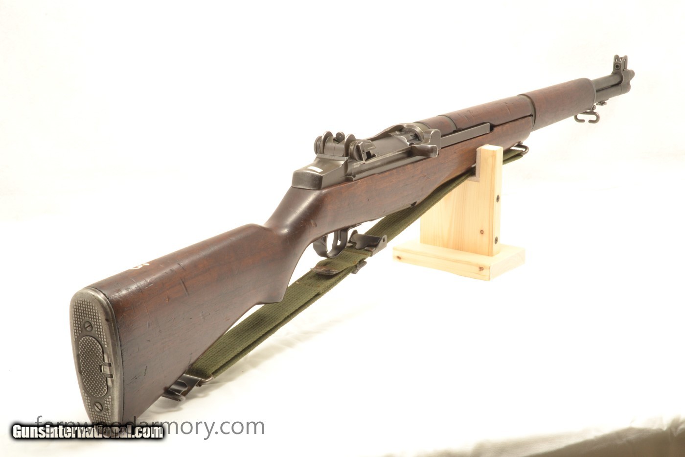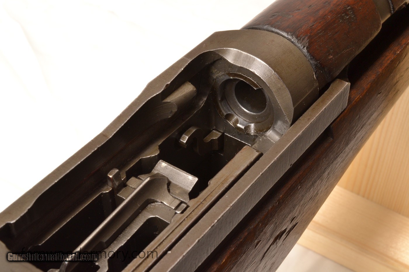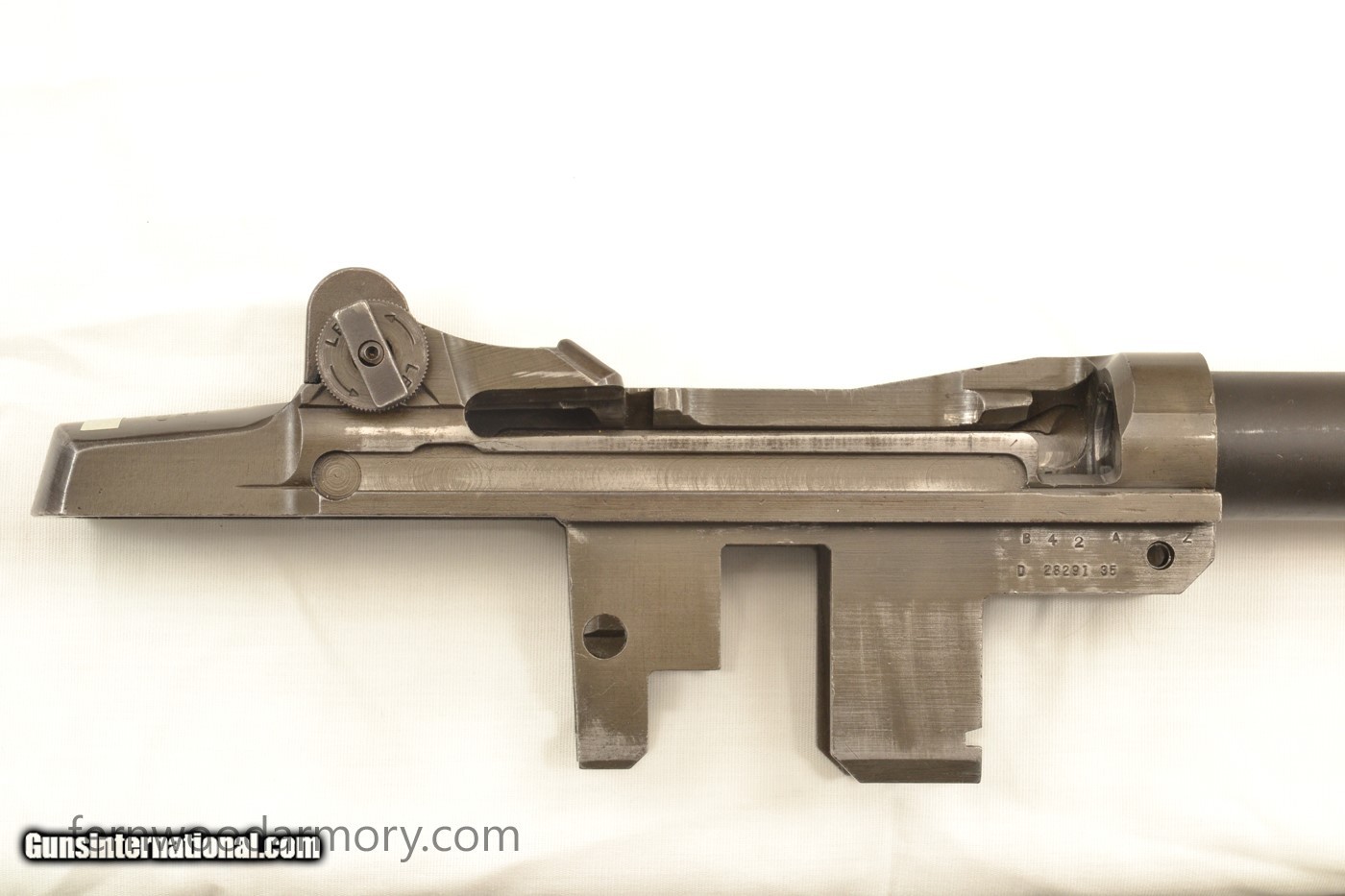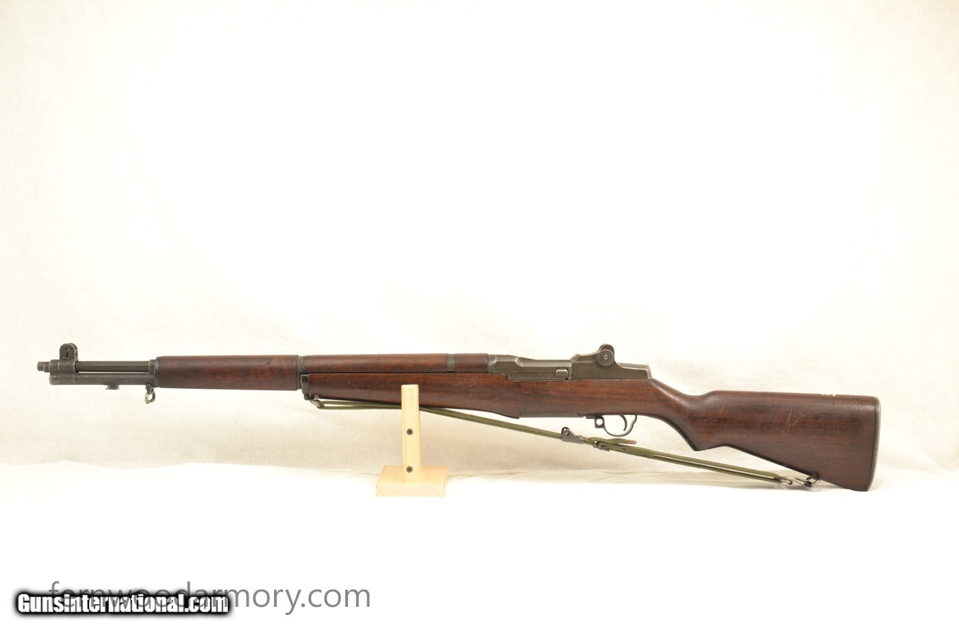 Description: Late WW2 Springfield Armory M1 Garand serial number 3850xxx, manufactured June 1945. SA 5-45 barrel with bright bore and very good gauge numbers. Springfield stock marked “S.A. N.F.R.”. No import marks. This M1 is in excellent used condition. All parts are in great working condition. This is a good collector piece, with one minor drawback – the barrel, of the expected date range, has been reparkerized. There was never any pitting on the exterior, so why it was refinished, we don’t know. Receiver and other parts appear to be original finish. All are described below and shown in pictures. The rifle has been disassembled, cleaned, lubricated, and test fired. Parts were clean for photos, coated with oil and greased where appropriate when reassembled. Two M1 enbloc clips (no ammo) and sling are included. SPECS: Receiver: marked “D 28291 35” on leg, heat lot B42A, excellent condition. Finish appears original, with the expected wear at corners and contact areas. Barrel: marked “3 S A 5 45” with “P” and punch mark in op rod slot, also marked “D353448-35-Y-217-8” on top, with “M”, small crossed cannons stamp, and 3 punch marks. Bore, crown and rifling are very good. No chrome pads at gas port. Barrel Gauge Measurements: Muzzle Wear: 1, Throat Erosion: 2 Barrel band: two-piece flat top with solid pin Clip latch: late square front type Op rod: curved side, marked “D35382 9 SA”, unmodified. Finish is worn, more at the front. Op rod catch: late type, unmarked Bullet guide: stamped without notch Follower: late type, marked “12” Follower arm: no bevel, unmarked Follower rod: long fork, riveted Bolt: marked “D28287-19SA 0-14A” Sight knobs: SA lockbar with square ends; both knobs knurled. Rear sight cover: late type with ribs Rear sight aperture: double track Trigger housing: marked “D28290-18-SA”. Finish is worn. Trigger guard: stamped with milled hook Trigger: late type, no extra hole Hammer: marked “C46008-9 SA” Hammer spring plunger: late type without wings Gas cylinder: wide sight platform, flat on top of rear ring Front sight: .65 wide Gas cylinder lock: beveled front WWII type Gas cylinder screw: cross slot poppet valve type, marked “P” with hexagon Stock: walnut, marked “S.A. N.F.R.” in box with crossed cannons on left side, circled “P” on pistol grip struck twice, small crossed cannons on bottom of pistol grip. Painted “3” on comb. No cracks or repairs. Fewer than average dings/scratches, very nice appearance. Handguards: walnut, same condition and appearance as stock. Sling: used, GI,type TERMS We are an FFL dealer. Please read through the terms below before or purchasing. PAYMENT -Checks, money orders and credit cards accepted. No fees for credit cards. -Payments and FFL information must be received within 5 business days or item will be relisted. -Buyer is responsible for contacting their FFL and making arrangements for the transfer. -Sales Tax charged to Florida residents only. SHIPPING -Free Shipping (Ground) to lower 48 states. Please contact us for quotes to Alaska and Hawaii. -Firearms ship insured to FFLs and require signatures for delivery. Items usually ship 1 to 2 business days after payment clears and FFL information is received. -No Local Pickup. We are an internet only dealer and do not offer in store pickup. RETURNS -Used Firearms: 3 day inspection policy. Item may be returned if in same condition as when it left our facility. Returns are subject to a $35.00 restocking fee. Buyer is responsible for return shipping charges (must include insurance and signature requirement) and any transfer fees. -In the event of shipping damage please contact us for a return authorization number. OTHER To purchase a handgun: You must be 21 years of age or older To purchase a long gun (shotguns and rifles): You must be 18 years of age or older. (21 and over for Florida residents) Please verify the firearm you wish to purchase meets the laws of your state, county, or city. No Trades No Layaways QUESTIONS? Customer service hours: Monday-Friday 9am-5pm Eastern Phone: 888-319-4811 Email: fernwoodarmorygmail SOLD Curio/Relic: Yes Manufacturer: Springfield Armory Model: M1 Garand Caliber Info: .30-06 Action: Semi-Auto Manufacture Date: 1945 |