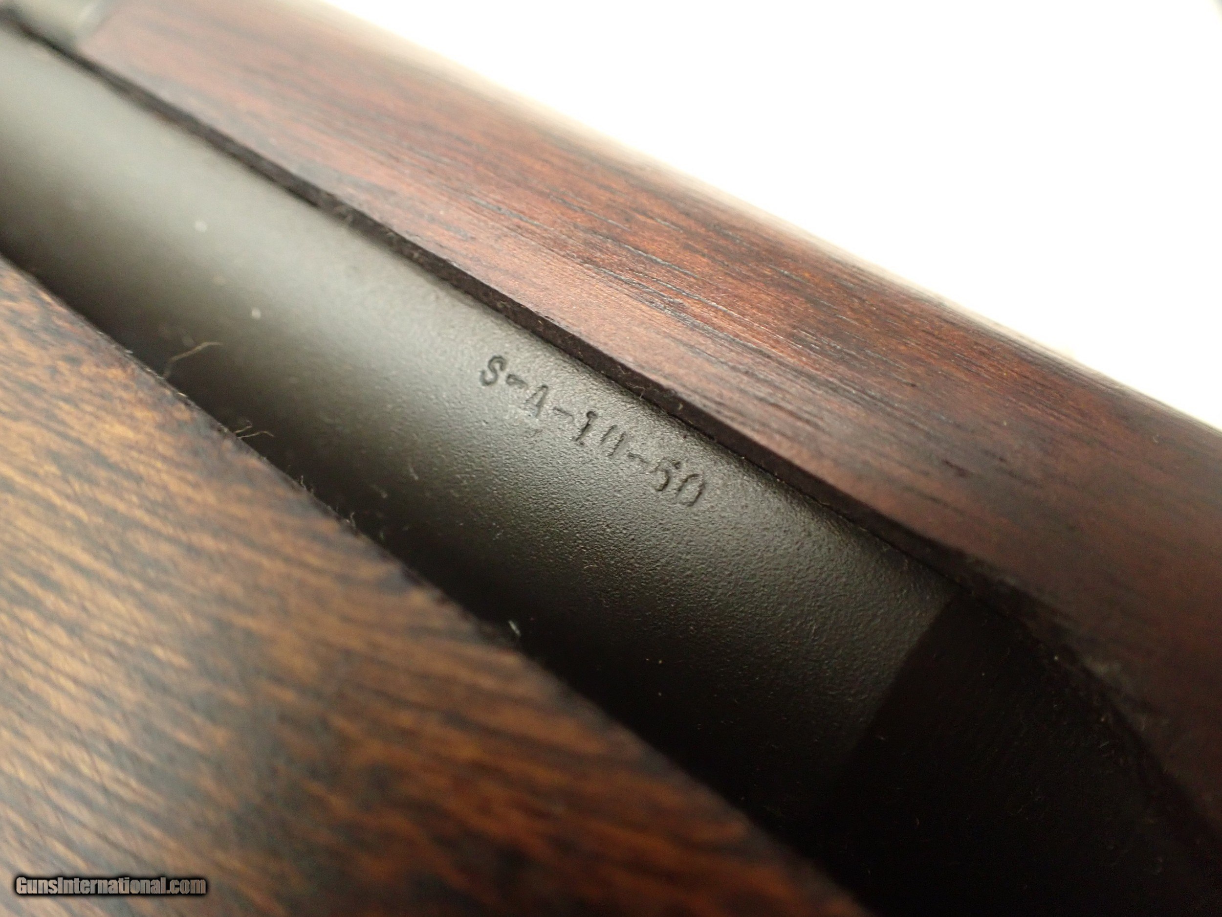Description: ***SOLD*** Springfield Armory M1 Garand .30-06 Springfield semi automatic US service rifle, dated to 1955 via the serial number. This rifle features the iconic M1 Garand action system, with a parkerized finish and hardwood furniture. The components are mostly Springfield Armory, with a 1950 date on the barrel, however the trigger assembly apepars to be International Harvester. The rifle is in great overall condition, with some signs of light use, but appears to have been well cared for. The muzzle and the throat measure a "3" on our Brownells M1 Garand bore gauge, indication that there is some wear, but plenty of accurate life left in the barrel. Please refer to the photos prior to purchase. A wonderful collectible and a great range shooter! C&R OK. SOLD Rifle Caliber: .30-06 Springfield Manufacturer: Springfield Armory Model: M1 Garand Serial Number: 5349982 |