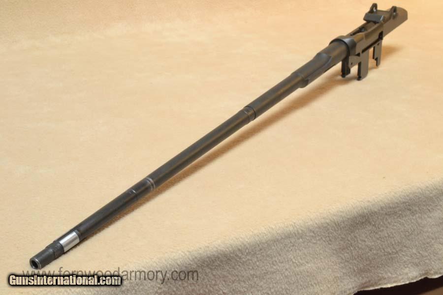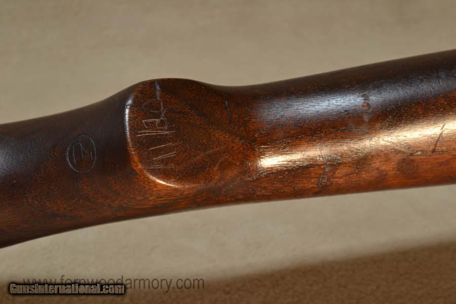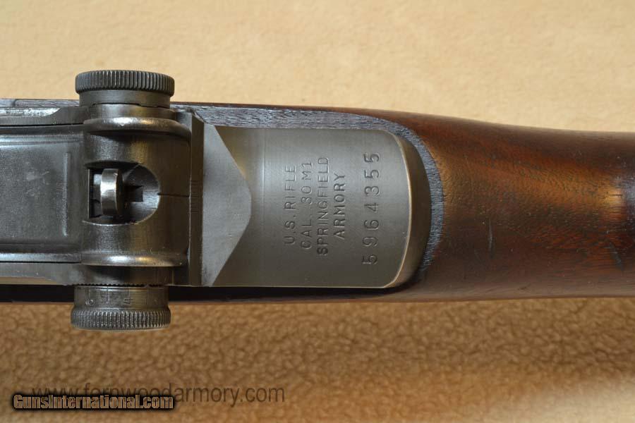 Description: SOLD High serial number Springfield Armory M1 Garand, 59634xx, manufactured in 1957. SA 1-56 barrel with a bright bore and like new gauge measurements. Marked parts are Springfield. No import marks. All parts are described below and shown in photos. This M1 rifle is in excellent used condition. Condition of overall metal finish and the gas port indicate that this rifle has been fired very little. We test fired the Garand at 100 yards, you can watch our video at our YouTube channel Fernwood Armory TV. Two M1 enbloc clips (no ammo), sling and canvas bandolier are included. C & R FFL eligible. SA M1 serial 59634xx specs: • Receiver: marked “F 6528291” on leg, heat lot 54875. Excellent condition, no pitting. The parkerized finish is original, with very little wear, see photos. • Barrel: marked “SA F6535448 1 56 A225” in op rod slot, also marked “P” three times, one with a punch mark, misc assembly marks, and small stars and eagle. Bore is bright like new, crown and rifling excellent. Chrome pads at gas port. External finish is excellent, chamber is in the white. • Barrel Gauge Measurements: MW (muzzle wear): 0, TE (throat erosion): 1 • Lower band: 2-piece flat top with roll pin • Clip latch: late square front type, unmarked • Op rod: flat side with relief cut, marked “6535382 SA”. Exc condition, no pitting, some finish wear from contact. • Op rod catch: late type, unmarked • Bullet guide: stamped with notch, unmarked • Follower: late type, unmarked • Follower arm: no bevel • Follower rod: long fork, riveted • Bolt: marked “6528287-SA Y01” • Firing pin: half round, no chrome tip • Sight knobs: T105 postwar type, elevation marked “WCE”, windage marked “WRIGHT” • Rear sight cover: late type with ribs • Rear sight aperture: double track, unmarked • Trigger housing: marked “6528290-SA” Small pad, cloverleaf hole, no pitting, finish nearly perfect condition • Trigger guard: stamped with stamped hook • Trigger: late type, no extra hole • Hammer: marked “SA D5546008” • Hammer spring plunger: late type without wings • Safety: round top, marked “MXR” • Gas cylinder: wide sight platform, flat on top of rear ring, unmarked. Gas cylinder group finish in very good condition • Front sight: 0.8 wide, unmarked. • Gas cylinder lock: late “high hump” type, unmarked • Gas cylinder screw: cross slot poppet valve type, marked “P” with hexagon • Stock: walnut, postwar, appears to be SA from the shape of the “horseshoe”. Circled “P” on pistol grip, 1/2” DAS on left side. Someone has scratched something unintelligible on the bottom of the pistol grip, which could probably be sanded off and spot finished. No cracks, relatively few dings/gouges, very nice appearance. • Handguards: walnut, no cracks, same condition as stock and good color match • Sling: web, appears to be common postwar type TERMS Free shipping to FFL in lower 48 states. Please contact us for quotes to Alaska and Hawaii. No Local Pickup. Sales Tax charged to Florida residents only. Return Policy:
