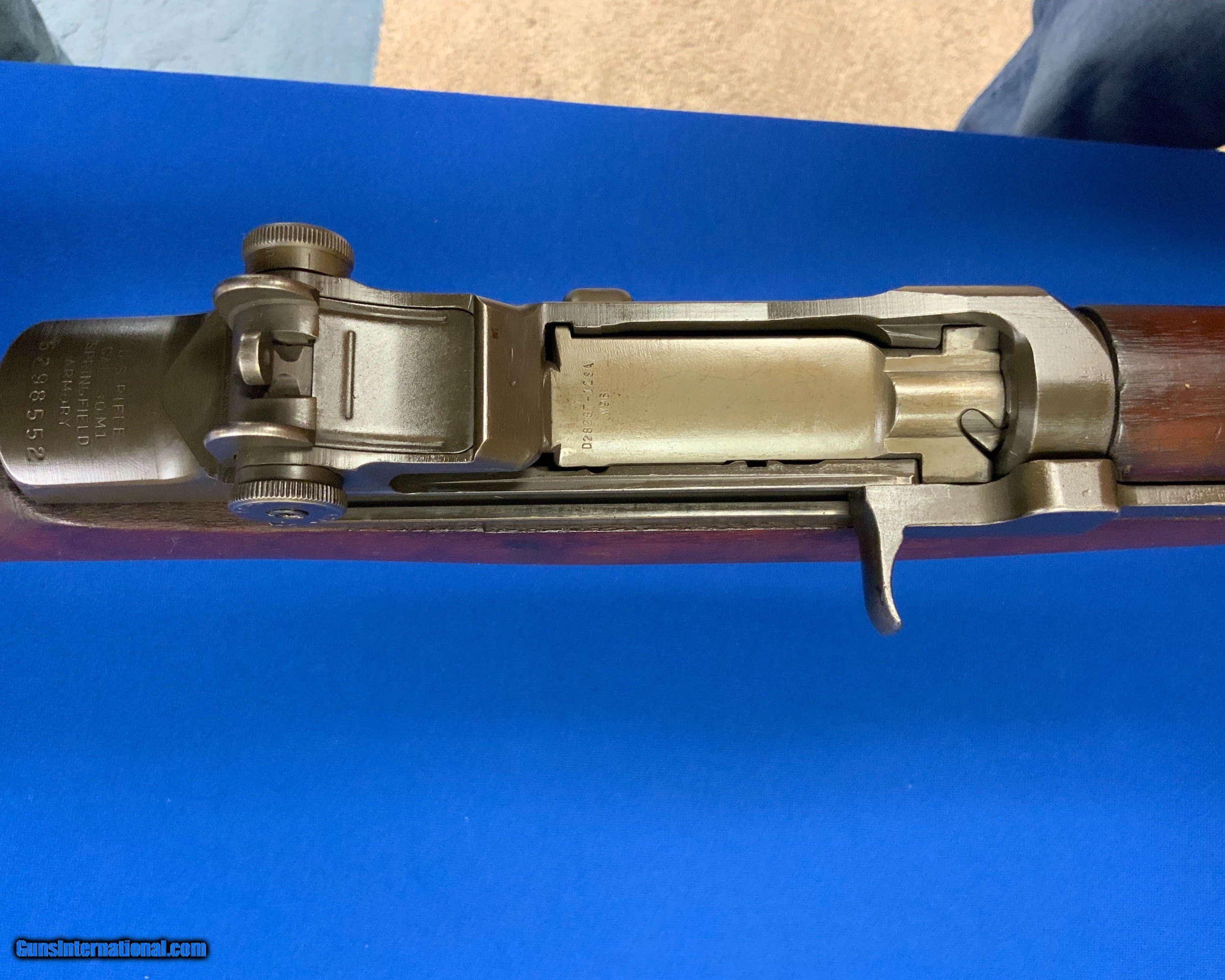 Description: U.S. Re-Arsenaled post WWII. Complete with “S.A. 6-63” barrel. Minor cycling wear on the receiver and gas cylinder lock metals rates at approx 90%. The Bore appears Excellent + with the throat gauging at only a 3 (Barrel Chamber in the white). Used serviceable wood set with normal wear rates at VG+/ near Excellent! Exactly as shipped from the CMP on 6-27-2001. Complete with original shipping box, invoice, paperwork and manual. SOLD Curio/Relic: Yes Manufacturer: Springfield Armory Model: M1 Garand Serial Number: 5298552 Caliber Info: 30/06 Bore: 3 Bore Condition: Excellent + |
