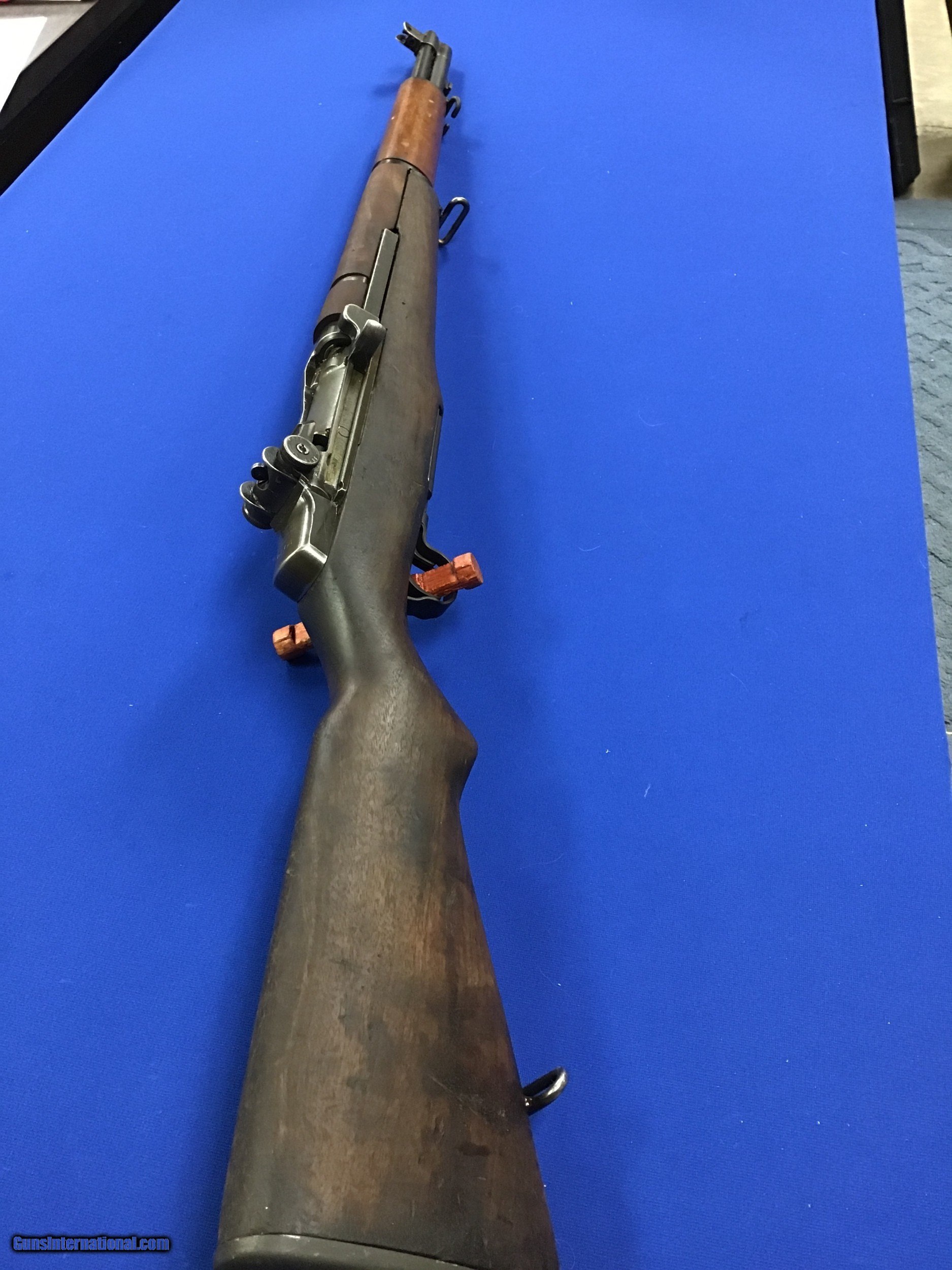 Description: Danish issued. U.S. Re-Arsenaled post WWII. Exactly as shipped from the CMP on 6-27-2002. Complete with a Danish “VAR 2-61” barrel. Normal wear on receiver from cycling. Finish on receiver rates at approx. 90%! Bore appears Exec Plus! With throat gauging at only a 2. . (‘’Barrel Chamber In The White’’) A most excellent example of the early WWII SA M1 Garand with SN# 430,604 that was originally manufactured January 1942! Later Re-Arsenaled after WWII, then sold to Denmark. Later returned to the U.S.A. by way of the CMP. Then later sold through the CMP Program. Used serviceable wood set with new replaced rear hand guard and the Danish I.D. disc is absent. Overall Metal finish rates appx. 90% to 95%. Bore (see above), action/mechanically fine, Comes with orig. box and ALL original paperwork including original ‘’CMP/Government’’ Sales papers that list this as a Danish M1 GARAND on both Invoice and Certificate of Authenticity! *Note: All information is intact except all owners personal information is removed. (Of course it is Not Import <>Curio &Relic FFL Item<> SOLD Curio/Relic: Yes Manufacturer: Springfield Armory Model: M1 Garand Serial Number: 430604 Caliber Info: 30/06 Bore: 2 Bore Condition: Excellent Plus Manufacture Date: 2-61 |