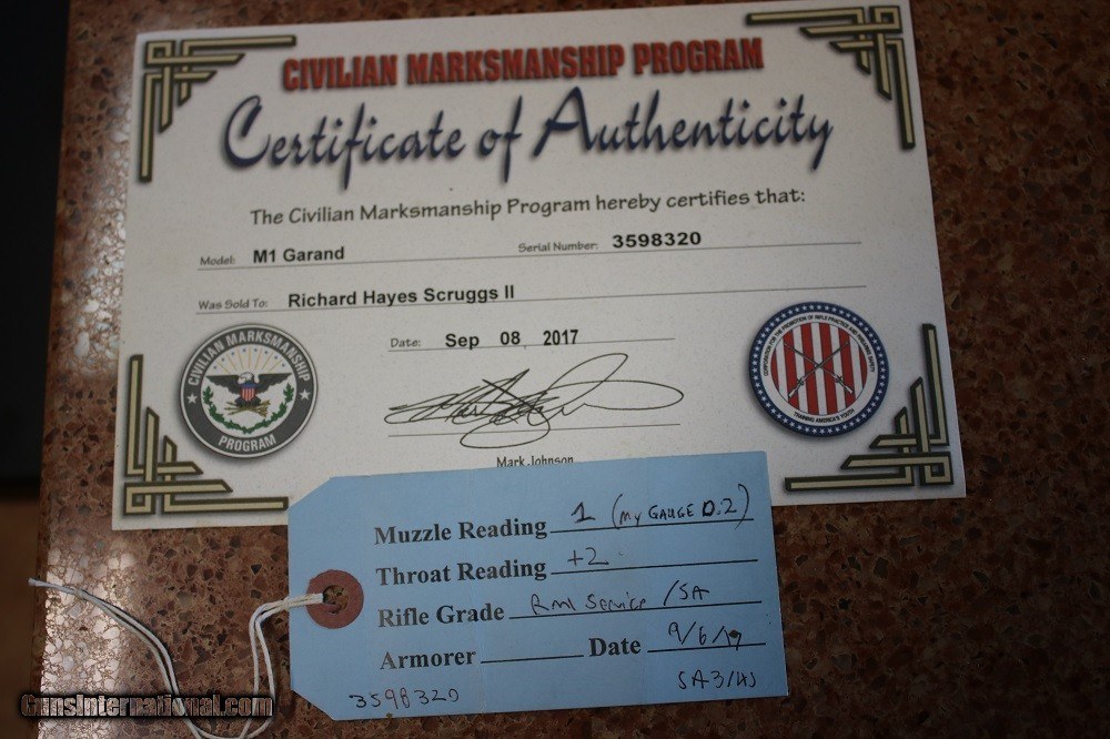 Description: This rifle is a CMP Service Grade I purchased 7 years ago. It is a March of 1945 Springfield SN 3598320 with a correct square Type III lockbar sight, hammer, safety, trigger, operating rod, front sight, bolt, trigger housing, SA NFR Stock, Ord wheel cartouche, circle P on the grip and the .188 ord wheel on the grip end. There is zero rust and no pitting anywhere.......all the parts have clean smoothe surfaces. The barrel is a 3-45 with a ME of just over zero and TE of 2. Please look at the pictures. I'll take $1800 for this rifle which includes shipping to your C&R/FFL. I am a current C&R licencee. Price slashed SOLD Curio/Relic: Yes Rifle Caliber: .30-06 Springfield Bore: excellent, bright Condition: excellent Metal Condition: excellent Wood Condition: excellent with typical dings and scratches Bore Condition: excellent Extras: sling Item Location: Missouri |