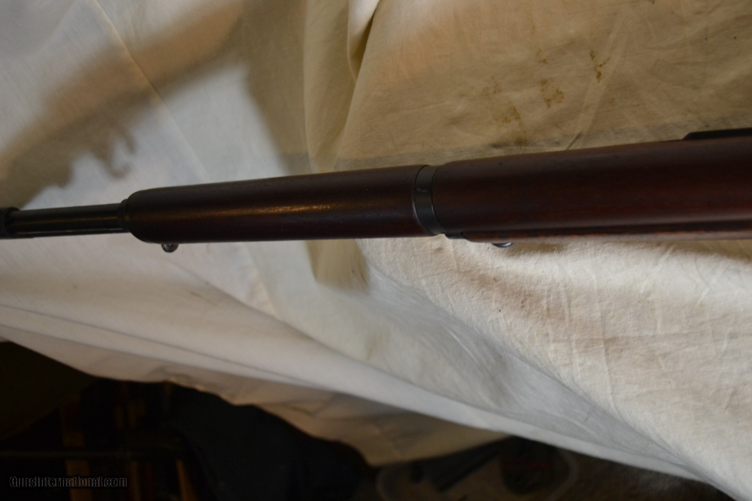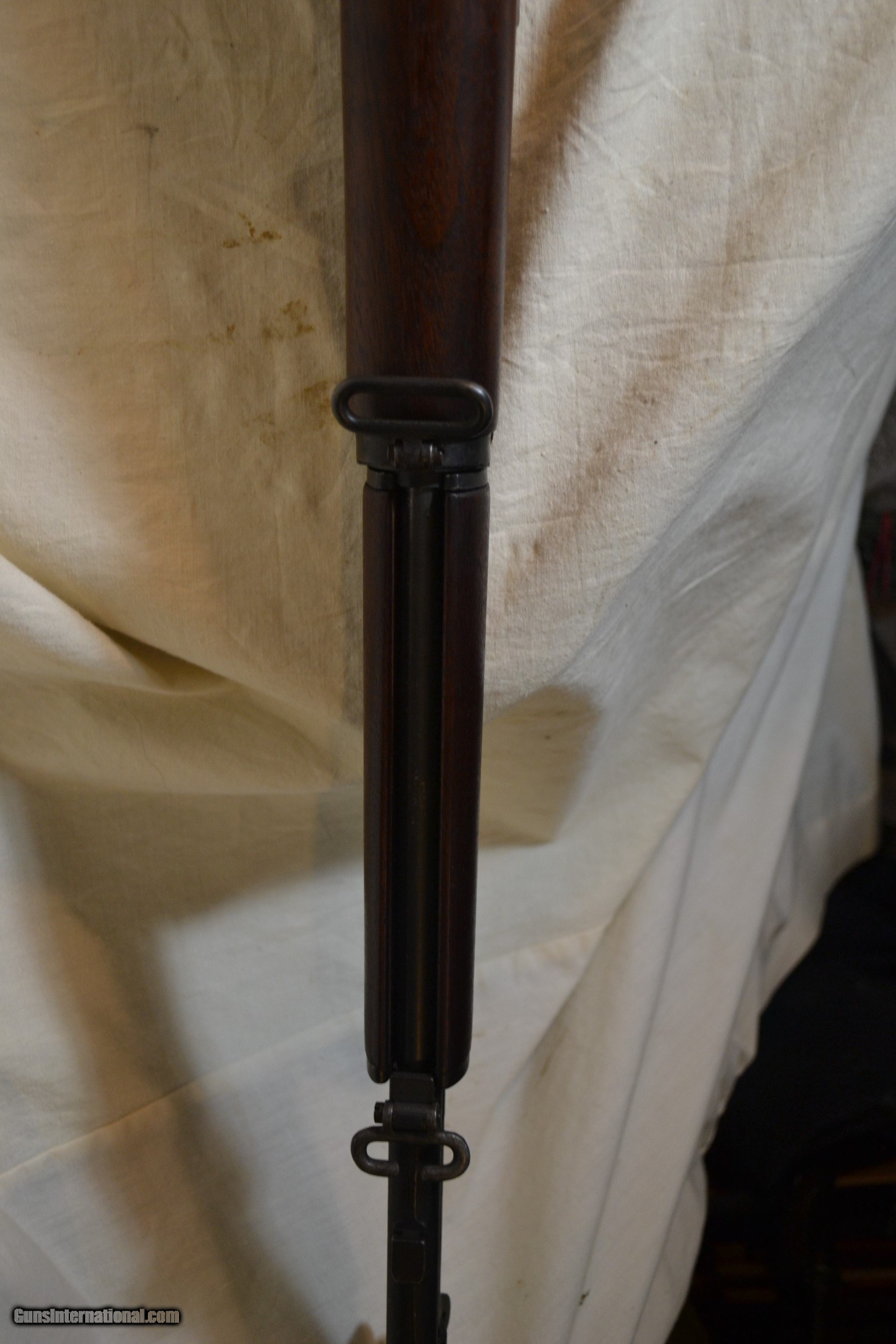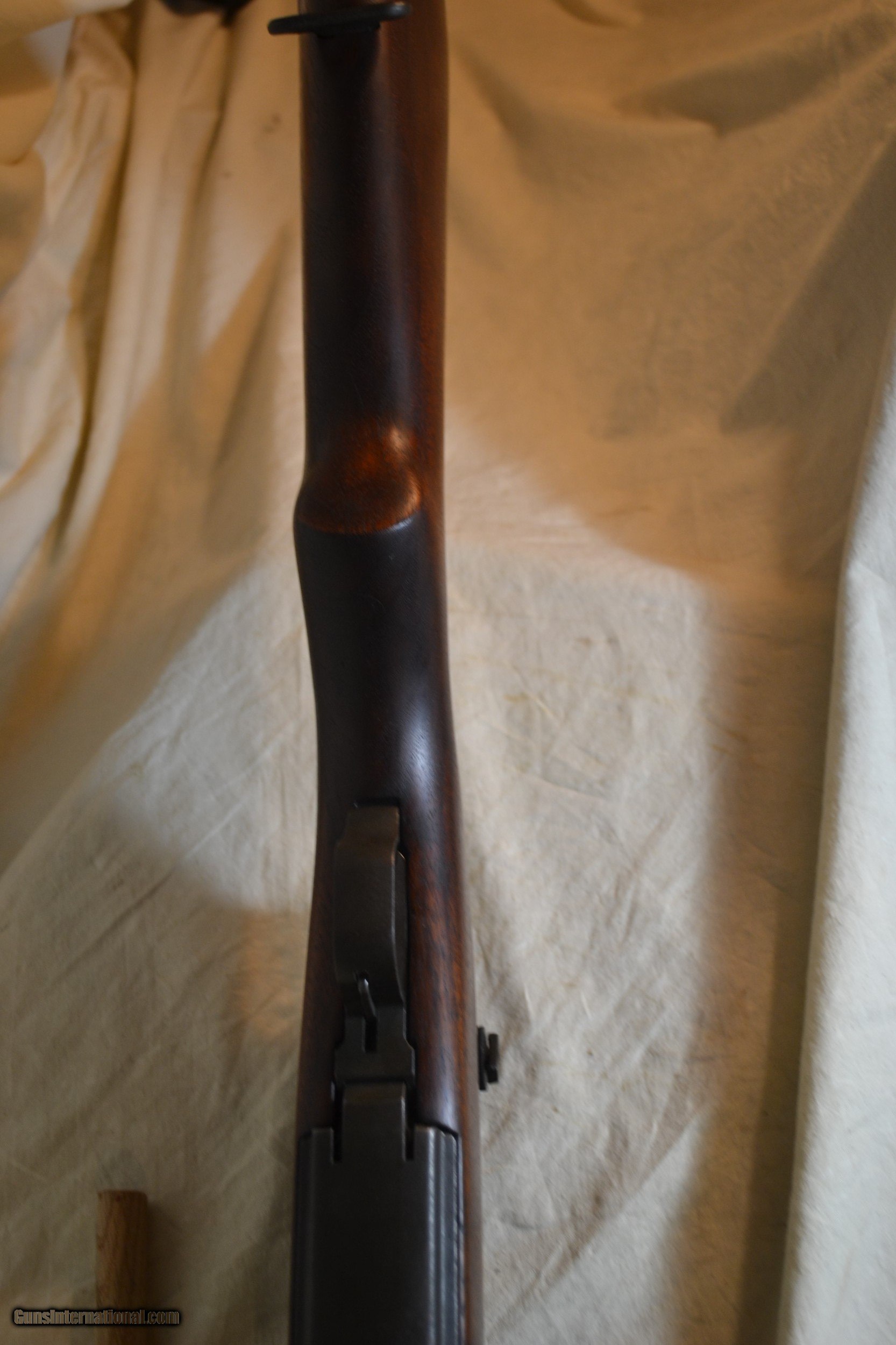 Description: Sale Pending ! This Springfield Garand was mfg abt 2/43, Ser No. 1382379, Cal 30.06. It was both a WW II and Korean war survivor w/no arsenal markings. It contains all WW II component parts w/the exception of the Barrel which is numbered "5A-1-51". All parts are correct to the serial number of the firearm.The gun bluing is matching throughout.. The buttstock is about 98% w/the correct cartouche of "SA/EMcF" and both the upper hdgd and lower hdgd are the same. The action is perfect. The bore is a mirror w/the normal twist. It measures at the muzzle "0" and the throat the same. This Springfiels - Garand would make both an excellent range gun and a collectible. The following is an inventory of the parts content: Reciver _ D28291-30 w/ht B8B, Barrel Markings - 5A-1-51, Bolt Dwg No - D28287-9-SA w/ht 0-14A, Oper Rod - D35383-9-SA, Trigger Hsg (Milled)-D28290-12SA w/these parts- Trigger-w/hole, Safety-SA-11, Hammer-C46008-7SA, Ham Spg Hsg - Cut-A-Way, Ham Plunger - Winged, Bullet Guide-Rounded, Follower Asmby- UM, Follower Arm- T3, Follower Rod - T-5 (w/long riveted fork), Lower Band-T3 (Flat), Butt Plate - Spg w/Trap Door, Stock - "SA/EMcF" Cartouche & Circle"P" at the bottom of the grip, Gas Cyl -Spg w/flat, Gas Cyl Lock- Champfered, Gas Cyl Screw - Single Slot, Rear Sight - Spg T2 w/knurled cap and2c lockbar w/long pinion, Aperature - Spg. This Springfield Garand is a fine example of a very well preserved WW II firarm annd I rated it an NRA- VG to Excellent. SOLD Manufacturer: Springfield Model: Garand Serial Number: 1382379 Caliber Info: 30.06 Condition: VG - Excellent Metal Condition: VG - Excellent Wood Condition: Excellent Bore Condition: Mirror |