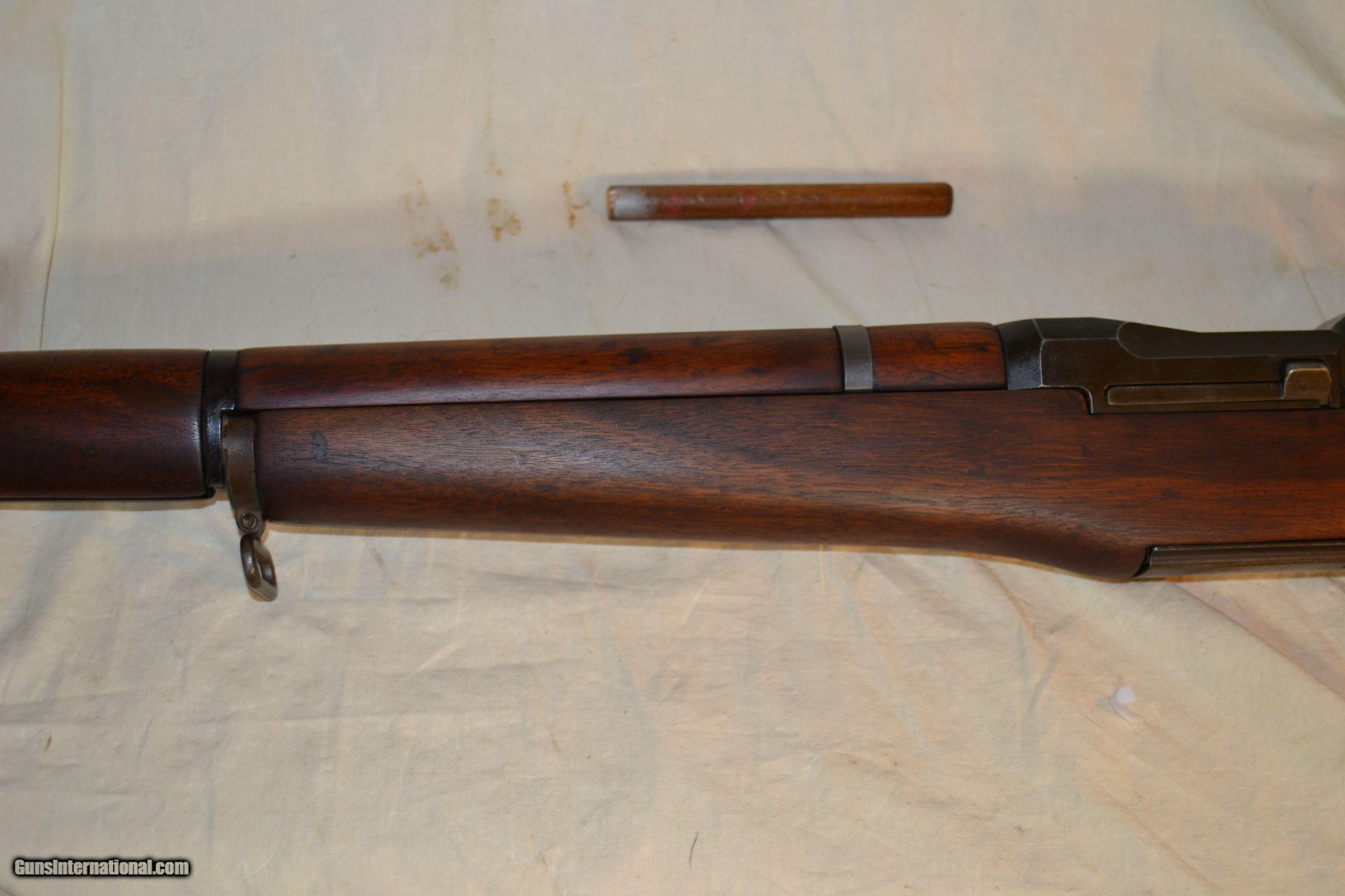 Description: SALES PENDING ! This Springfield - Garand , ser No. 831834 was mfg about 9/1942 and has some possible extensive exposure to WWII, Korea and later campaigns. It has a Naval Armory No. on the butt stock of "2K1116". This was how the Navy inventoried their small arms. It possibly was assigned to a Naval Fleet designated for the Pacific Theater of WW II. The Japanese War Front campaigns got most of the new Garand's , I've been told. The overal condition is excellent and and almost 100% of all of it's parts match. This "Naval Garand's" parts inventory is as follows: Receiver: Dwg No, - D28291-17, Barrel Markings (Upside-down) S-A-9-42, Bolt Dwg No. - 6528287-12SA, Operating Rod - D35382-6SA, Trigger Housing No. - D28290 -5SA, Milled Trig Guard, Bullet Gude - Forged, Clip Latch - Rounded, Follower Asmby - # 11, FollowerArm - Single Bevel, Follower Rod # 4, Oper Rod Catch, Lower Band, Rear Hand Guard Clip - All Springfield, Butt Plate - Sge w/Trap door, Stock - "SA/EMcF w/ordnance emblem to the right, Gas cylinder - Springfield, Gas Cylinder Screw - Single Slot, Rear Sight - Closed ArrowHeads w/Flushnut, Rear Sight Mfg & Aperature -Correct period parts. trigger Hsg Internal Parts - Trigger - Spg, Hammer -C46008-5SA, Safety - SA 11,Plunger - Winged w/cut away case. Bore measures - .0 - Throat 2.5 SOLD Manufacturer: Springfield Model: Garand Serial Number: 831834 Caliber Info: 30.06 Bore: .0 Condition: Excellent Metal Condition: Excellent Wood Condition: Very Good Bore Condition: Nice Twist -No Corr |