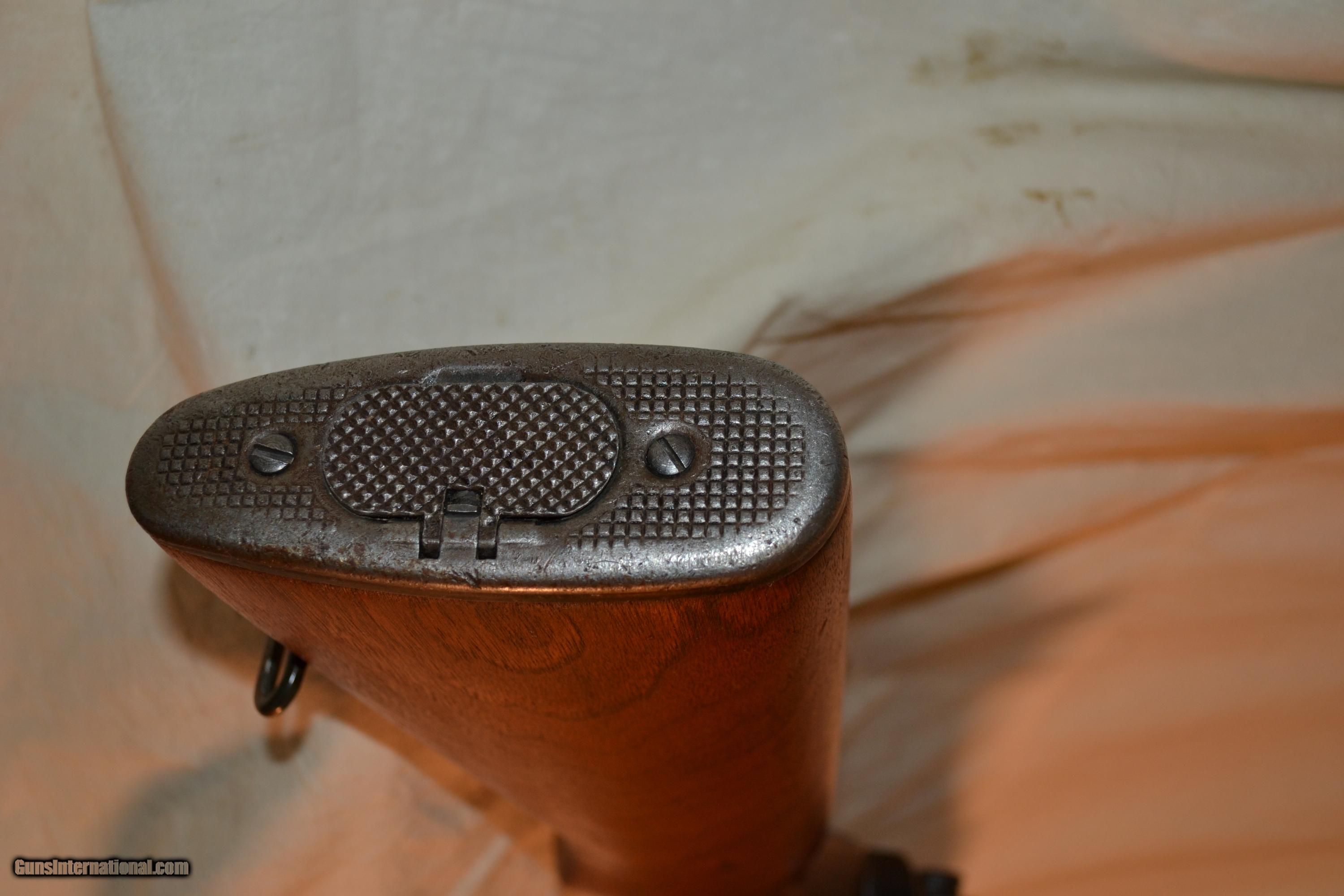 Description: SALE PENDING ! **THIS GUN QUALIFIES FOR BUNDLE DISCOUNT PRICING !! This Springfield M-1 Garand, 30.06 was mfg about 6/43. It has a Marlin WWII to Post War replacement barrel numbered "043DB" and on top it reads"3544". It is very solid example of a WWII gun that made the transition to the "Korean War". The stock has no cartouches or markings but is in very good condition. W/no gauges, cracks or uneven staining. The parts are all very good alsoand inventoried as follows: Receiver - D28291-28, Bolt - D28287-12SA, Oper Rod - 6535382 SA, Trig Hsg - 6528290SA w/Hammer D5546008, Safety - SA-11, Winged Punger.,Bullet Guide - Stamped, Clipp Latch - Rounded, Fillower Arm - Double Bevel, Follower Arm - 11, Follower Rod - Te w/rivets, Oper Rod Catch - Later, Lower band - 1943 Type, Spg Gas Cyl - Lock, Spg Rear Sight w/ Lock (Original). Bore is clean w/distinct twist. Overal this a fine entry level example of "WWII to Korean " type Garand. SOLD Curio/Relic: Yes Manufacturer: Springfield Model: Garand Serial Number: 1736449 Caliber Info: 30.06 Condition: Very Good |