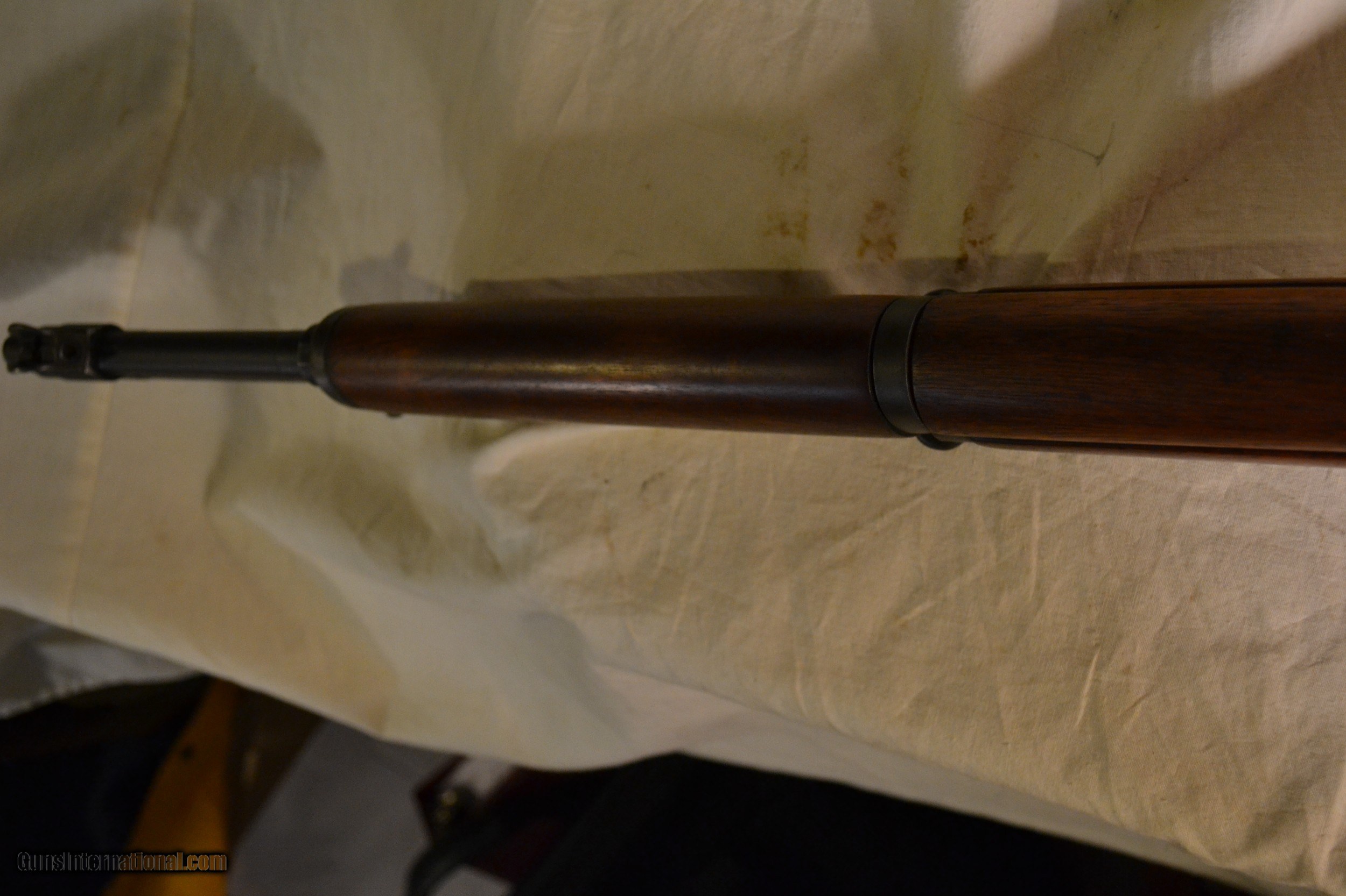 Description: Sold !! This Spg-Garand M-1 Serial No. 3260XXX was mfg about 10/44 and is in excellent condition. The bluing is the correct parkerizing matching contrast throughout - including all internal parts. The action is smooth and cycles correctly. The stock is w/o, nicks, dings, cracks and has the correct Walnut tone. It has the distinct cartouche of "SA/GAW w/ the adjacent ordance cross cannons and the stamped serif circled "P" on the grip. The following part components are included : Receiver Dwg No. - D282291-35 w/Heat Treat No. B-6B, Barrel Markings -Side No. - 1-SA-10-44, Barrel Markings Top No. - D355448-32-A-39-B-3, Bolt Dwg No. - D28287-19SA w/HT No. - B-16B, Oper Rod No. - D36382-9-SA w/5/16" Cut, Trigger Hsh No. - D28290-14SA, Trigger Guard - Stamped w/milled cut tip, Bullet Guide - Stamped, Clip Latch - Sq Front, Follower Asmby - #12, , Follower Arm - Bevel, Follower Rod - T5 w/Riveted (LF), Oper Rod Catch - Late, Lower Band - Flat, Rear HdGD Clip - Stamped, Butt Plate - w/Trap Door and Field Kit, Stock Mfg - Spg w/"SA/GAW" &w/"P" Stamp on the Grip, Gas Cyl - Narrow , Stock Ferrule - Stp w/hole, Gas Cyl Lock - Rounded or w/Chamfer, Gas Cyl Screw - Cross Cutt w/PO Lettering, Front Sight - 5/8", Rear SightElevation Knob w/Closed Arrows w/Lockbar T2C w/squared ends, Apperture - T-3 2nd variation. Trigger Hsg Components - Hammer C46008-7SA, Safety - SA11, Trigger - N Hole, Hammer Spg Plunger w/o Wings T-2, Hammer Spg Plunger Hsg T2. Overal this Garand appears to be in Good to Excellent condition SOLD Manufacturer: Springfield Armory Model: Garand M-1 Serial Number: 3260307 Caliber Info: 30:06 Condition: VG - Excellent Wood Condition: Very Good Bore Condition: Good Action: Excellent |