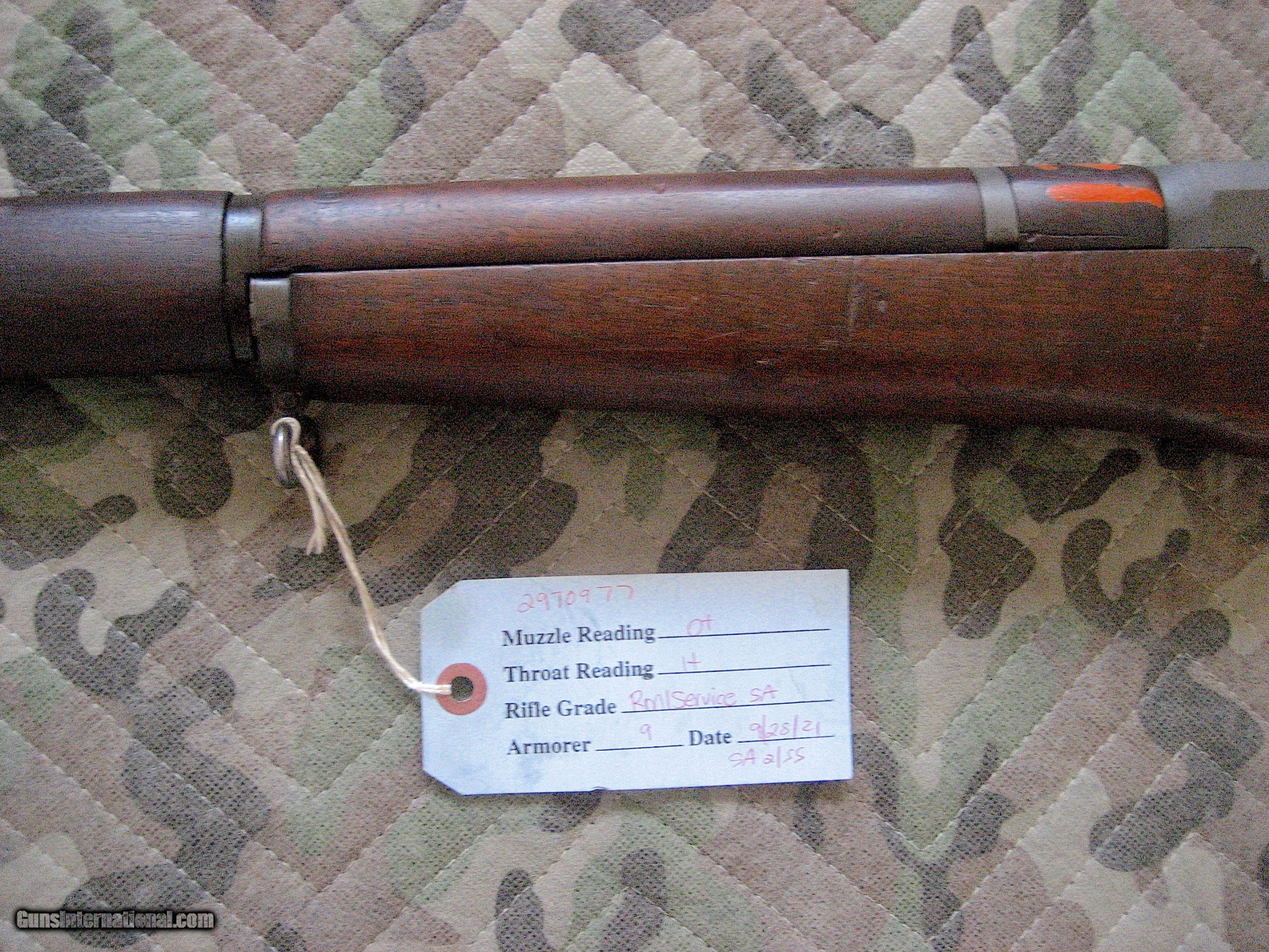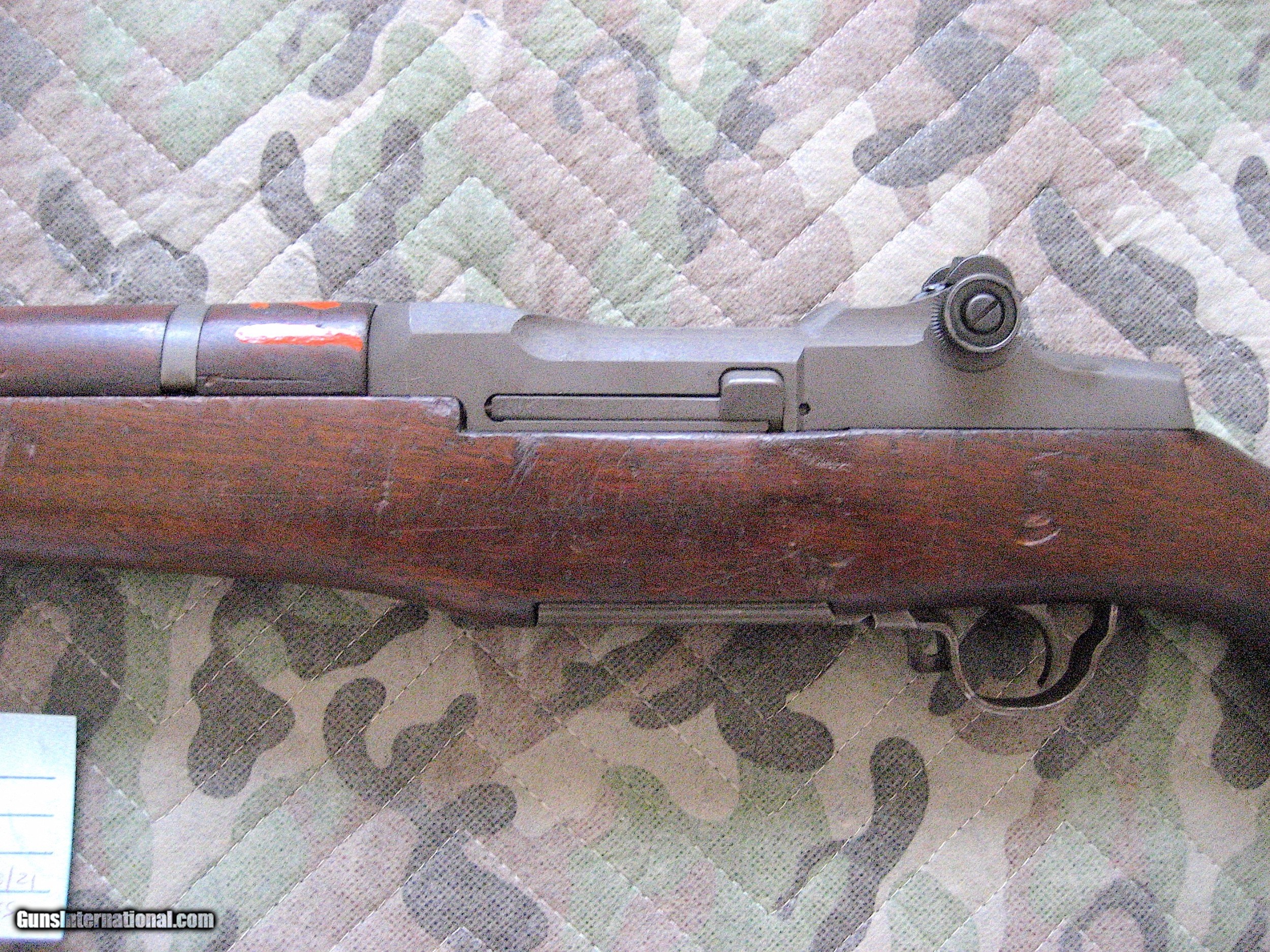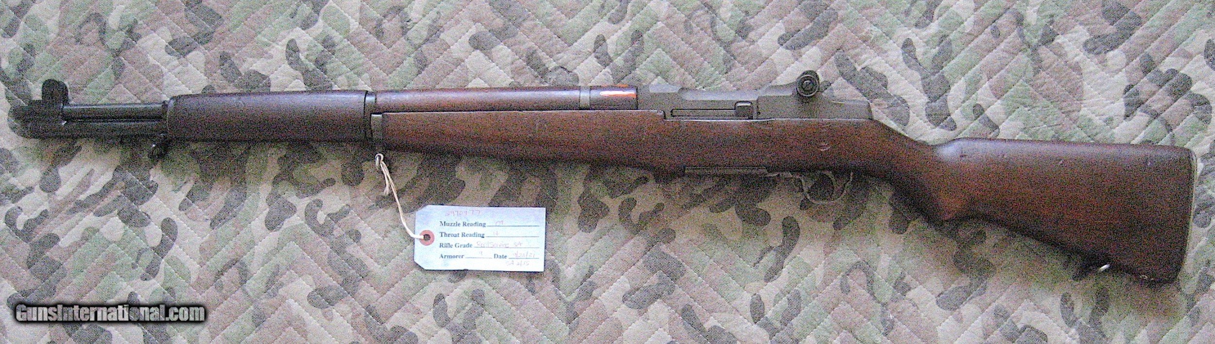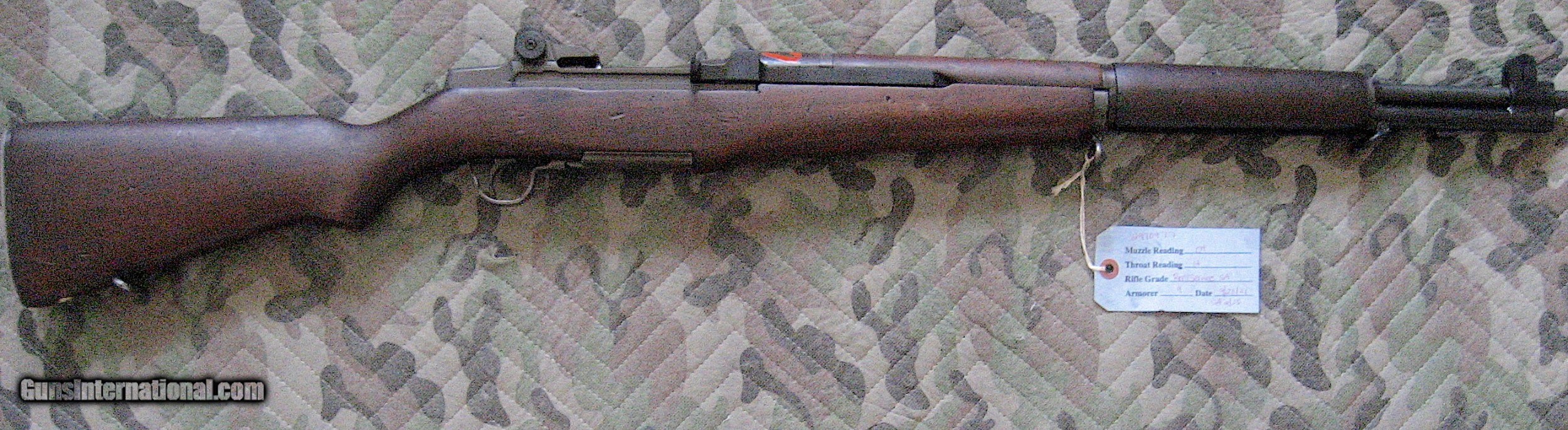 Description: Springfield M1 Semi automatic Garand Service Grade 30.06 rifle certified by the Civilian Marksmanship Program (CMP). This USGI Springfield CMP certified M1 Garand "Service Grade" is a must have for any avid gun collector. Rifles of this vintage saw action in World war II, Korean War and early Viet Nam War. The M1, used throughout Europe and the Pacific during WWII , became the envy of the world with General George Patton describing it as “The best battle implement ever devised.” It has been inspected, refurbished, and tested by CMP. Comes with hard plastic and padded full length guncase marked CMP, Instruction pamphlet, safety device, enblock clip, safety lock and anti rust strip. All marked parts are marked Springfield. MFG 1944 - 45. Rebarreled February. 1955. Barrel looks new with very little wear measuring 0+ at muzzle and 1+ at breech according to included CMP measurements. Shiny bore through out with no rust or corrosion. Inspectors mark on stock handguard, faint P in circle. Fully functional and is a great and accurate shooter. Handling dings on stock with no cracks. Buttplate good, opens for cylinder type cleaning kit storage. Can ship to C&R or FFL dealer. Zelle, cashiers check, money order, layaway or personal check accepted. SOLD Curio/Relic: Yes Manufacturer: Springfield Model: M1 Garand Serial Number: 2970977 Bore: Very Good Chambers: Very Good Ejectors: Very Good Condition: very good Metal Condition: vERY GOOD Wood Condition: Good Bore Condition: Very Good Barrels: Very Good Action: Semi automatic |