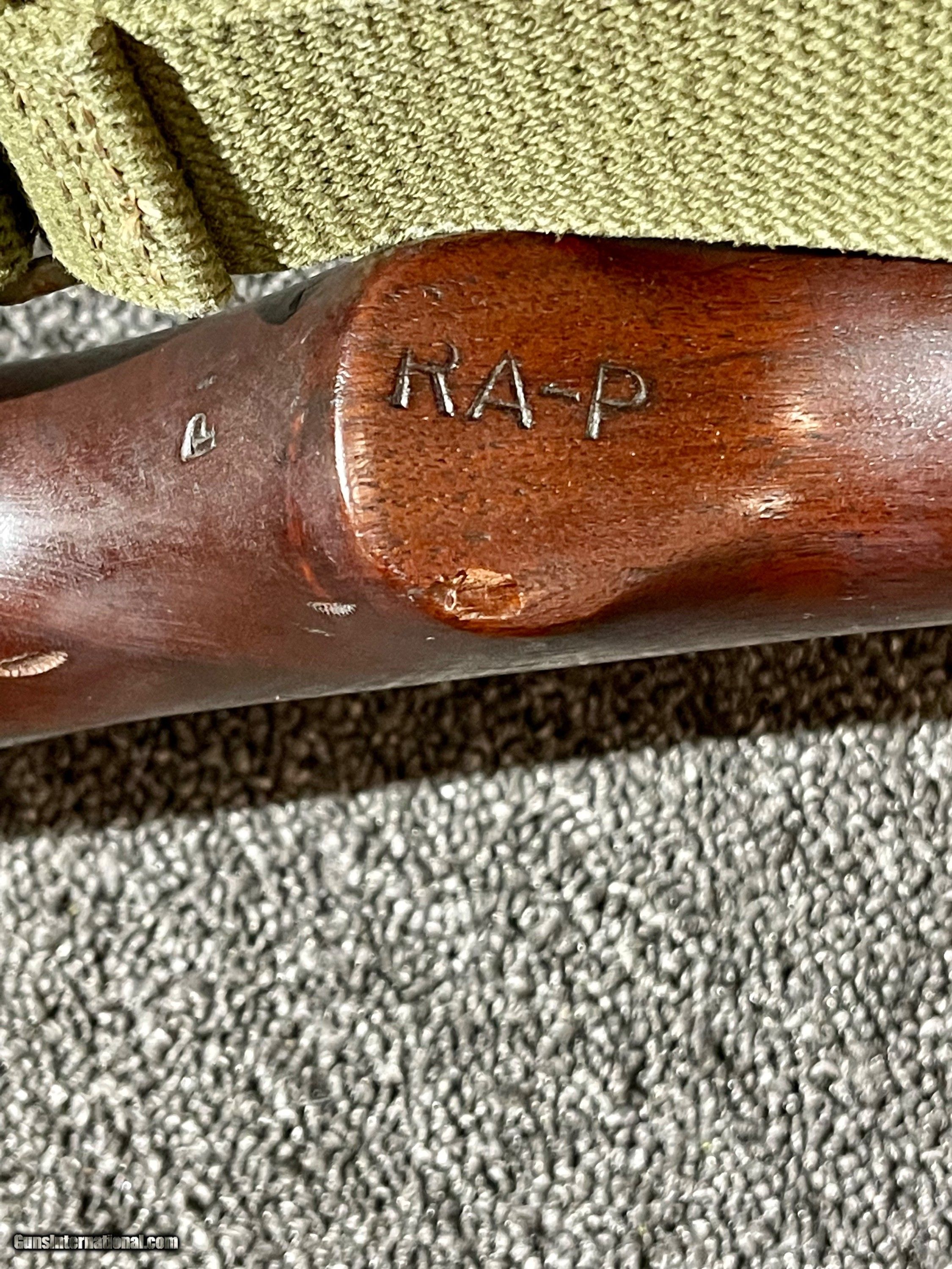 Description: ***************SOLD PENDING PAYMENT*************** 1943 WWII Springfield M1 Garand SPRINGFIELD .30-06 Serial #14634180 (March 1943). Owning an M1 Garand means a lot more than just owning a firearm, it's about owning a piece of history that protected our freedoms and won a world war! This rifle features a 24" SA 7-43 TE2MWI barrel, full wood stock and barrel cover, steel flat storage plunger butt plate, bayonet lug, rear adjustable peep sight and shrouded front blade sight. Also features a USGI canvas sling, narrow base gas cylinder saw cut, milled trigger guard, SA-12 trigger housing, SA-5 hammer, 125A bolt, and "no hump M". Stamping on top of the receiver are crisp and clear. Stock clearly stamped "RA-P" on the base of the grip and proofmark "P". This rifle appears to be in great condition for its age and history! ****WE ARE ALWAYS BUYING AND ARE VERY EXPERIENCED IN ESTATE SALES TOO. LET US KNOW HOW WE CAN HELP!**** PAYMENT: -Payment must be recieved within 10 days of purchase. 3% additional charge for credit card processing. SHIPPING & HANDLING: -$30 for handguns and $45 for long guns SHIPPING FIREARMS: -Firearms shipped to FFL dealer only -We will ship upon receipt of payment and signed legible copy of dealer's FFL via Fax, Mail or E-mail. SALES TAX: -Florida residents add 7.5% sales tax. PRODUCT: -We operate a gun shop which means that every item is for sale in our store and it may have already been sold when you contact us. NEW GUNS: -On new Firearms we may use file photos instead of the actual gun. CONTACT: -Contact me with any and all questions. We want you to be happy with your purchase. PHONE #: (904) 271-5270 STORE HOURS: Mon-Fri: 11p-6pm Sat: 9a-3p BUYER: -It is Buyer's responsibility to ensure that the weapon is LEGAL to own in your city/state. SOLD Rifle Caliber: .303-06 Manufacturer: Springfield |