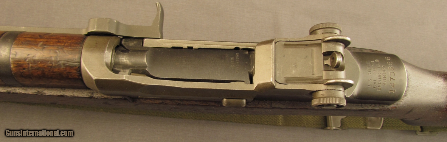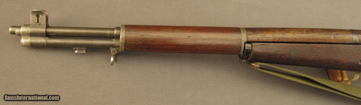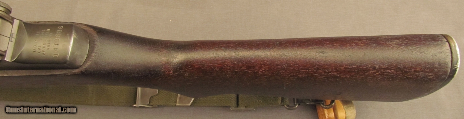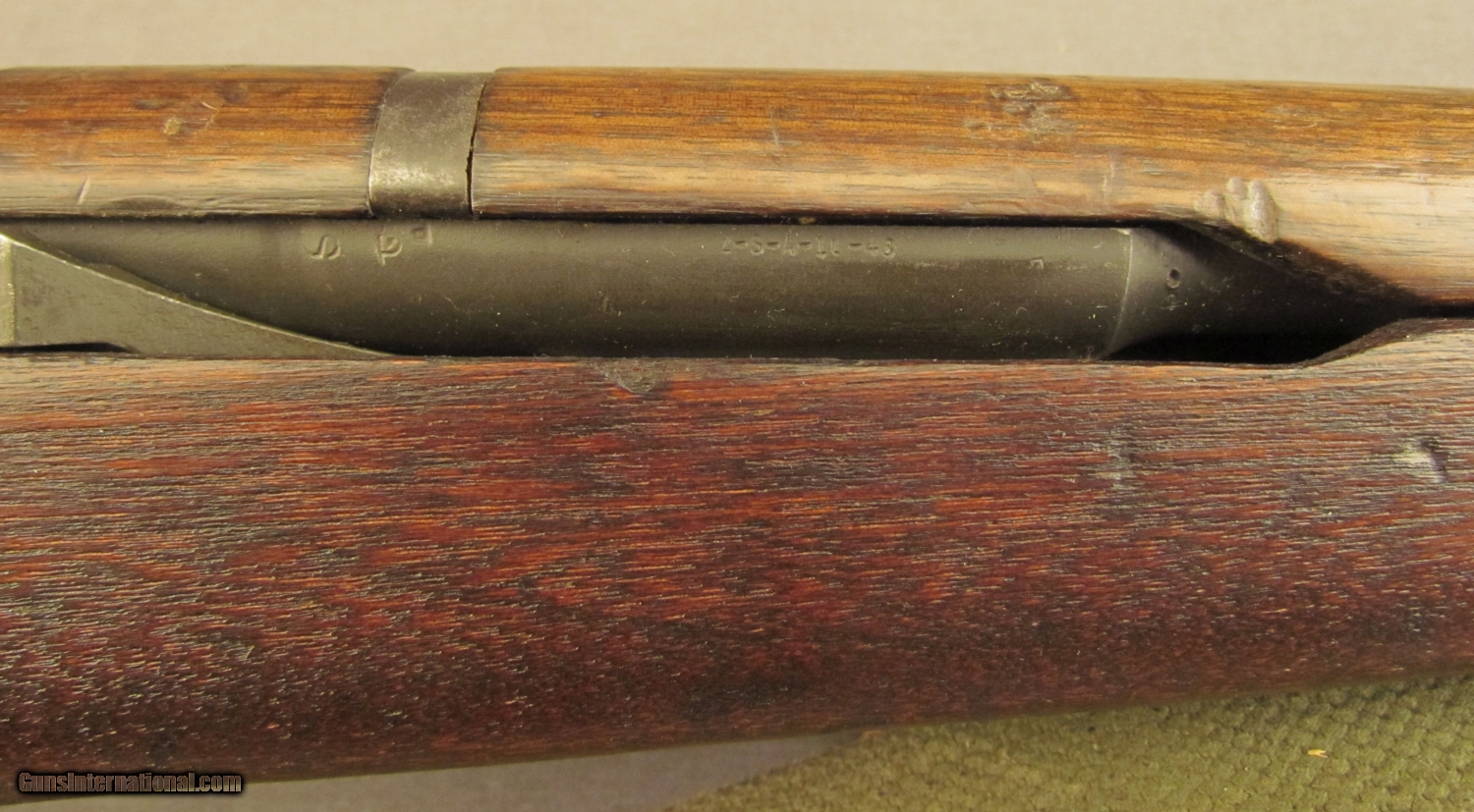 Description: Serial #1473686, .30-06, 24” barrel with an excellent, bright bore. This WW2 rifle was rebuilt in 1965 and has nearly all SA parts. The metal retains 90-92% armory re-applied parkerizing with some scratches and silvering at the muzzle, as well as further silvering on the projections, on the bearing surfaces of the bolt, and inside the op-rod raceway. The receiver was electric penciled under the wood: “SA/1-65”, indicating arsenal rebuild by Springfield Armory in January of '65. After that the rifle was sent overseas and there is a small, unobtrusive import marking on the right side of the barrel near the muzzle. The unmarked, Korean “chu wood” stock has scattered light handling marks and blemishes throughout, while the walnut handguards have some surface bruises, mainly on the rear handguard. An OD green canvas M1 sling is installed. This is a great arsenal refurbished, foreign service Garand, originally made in 1943, that is in about fine plus condition overall. FFL or C&R SOLD Curio/Relic: Yes Manufacturer: Spfld Model: Garand Serial Number: 1473686 Caliber Info: .30-06 Gauge Info: .30-06 |
