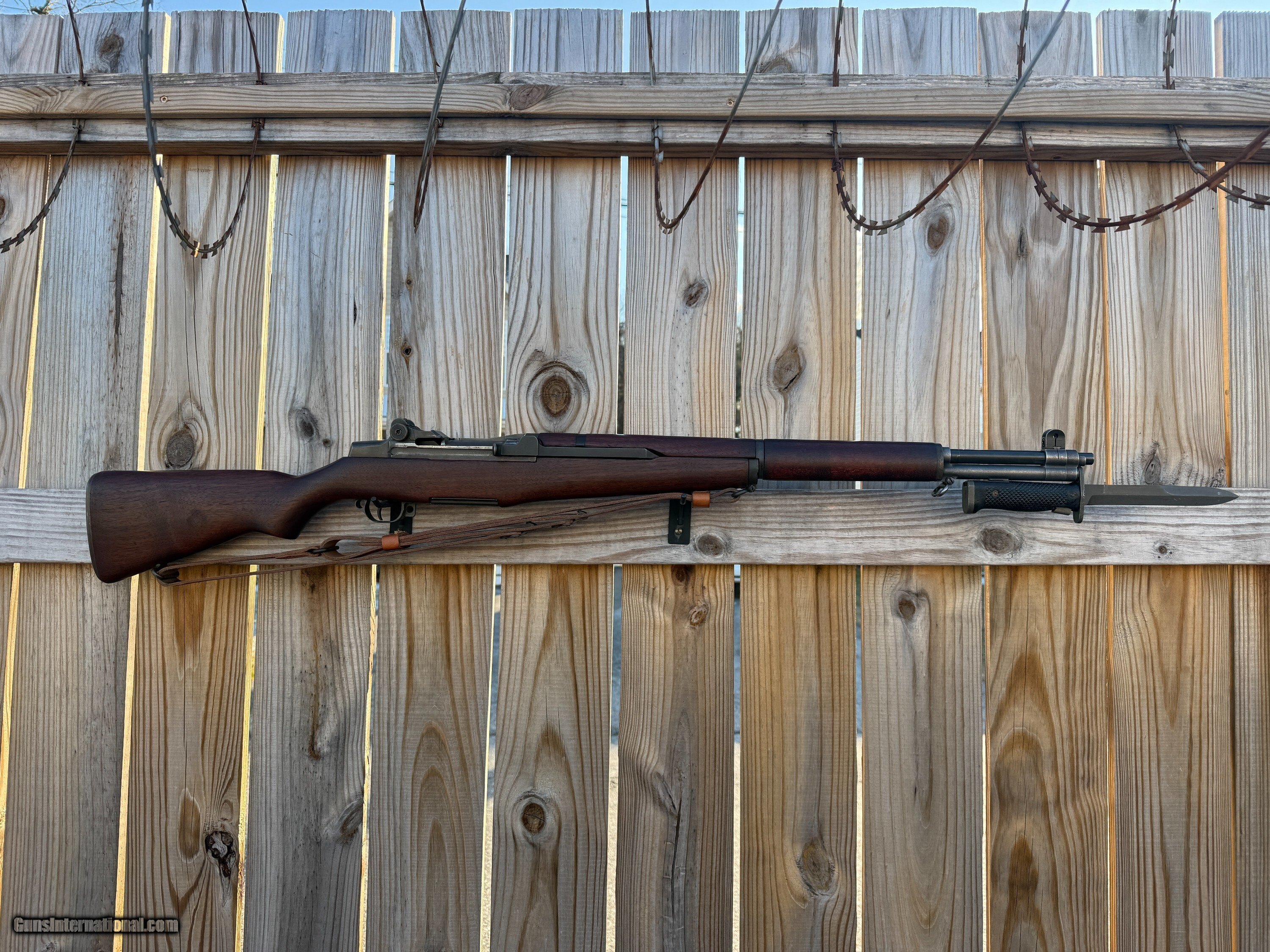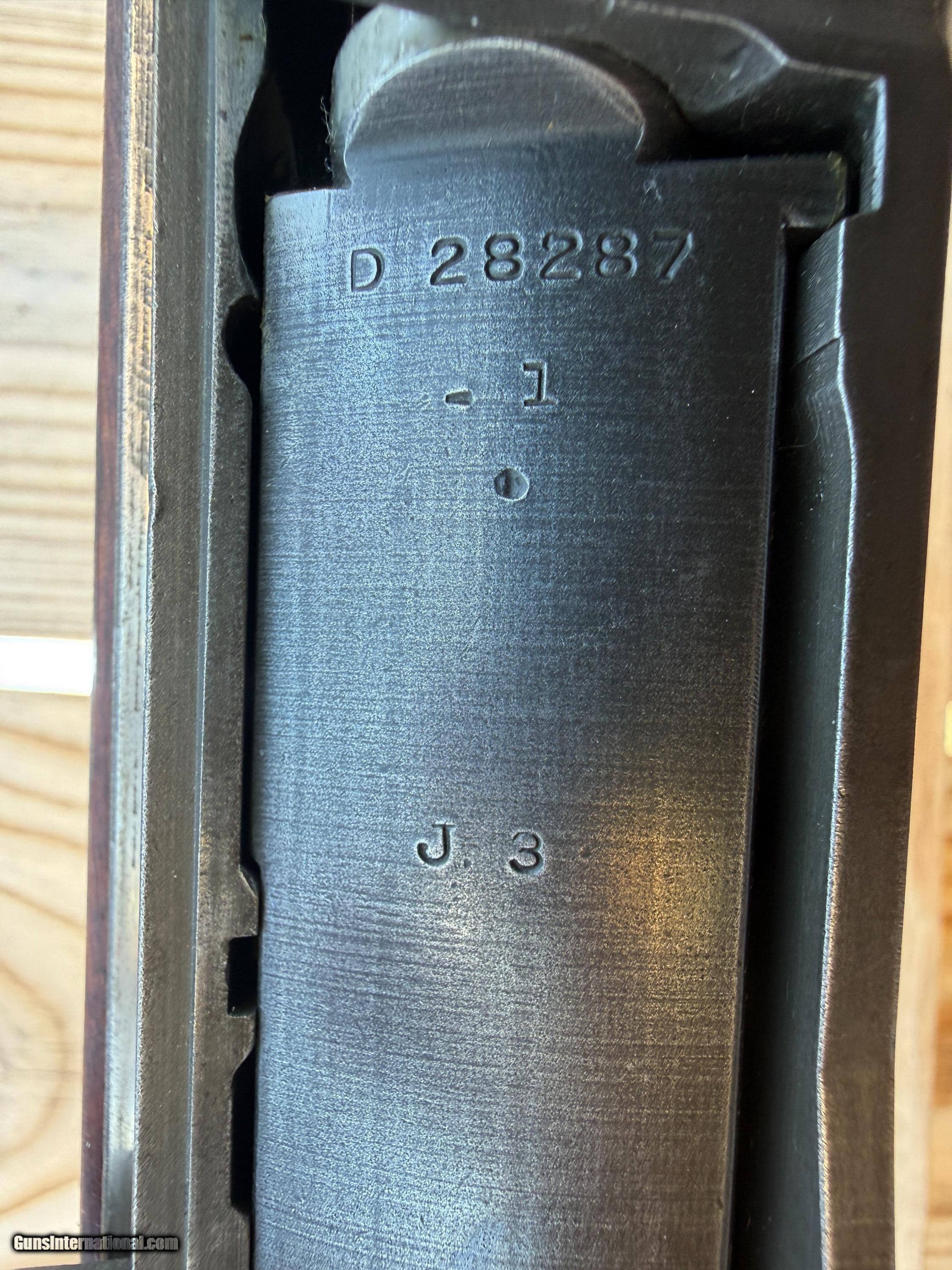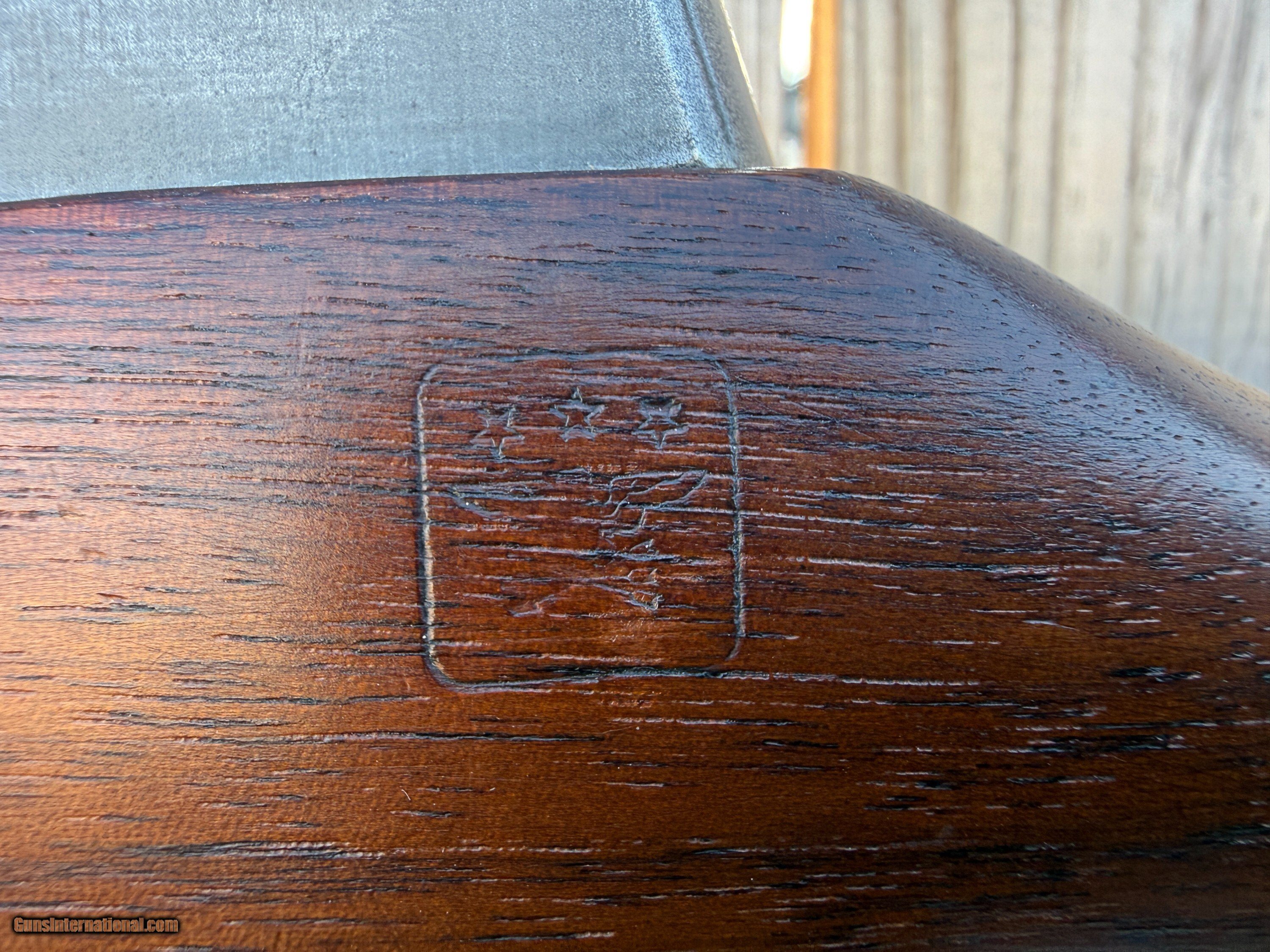 Description: Here we have a U.S. Rifle .30 cal M-1 Springfield Armory. The U.S. Rifle Cal .30 M1, or M1 Garand, is a gas-operated, semi-automatic rifle from Springfield Armory firing .30-06 Springfield ammo from eight-round en bloc clips, known for its iconic "ping" as the empty clip ejects, its simple field stripping, and its role as America's first standard-issue semi-auto rifle. This Rifle was manufactured in 1943 but the barrel is stamped with S-A-10-51 indicating the barrel was replaced in 1951 FREE SHIPPING IN THE CONTINENTAL U.S. We do not charge you any CC fees. Please call Frank Loane Sr. at 410 382 9867 for info or to negotiate price. Curio/Relic: Yes Rifle Caliber: .30-06 Springfield Manufacturer: U.S. Springfield Armory Model: M-1 Serial Number: 2211767 Barrel Length: 24 Bore Info: Very Good Condition: Very Good Metal Condition: Very Good Wood Condition: Very Good Bore Condition: Very good Manufacture Date: 1943 Price: $2,850.00 Contact Seller |