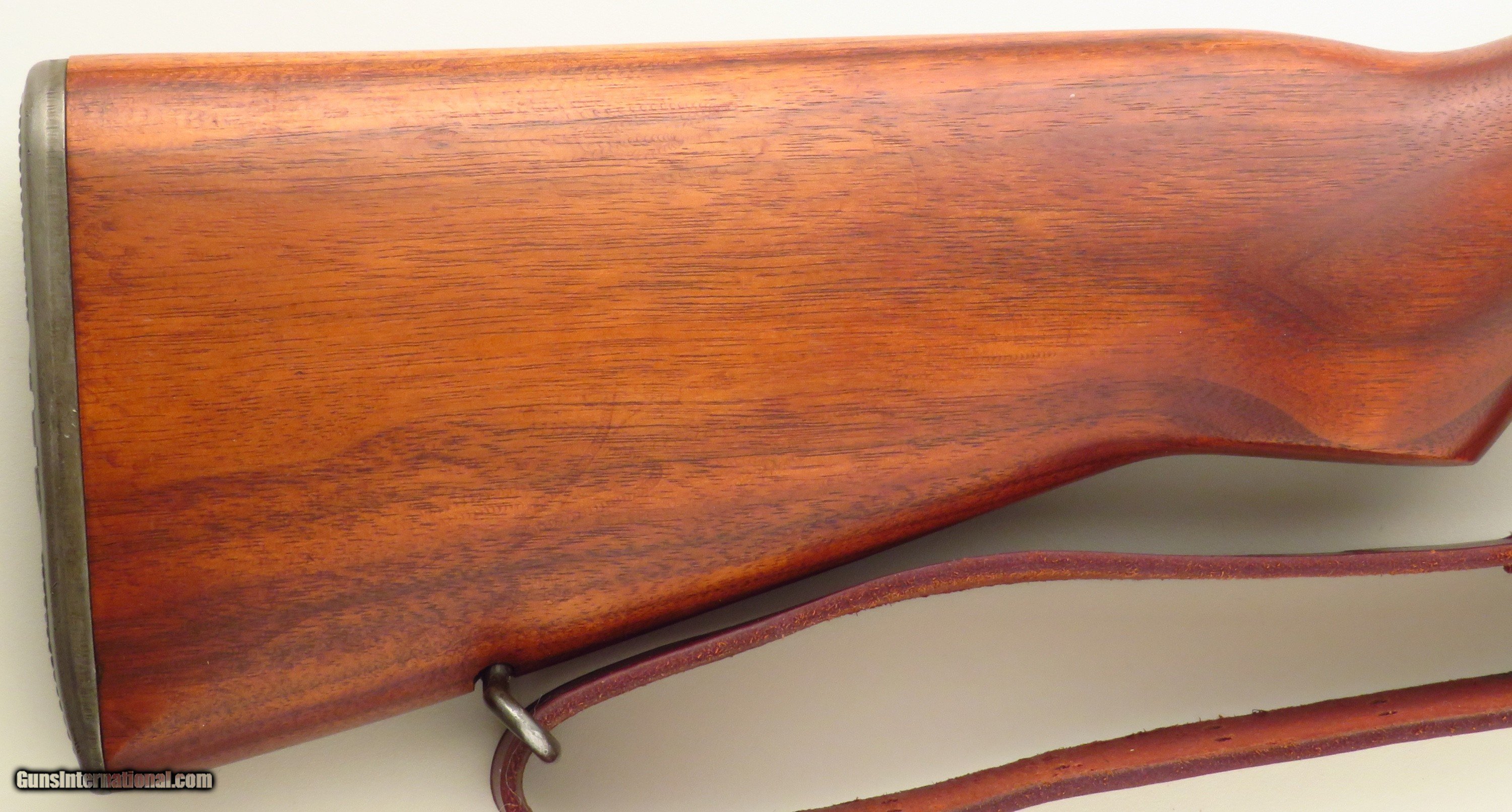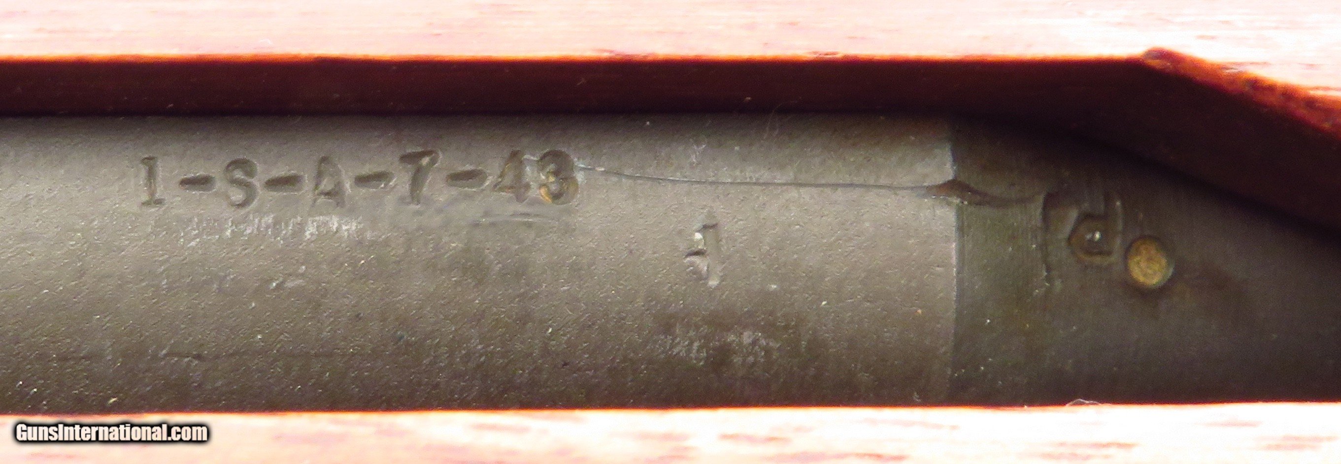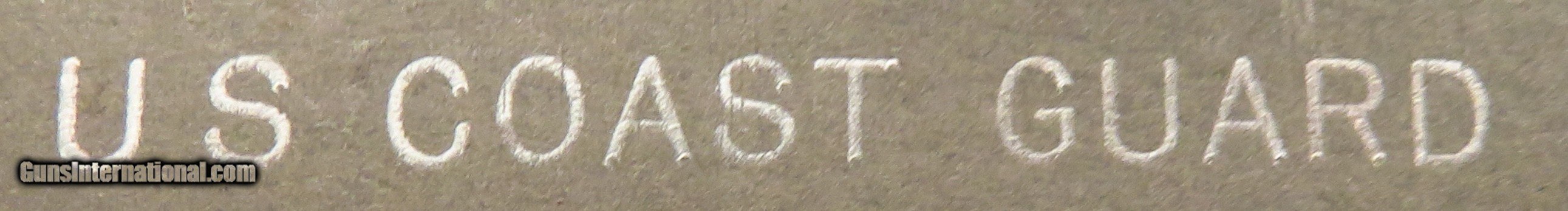 Description: U.S. Coast Guard Springfield Armory M1 Garand .30-06. Serial 1800252 has a 24-inch barrel and an outstanding walnut stock. MARKINGS: "US COAST GUARD" appears on receiver left. Barrel shank shows "1-S-A-7-43" and proofs appear to be "J", "D" and "P". The barrel is not dated near the muzzle and the stock is unmarked. INCLUSIONS: A heavy leather sling, cleaning tubes and tool (all pictured) are present. No box, papers, history, certificate or additional accessories. CONDITION: The bore is very good with areas of light frosting/roughness. Metal finish is approximately 95 percent and wood is at least 98 percent. The price is firm and layaway is available. $2,250 plus shipping. SOLD Rifle Caliber: .30-06 Springfield |