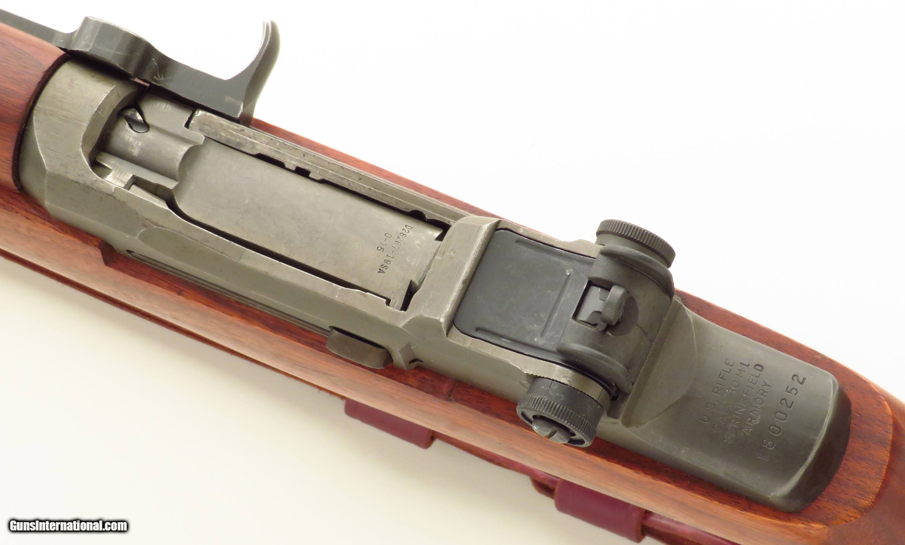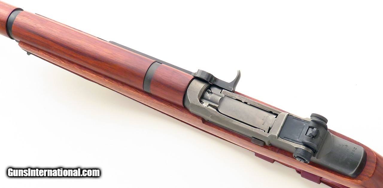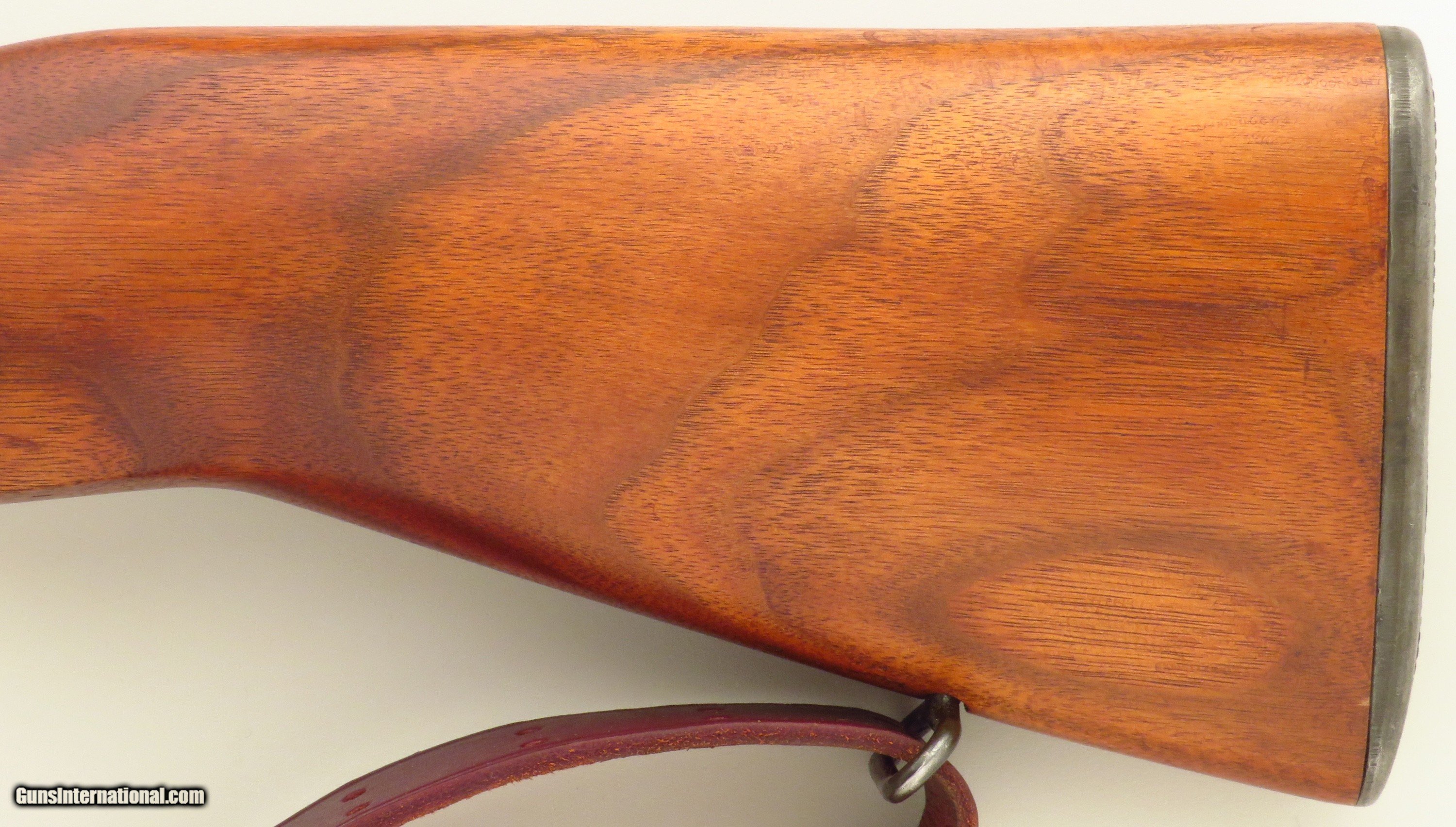 Description: U.S. Coast Guard Springfield Armory M1 Garand .30-06. Serial 1800252 has a 24-inch barrel and an outstanding walnut stock. MARKINGS: "US COAST GUARD" appears on receiver left. Barrel shank shows "1-S-A-7-43" and proofs appear to be "J", "D" and "P". The barrel is not dated near the muzzle and the stock is unmarked. INCLUSIONS: A heavy leather sling, cleaning tubes and tool (all pictured) are present. No box, papers, history, certificate or additional accessories. CONDITION: The bore is very good with areas of light frosting/roughness. Metal finish is approximately 95 percent and wood is at least 98 percent. The price is firm and layaway is available. $2,250 plus shipping. SOLD Rifle Caliber: .30-06 Springfield |