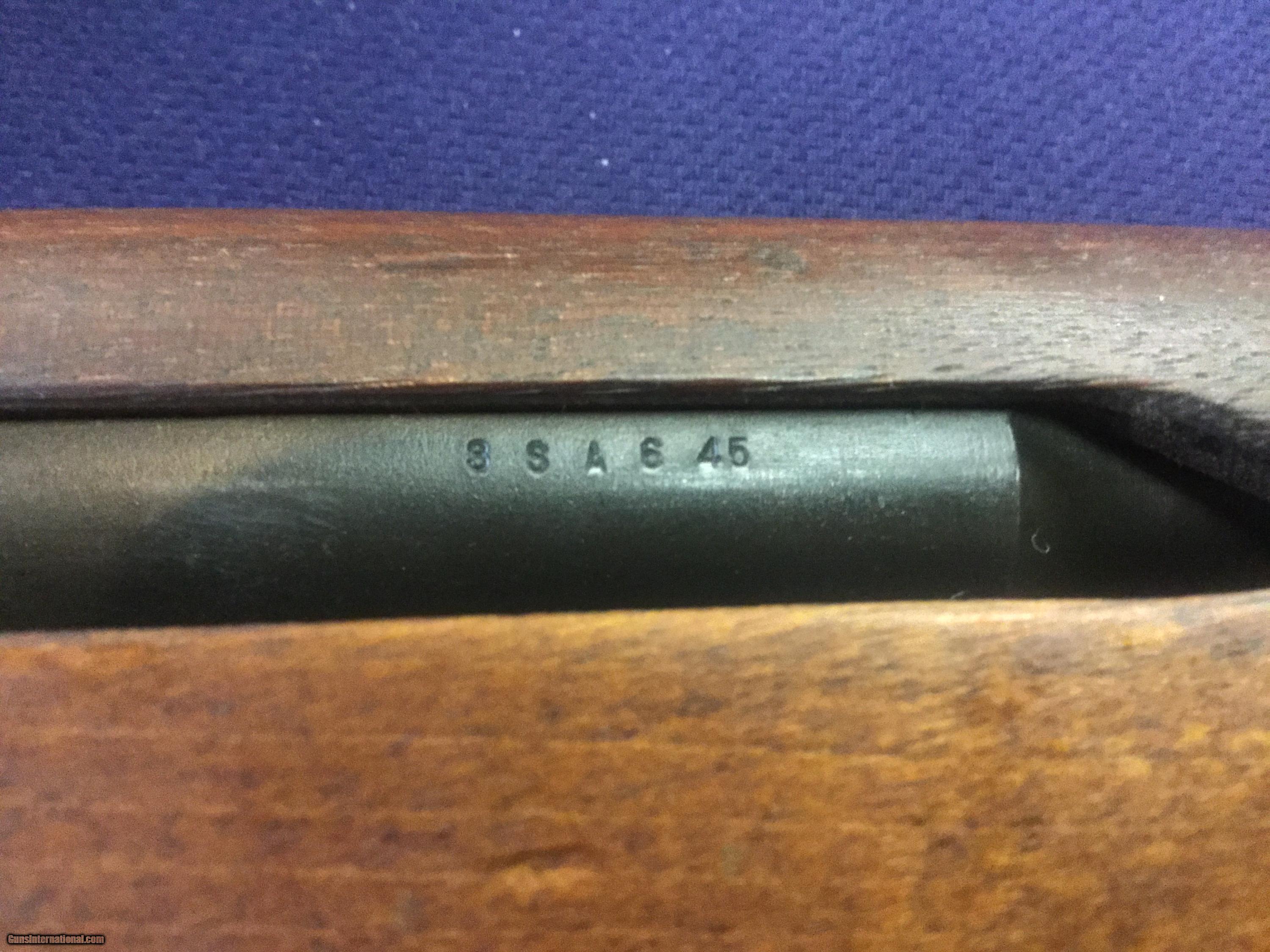 Description: Up for sale today is a US Springfield M1 Garand serial no 2265870 chambered in caliber .30-06. This excellent Garand has a barrel date of "SA 6-45" and an excellent bore with a throat erosion reading of 3 and a muzzle wear reading of 2. This rifle shows outstanding finish of both metal and wood and comes with original DCM shipping box and preservative bag. An excellent Garand and a great shooter as well. All Pennsylvania residents please add 6% sales tax. SOLD Manufacturer: US Springfield Model: M1 Garand Serial Number: 2265870 Caliber Info: .30-'06 Condition: Excellent Metal Condition: Excellent Wood Condition: Excellent Bore Condition: Excellent |