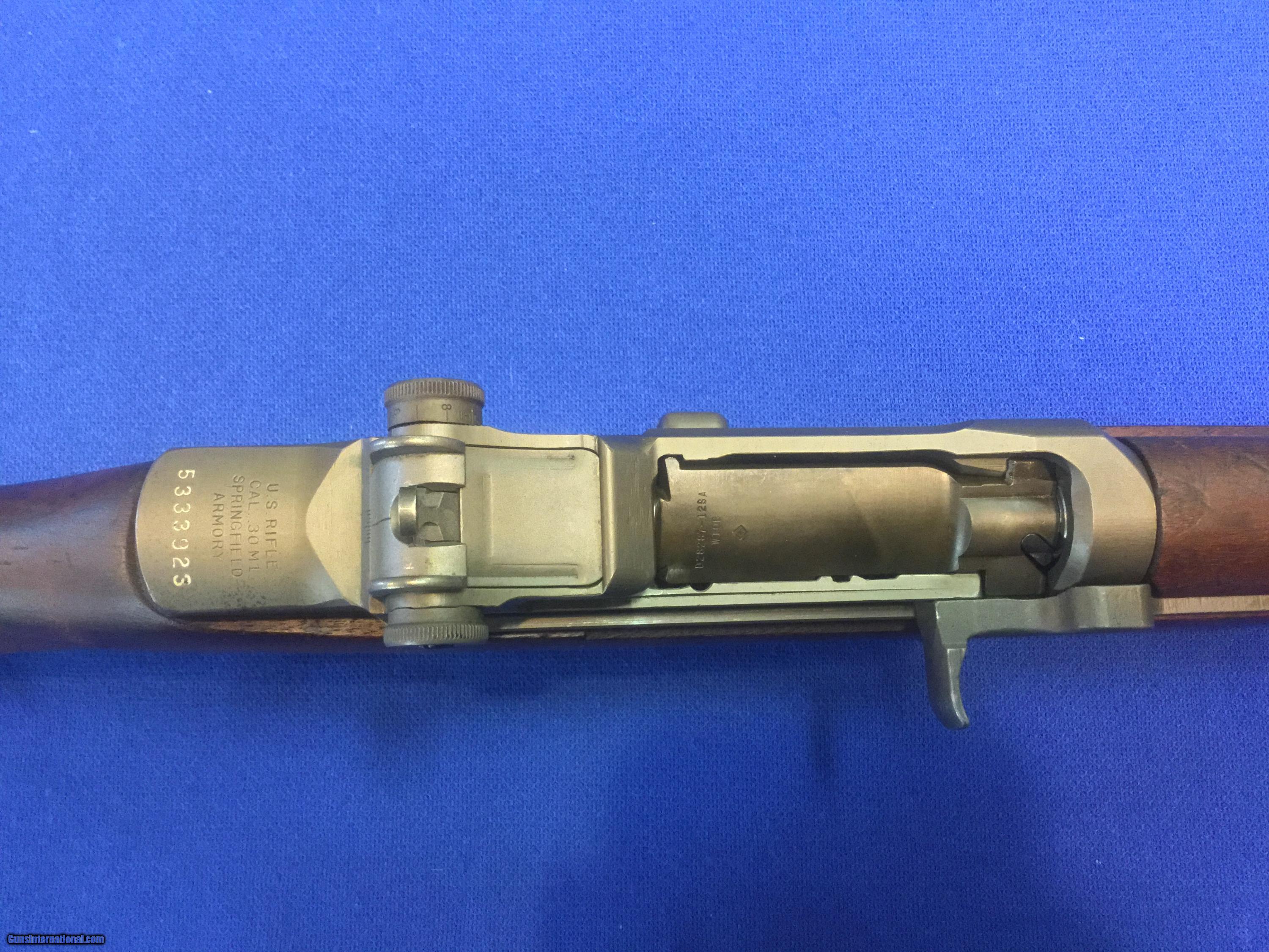 Description: Up for sale today is a Springfield M1 Garand serial no. 5333923 chambered in caliber .30-06. This rifle shows a mint barrel with a barrel date of "SA 8-64," a throat erosion reading of 2 and a muzzle wear reading of 0.75. This rifle was rebuilt at Letterkenny Army Depot in September of 1965 as indicated by the electropenciled markings on the leg of the receiver reading "LEAD 9-65." This rifle shows excellent original finish on both wood and metal parts. A great piece of history and an outstanding shooter as well. All Pennsylvania residents please add 6% sales tax. SOLD Curio/Relic: Yes Manufacturer: US Springfield Model: M1 Garand Serial Number: 5333923 Caliber Info: .30-'06 Condition: Excellent original Metal Condition: Excellent original Wood Condition: Excellent original Bore Condition: Mint |