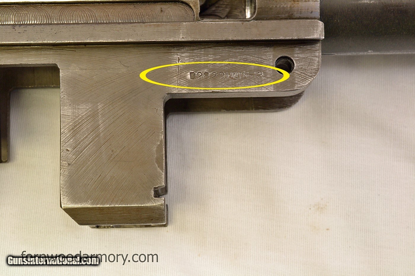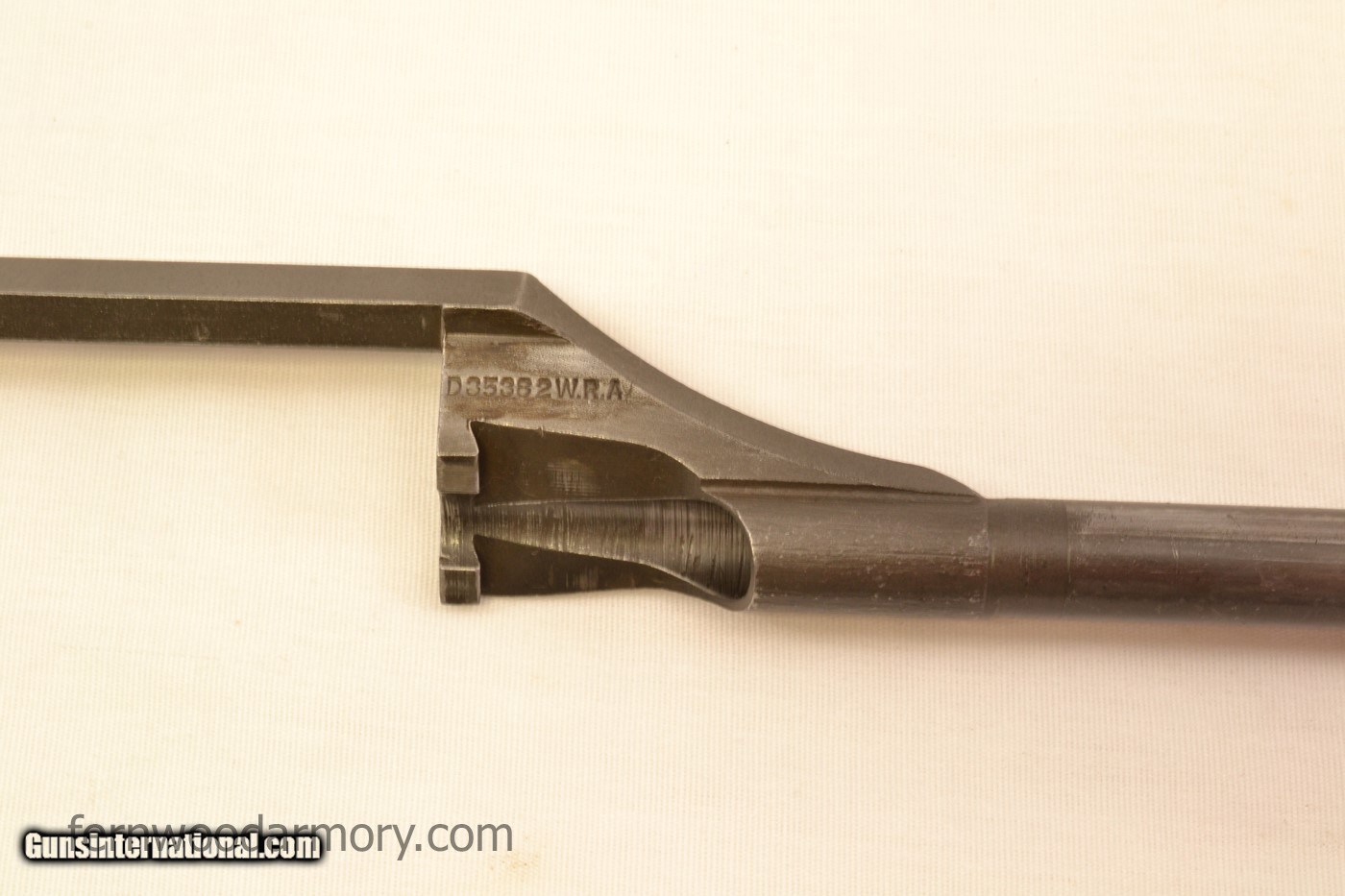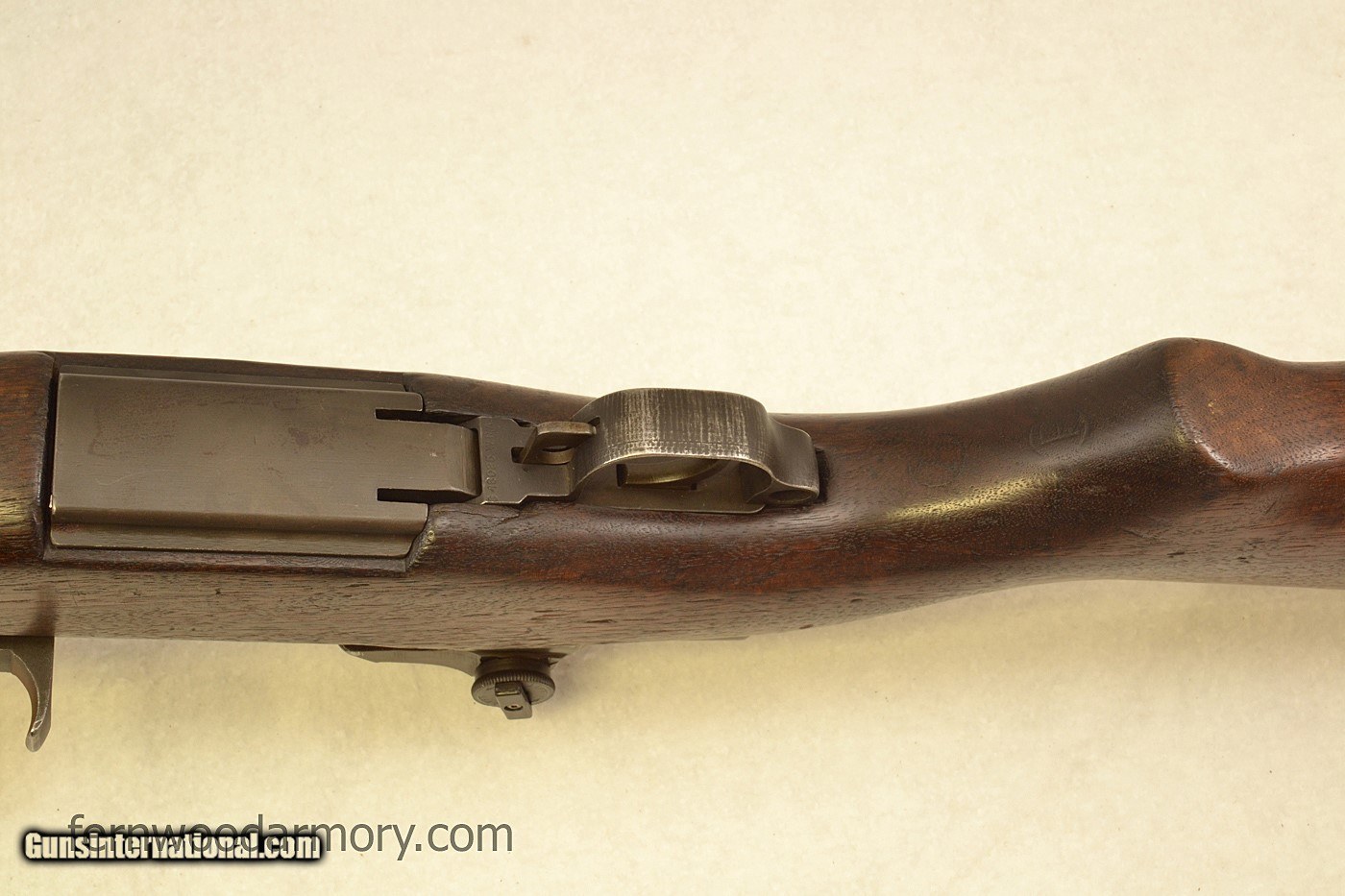 Description: Highly desirable WIN-13 M1 Garand. The WIN-13s are the last M1s manufactured by Winchester in the final months of WWII. The serial number on this one dates to March 1945, and receiver leg is marked WIN-13. This WIN-13 appears to be all correct except for a couple of small parts (noted below). All parts are detailed below and shown in pictures. There are no import marks. This WIN-13 is in very good used condition. Original finish, some brown patina on the receiver, no pitting on any metal parts. The bore is bright and shiny with excellent gauge measurements. Winchester stock is very nice, with minimal dings, no cracks. The Garand performed well in our test firing, cycling through a full clip, ejecting the clip at the end. Two M1 enbloc clips (no ammo) are included. Rifle will ship in a foam lined hard plastic case. C & R Eligible. Free Shipping. No credit card fee. See additional terms below. SPECS: Receiver: marked “D28291WIN-13” on leg. Heel marked “U.S. RIFLE CAL. .30 M1 WINCHESTER TRADEMARK” and serial number. Barrel: Winchester, marked on top D35448 W.R.A. (numbers are faint, see photo). Firing proof W with P in op rod slot along with various assembly markings. Bright bore with sharp riflings. Barrel Gauge Measurements: Muzzle Wear: 1, Throat Erosion: 2 Op rod: marked D35382W.R.A., uncut, slant. Clip latch: round front, marked CM (very faint) Op rod catch: marked A Bullet guide: SA, wide slot, with raised drop forge code markings Follower: late type marked 13. Follower arm: WRA, single bevel, marked 8 Follower rod: stamped, long fork, riveted Bolt: marked D28287-1 W.R.A., with hole in underside. Firing pin: half round Extractor: unmarked Sight knobs: WRA lockbar, open arrowheads, serrated knobs Rear sight cover: late type with ribs Rear sight aperture: WRA Trigger housing: marked D28290-W.R.A., small pad, cloverleaf hole. Trigger guard: milled type, marked C46025 W.R.A. Trigger: marked A Hammer spring plunger: parkerized, with wings Hammer: marked C-46008-1 W.R.A. Safety: flat top, marked C46015-4 W.R.A. Gas cylinder: wide sight platform, round on top of rear ring. Front sight: Winchester, .75 wide, unmarked Gas cylinder lock: rounded top, unmarked. Gas cylinder lock screw: cross slot poppet valve type, marked “P” twice Stock: walnut, Winchester, with v-notch trigger guard, rounded pistol grip. There are two firing proof marks, one a serif circle P close to the grip cap, this mark is very faint. The other is a sans serif circle P in the pistol grip. Overall very nice appearance with minimal dings, no cracks or repairs. Buttplate: WRA, marked 2S inside Handguards: walnut, both have minor dings/scratches, no cracks, match stock in appearance. Accessories: 2 M1 enbloc clips (no ammo), foam lined hard case TERMS We are an FFL dealer. Please read through the terms below before or purchasing. PAYMENT -Checks, money orders and credit cards accepted. No fees for credit cards. -Payments and FFL information must be received within 5 business days or item will be relisted. -Buyer is responsible for contacting their FFL and making arrangements for the transfer. -Sales Tax charged to Florida residents only. SHIPPING -Free ground shipping to FFL dealer in lower 48 states. C & R FFL is accepted. -Firearms ship insured to FFLs and require signatures for delivery. Items usually ship 1 to 2 business days after payment clears and FFL information is received. -No Local Pickup. We are an internet only dealer and do not offer in store pickup. RETURNS -Used Firearms: 3 day inspection policy. Item may be returned if in same condition as when it left our facility. Returns are subject to a $35.00 restocking fee. Buyer is responsible for return shipping charges (must include insurance and signature requirement) and any transfer fees. -In the event of shipping damage please contact us for a return authorization number. OTHER To purchase a handgun: You must be 21 years of age or older To purchase a long gun (shotguns and rifles): You must be 18 years of age or older. (21 and over for Florida residents) Please verify the firearm you wish to purchase meets the laws of your state, county, or city. No Trades No Layaways QUESTIONS? Customer service hours: Monday-Friday 9am-5pm Eastern Phone: 888-319-4811 SOLD Curio/Relic: Yes Manufacturer: Winchester Repeating Arms Model: M1 Garand Caliber Info: .30-06 Stock: WRA Manufacture Date: 1945 |