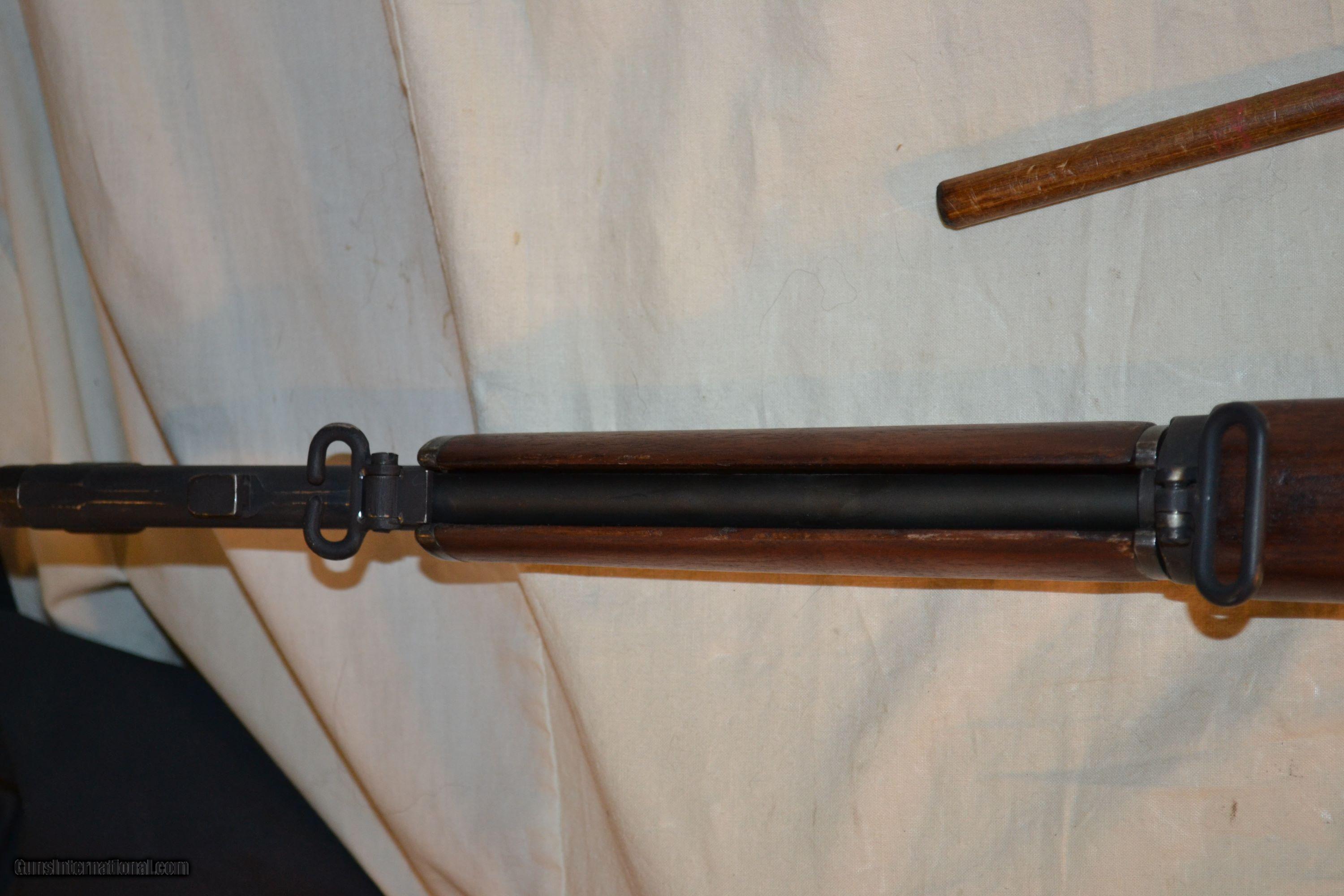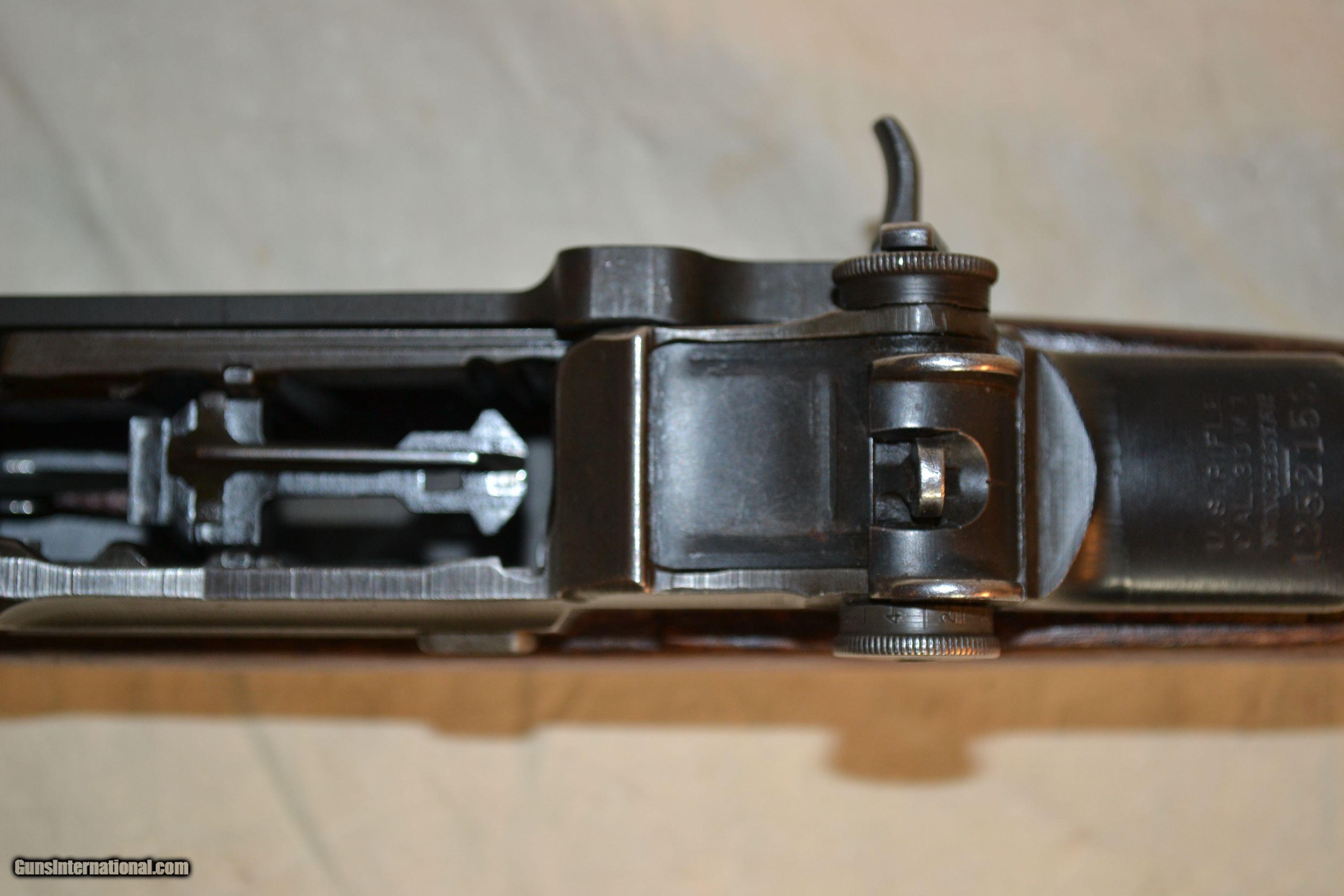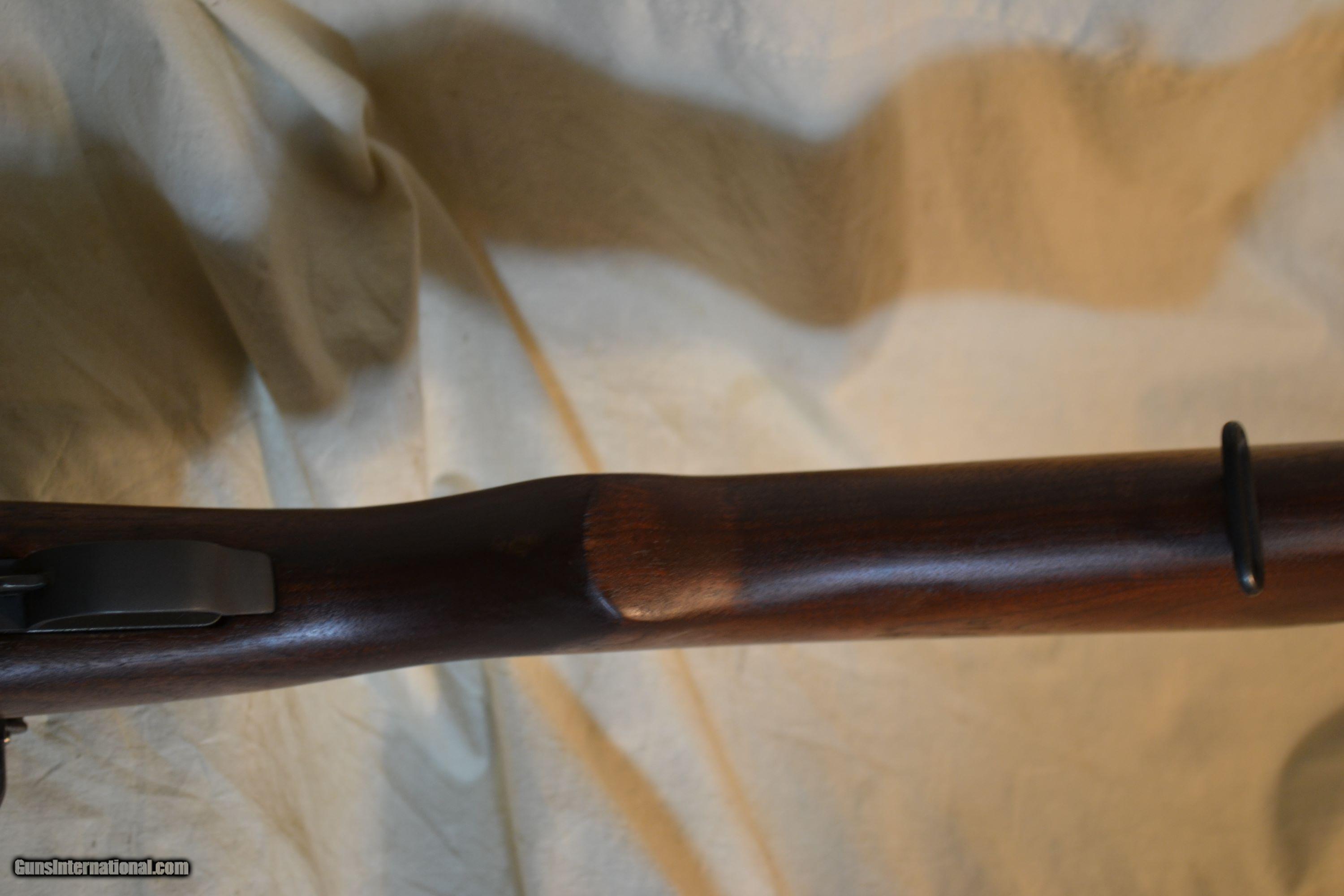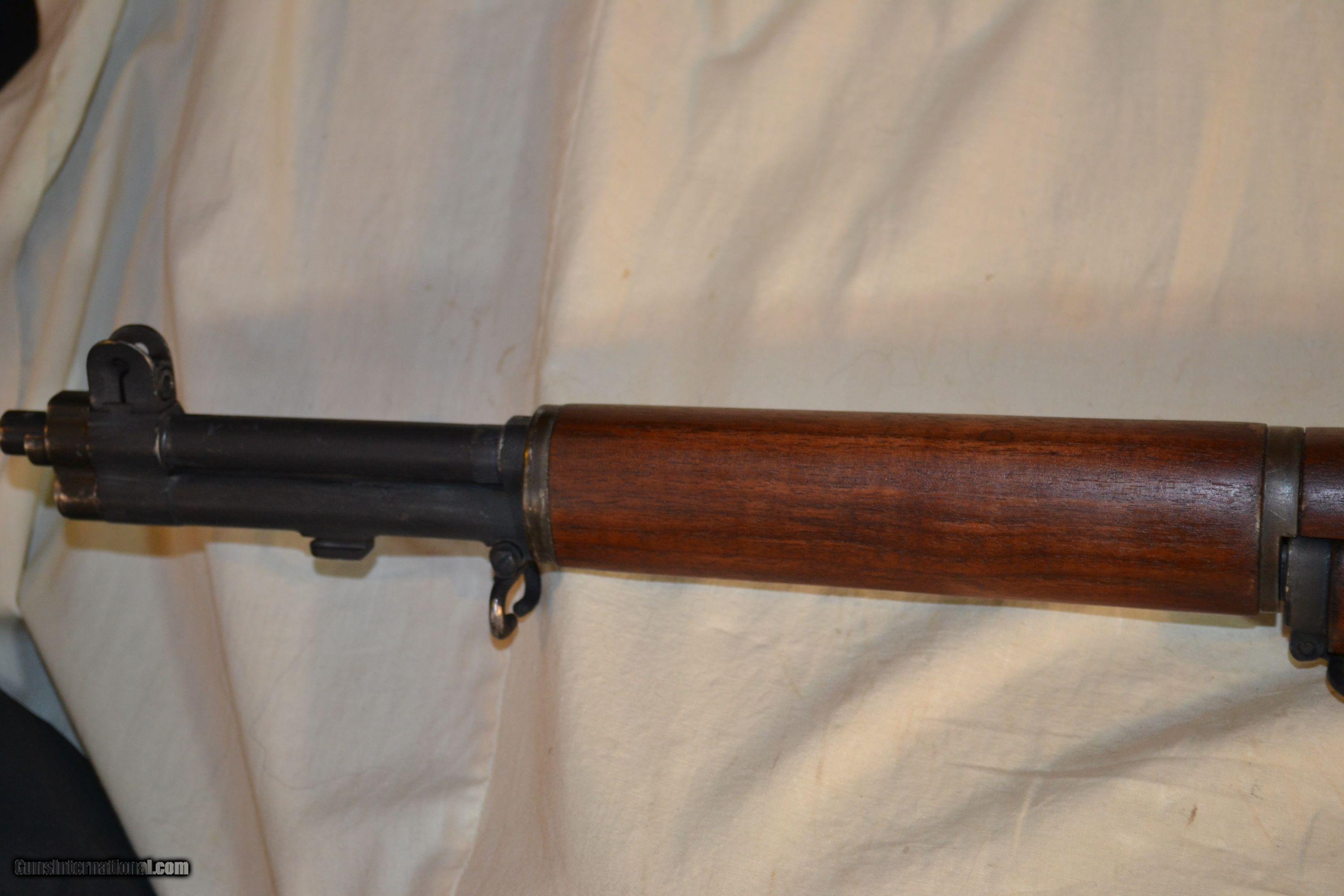 Description: SALES PENDING ! This Winchester - Garand 30.06 was mfg abt 11/42 and has a barrel date of 3-5-A-8-44. The parts are both WWII issue & PW. The following parts are WWII issue - trigger hsg, bullet guide, clip latch, follower assembly, follower arm - rod, oper rod catch, curved lwr band. Winc rear sights - Elev -w/closed arrowheads type 1A - Locking bar 2B, Winchester Butt Plate. Winc late WWII original stock w/AA stamp and Nos. Stock is in excellent condition w/no cartouches. Bore is clean w/a nice twist. It meas "2.0" throat meas "3.5" Both good. Overal this is an excellent Winchester - Garand for both the beginning collector and it would alos be a good shooter. SOLD Manufacturer: Winchester Model: Garand Serial Number: 1252153 Caliber Info: 30.06 Condition: NRA Very Good Wood Condition: Good Action: Semi - Auto |