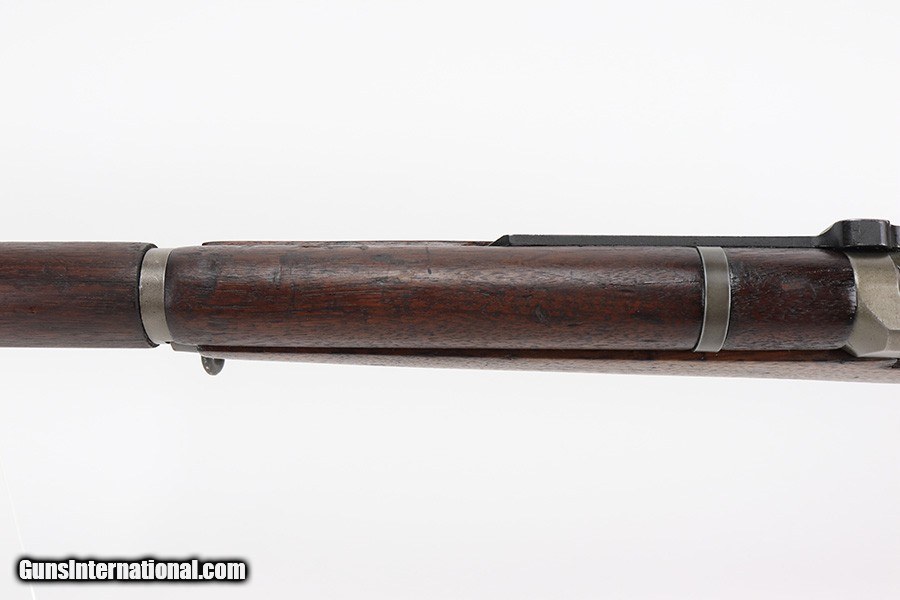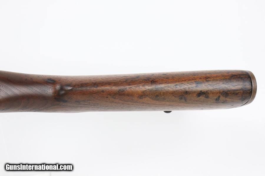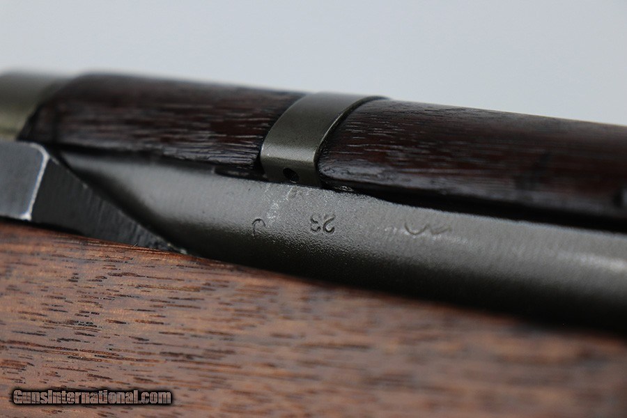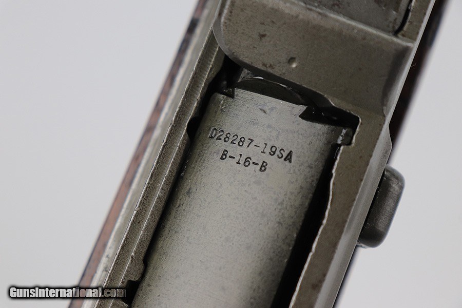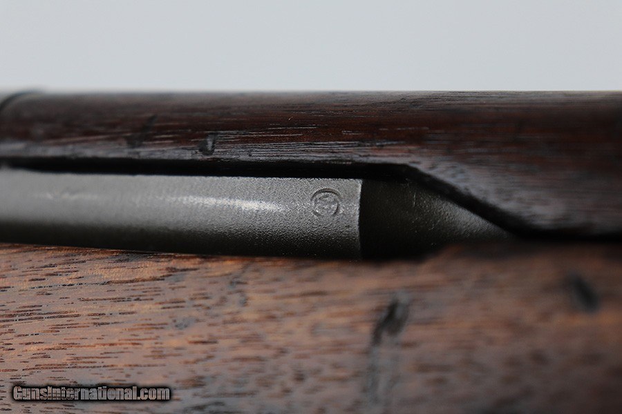 Description: This is a very nice Springfield Armory M1 Garand with receiver from late 1944. The original barrel was reworked by Tooele in 1964, but it is still the original Winchester barrel. ME and TE are both a 4. The finish on the receiver, barrel and trigger group is very nice but the gas tube shows thinning throughout and the slide is refinished/replaced. Original Winchester barrel and receiver. Stock is a replacement and looks to have been sanded. P proof on wrist. The wood shows various dings and nicks, with a thin surface crack in the upper handguard. Bore is shiny with strong rifling but there is frost throughout the grooves. SOLD Curio/Relic: Yes Rifle Caliber: .30-06 Springfield |