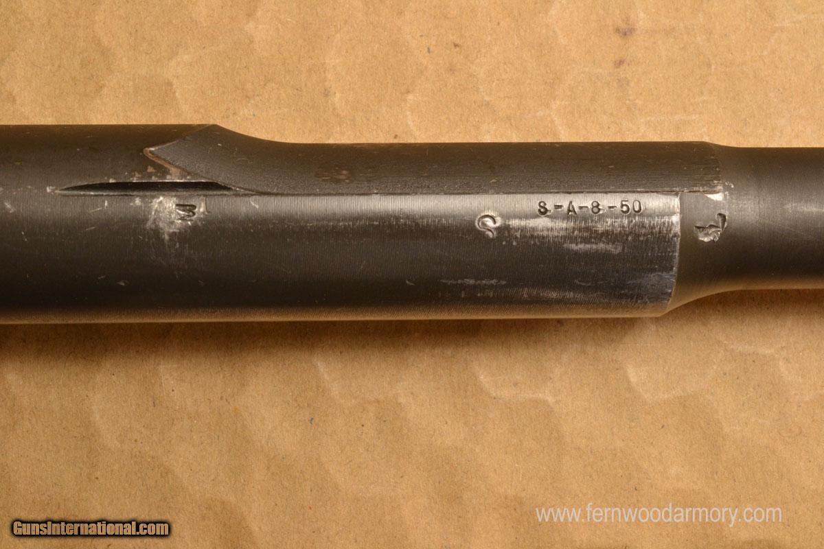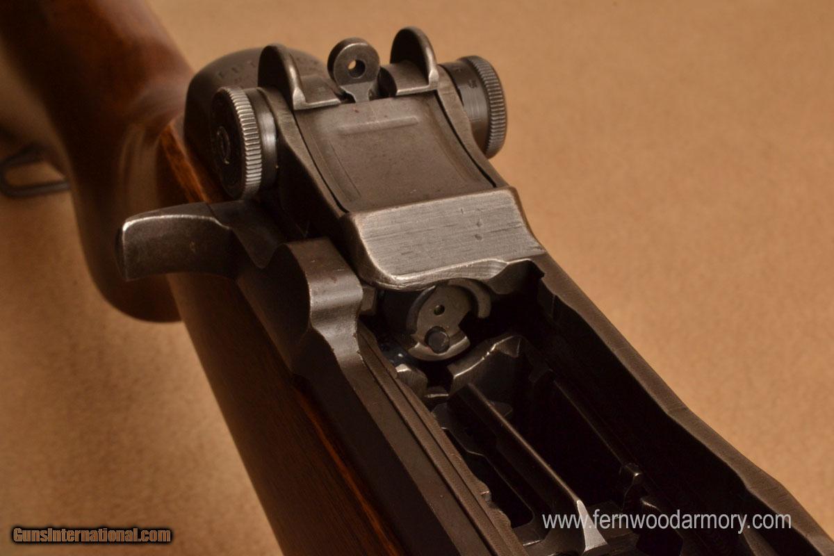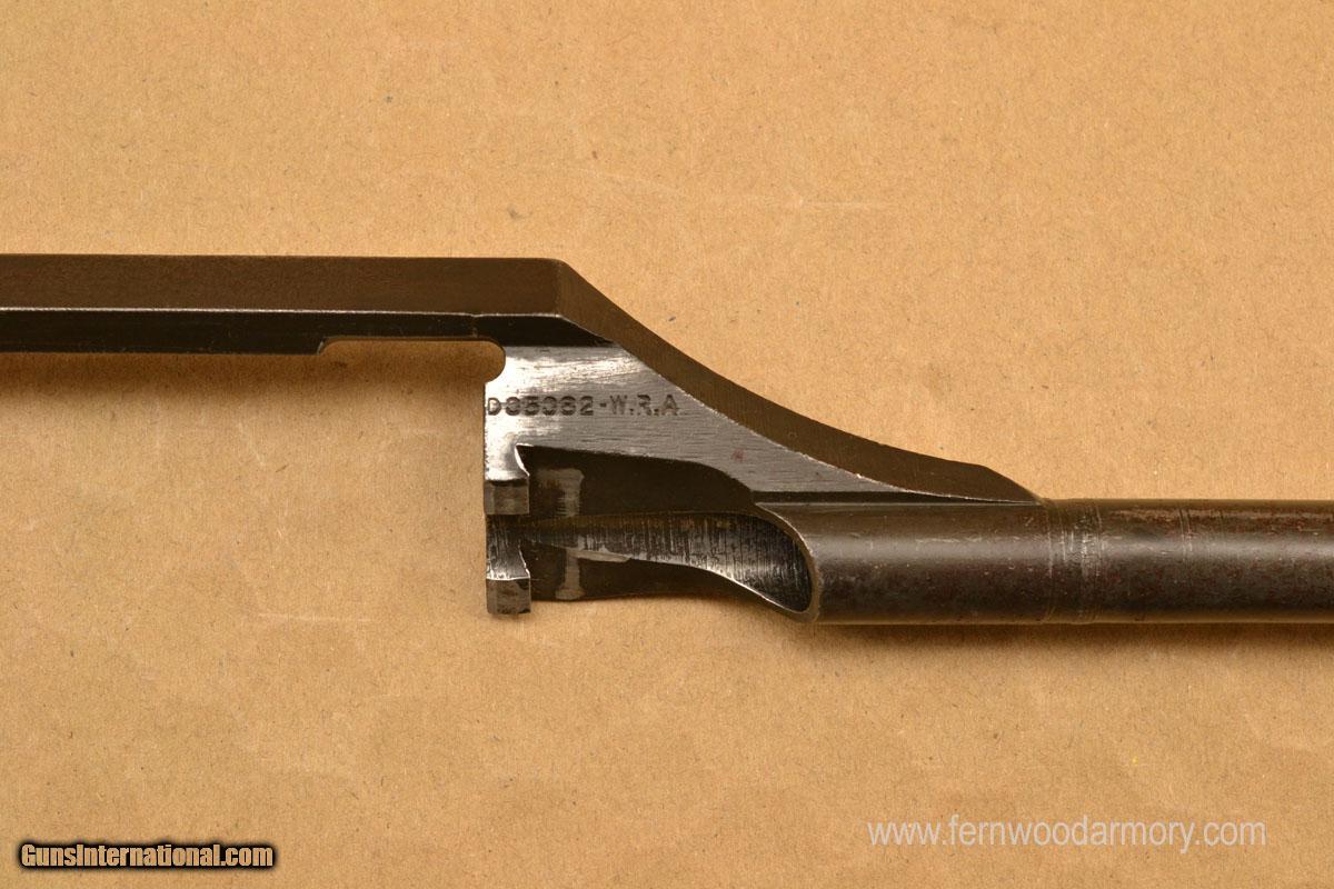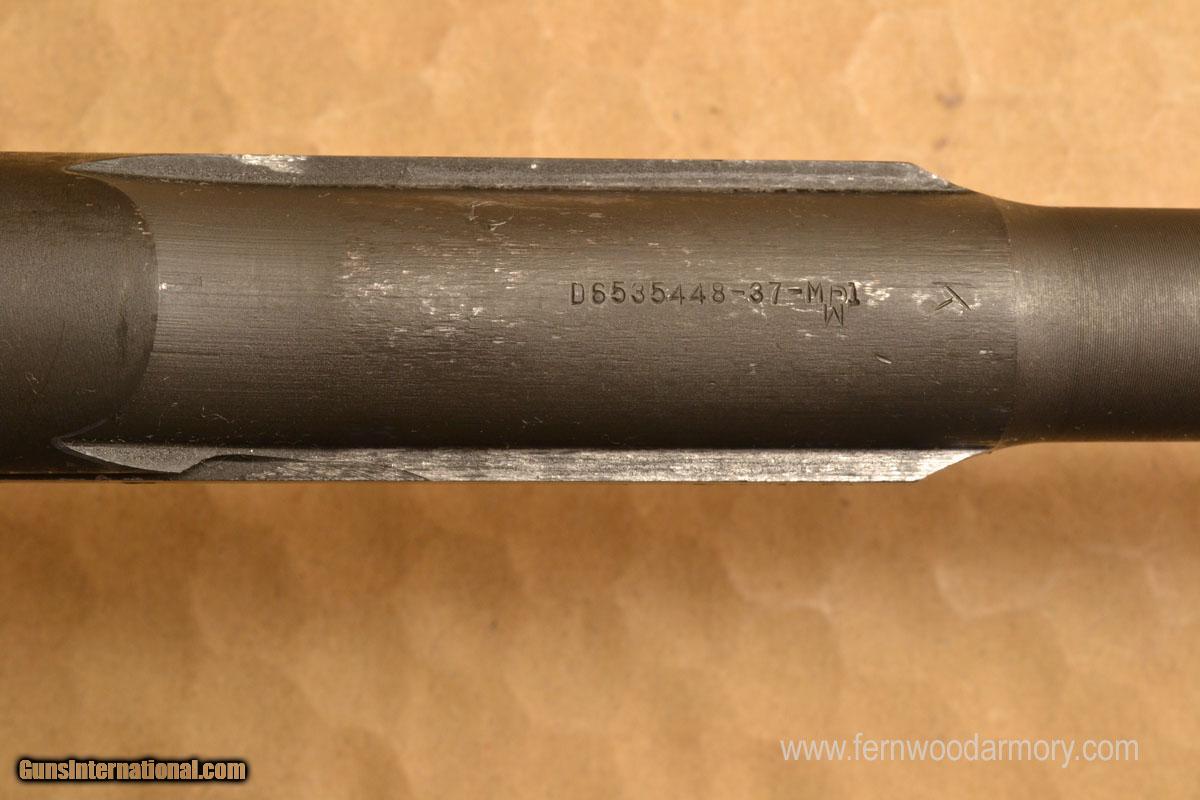 Description: Winchester M1 Garand serial number 23744xx, manufactured January 1944. Springfield barrel dated 1950 with a bright bore. Other major parts on this M1 are Winchester: bolt, trigger housing, op rod, and safety. No import marks. Stock is new walnut. This Garand has been disassembled, cleaned, lubricated, and test fired. Parts were clean for photos, coated with oil and greased where appropriate when reassembled. Two M1 enbloc clips (no ammo) and canvas repro sling are included. Winchester M1 sn 23744xx Specs: Receiver: marked “D28291-2” on leg. Misc. assembly markings on several surfaces underneath. Excellent condition, absolutely no pitting. Lettering/serial are sharp, original finish shows considerable wear. Receiver legs have rough machining marks, typical for Winchester. Barrel: marked “S-A-8-50” in op rod slot with “M” and “S”, “D6535448-37-M-1”, with small crossed cannons stamp. External finish in good condition other than the expected wear in contact areas, no pitting. The bore is bright, rifling good. Chrome pads at gas port. Barrel Gauge Measurements: Muzzle Erosion (ME): 2, Throat Erosion (TE): 3 Op rod: slant cut side, marked “D35382 W.R.A”, modified. Very good condition with some finish wear, no pitting Op rod catch: late type, unmarked Bullet guide: WWII milled type with punch mark Clip latch: late square front type, unmarked Follower: marked “11” Follower arm: no bevel Follower rod: long fork, riveted Bolt: marked “D28287-1 W.R.A.”, with hole in underside. Headspace is exactly right, not always the case with WRA bolts. Sight knobs: T105 postwar type, elevation marked “VAR”, windage unmarked other than “LEFT” Rear sight cover: late type with ribs Rear sight aperture: double track Trigger housing: marked “D28290 W.R.A.”, large pad, cloverleaf hole. Very good condition, no pitting, has finish wear Trigger guard: stamped with stamped hook Trigger: late type, no extra hole Hammer spring plunger: late type without wings Hammer: marked “C46008-5 SA” Safety: flat top, marked “WRA-1” Gas cylinder: wide sight platform, flat on top of rear ring. The gas cylinder group has been refinished. The gas cylinder/barrel fit has been tightened to maximize accuracy. Front sight: 0.65 wide Gas cylinder lock: beveled front type, unmarked Gas cylinder lock screw: cross slot poppet valve type, marked “P” and “X” Stock and handguards: new, walnut, nice finish Sling: new repro TERMS Items are also available in our online store, please call or email to confirm availability. Credit Cards, Checks and Money Orders accepted. Free shipping to FFL in lower 48 states. Please contact us for quotes to Alaska and Hawaii. No Local Pickup. Sales Tax charged to Florida residents only. Payment and FFL information must be received within 5 business days or item will be relisted for sale. Return Policy: