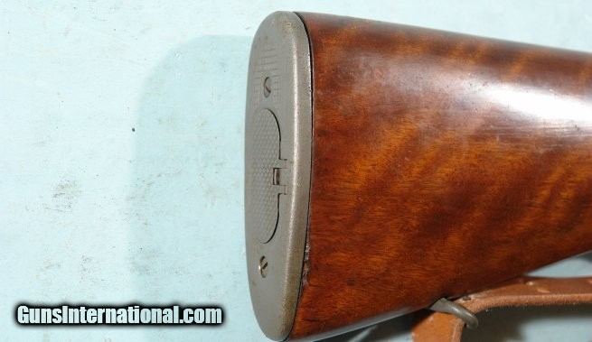Description: WW2 SPRINGFIELD U.S. M1 OR M-1 GARAND .30-06 RIFLE CIRCA 1942. 8xx,xxx serial range produced in August 1942 at the beginning of the Battle of Guadalcanal. Rebuilt 1953 during the Korean War with import marked Springfield Armory barrel dated “5-56” with replaced original Springfield parts. Very good over all with nearly all the re-parkerized finish. Wood excellent as refinished. Nice tight working order and very good plus bore. Nice quality WW2 reproduction leather U.S. “MILSCO/1944” sling. SOLD Curio/Relic: Yes Rifle Caliber: .30-06 Springfield |