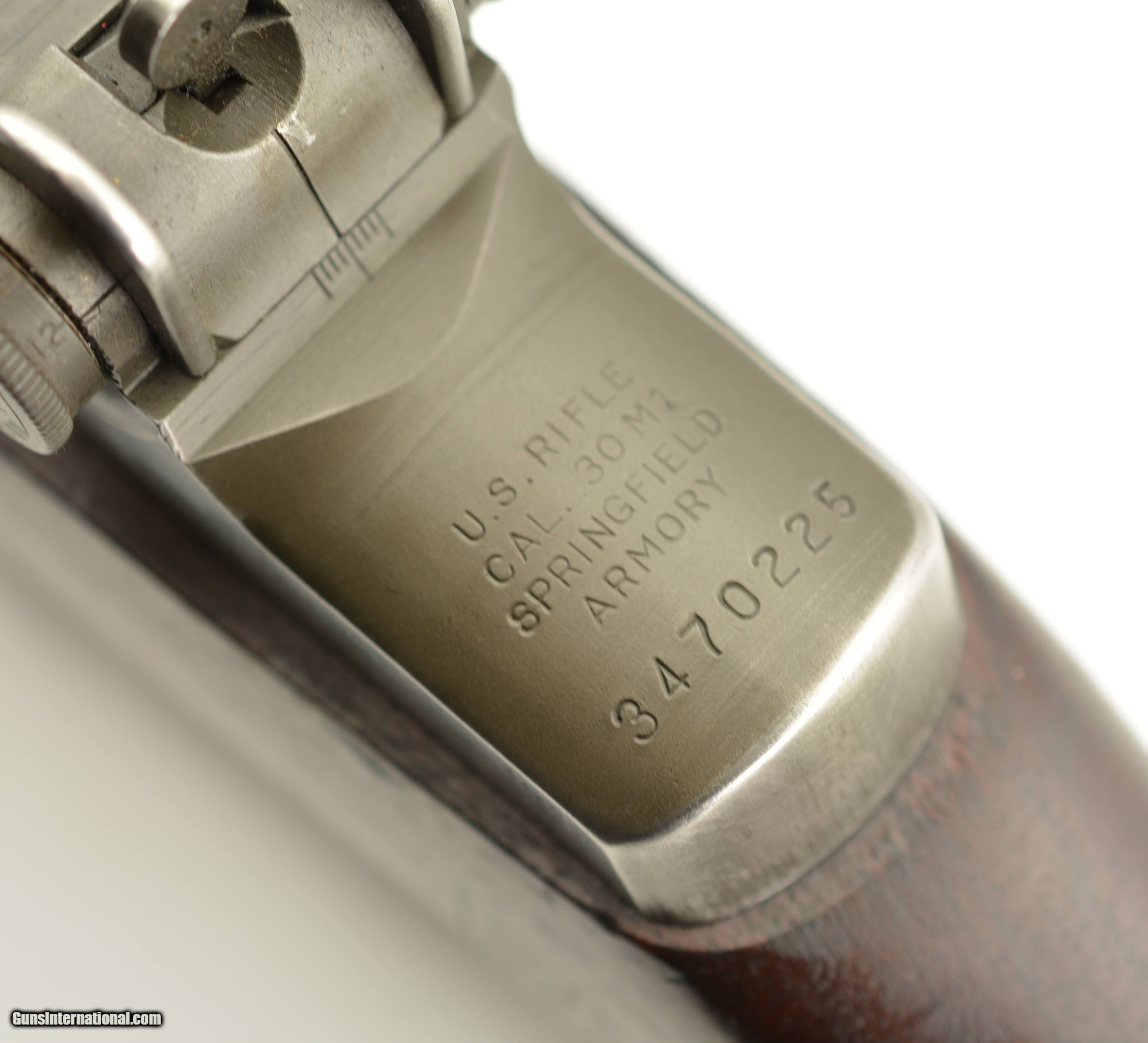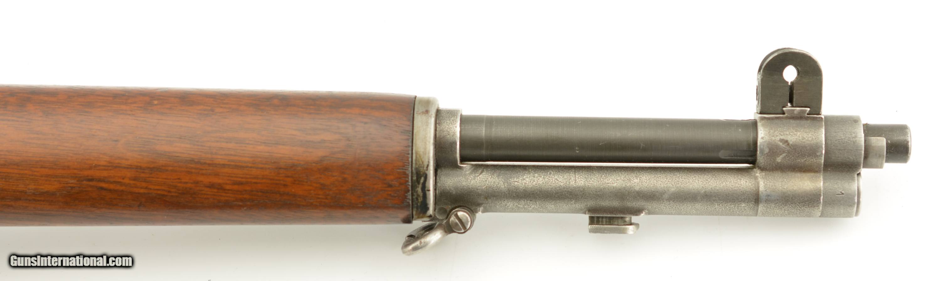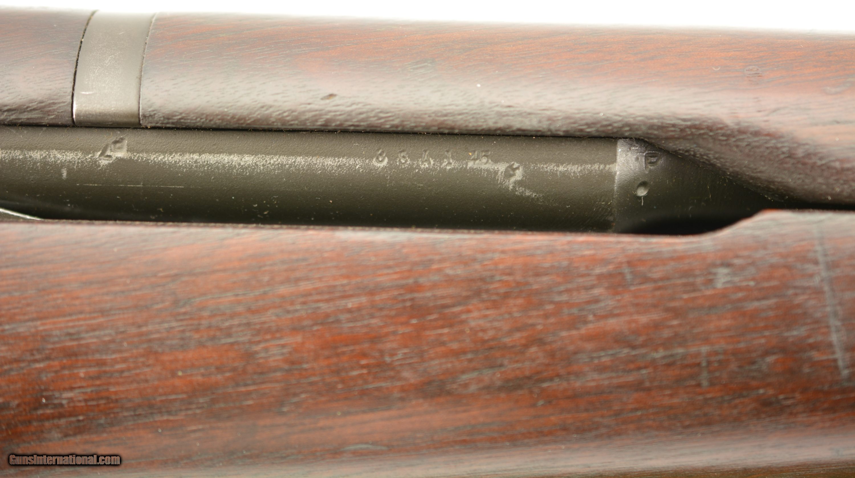 Description: Serial #3470225, .30-06, 24" barrel with an excellent, bright bore. The receiver of this rifle was manufactured by Springfield in January of 1945, and the rifle itself has all correctly marked parts except for the trigger housing, which is, however, correct for December of 1944 production. The metal retains 90-92% of the original parkerized finish, with silvering and gray fading at the muzzle, gas port cylinder, along the exposed edges and projections, and on the bearing surfaces of the bolt and op-rod raceway. The walnut stock set is in fine condition, having minor scratches and handling marks in the armory reapplied military oil finish. Correct "S.A. / N.F.R." and Ordnance Department crossed cannons are present on the left side, and a 1945-dated canvas M1 sling is installed. This is a splendid looking Garand, made during the last year of the war, and is in fine-near excellent condition overall. FFL or C&R SOLD Curio/Relic: Yes Manufacturer: Spfld Model: Garand Serial Number: 3470225 Caliber Info: .30-06 Gauge Info: .30-06 |