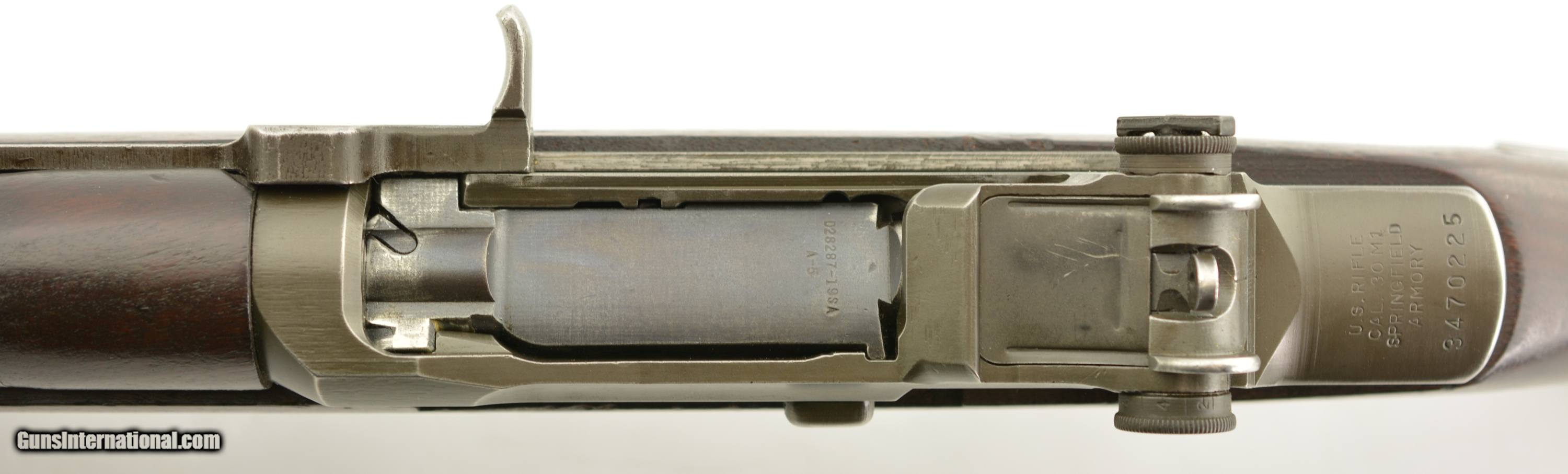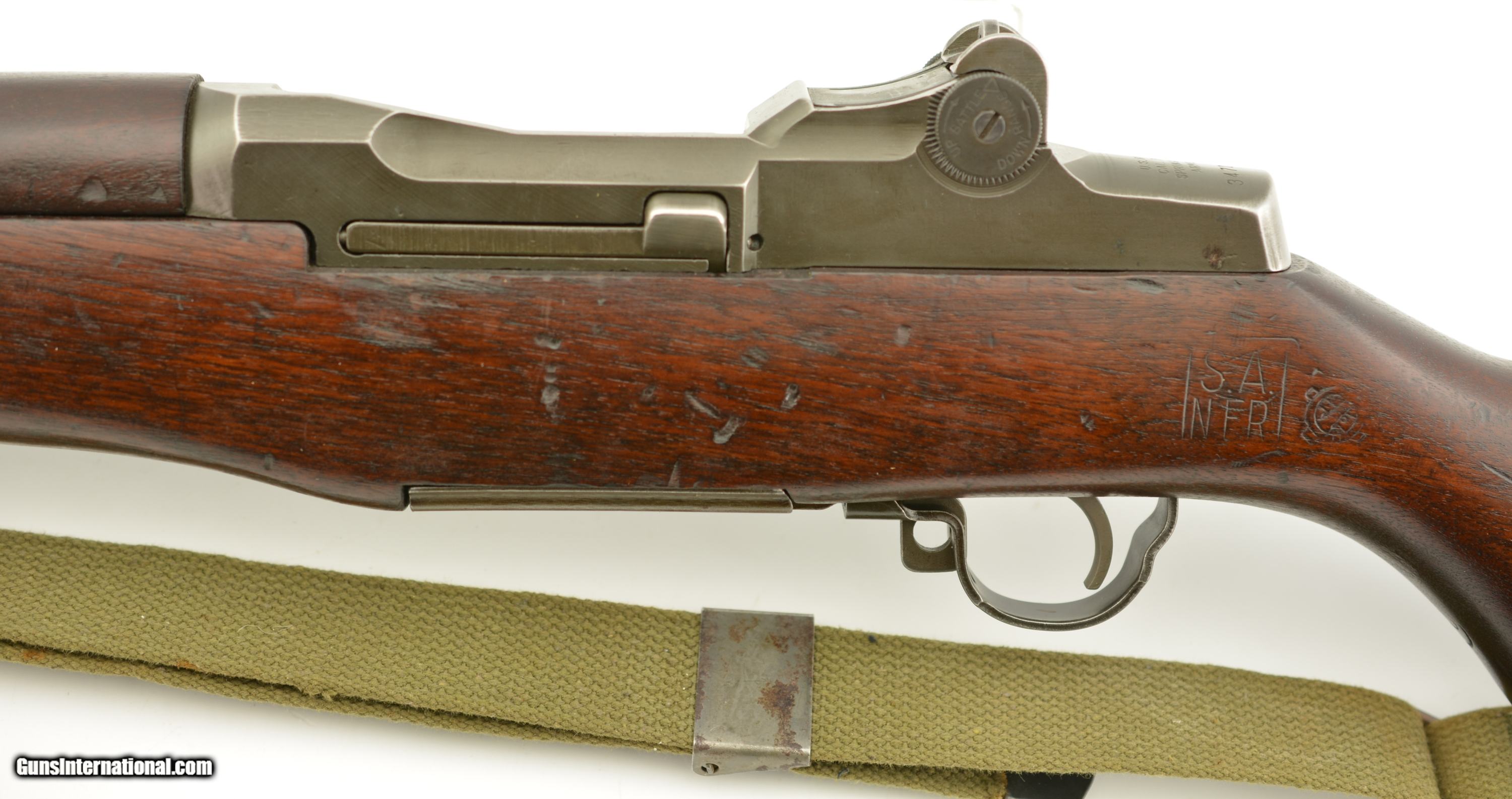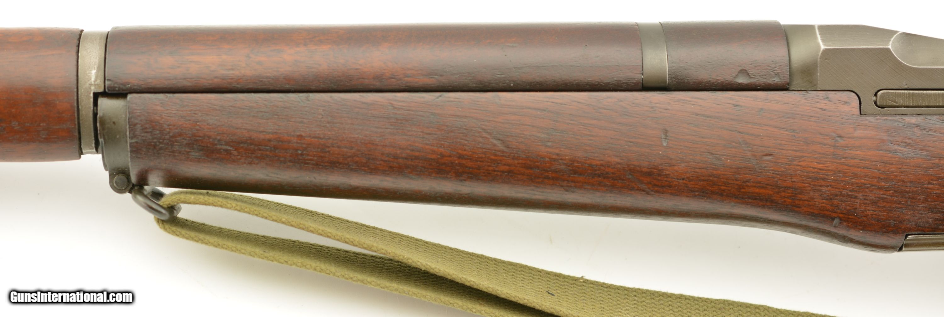 Description: Serial #3470225, .30-06, 24" barrel with an excellent, bright bore. The receiver of this rifle was manufactured by Springfield in January of 1945, and the rifle itself has all correctly marked parts except for the trigger housing, which is, however, correct for December of 1944 production. The metal retains 90-92% of the original parkerized finish, with silvering and gray fading at the muzzle, gas port cylinder, along the exposed edges and projections, and on the bearing surfaces of the bolt and op-rod raceway. The walnut stock set is in fine condition, having minor scratches and handling marks in the armory reapplied military oil finish. Correct "S.A. / N.F.R." and Ordnance Department crossed cannons are present on the left side, and a 1945-dated canvas M1 sling is installed. This is a splendid looking Garand, made during the last year of the war, and is in fine-near excellent condition overall. FFL or C&R SOLD Curio/Relic: Yes Manufacturer: Spfld Model: Garand Serial Number: 3470225 Caliber Info: .30-06 Gauge Info: .30-06 |