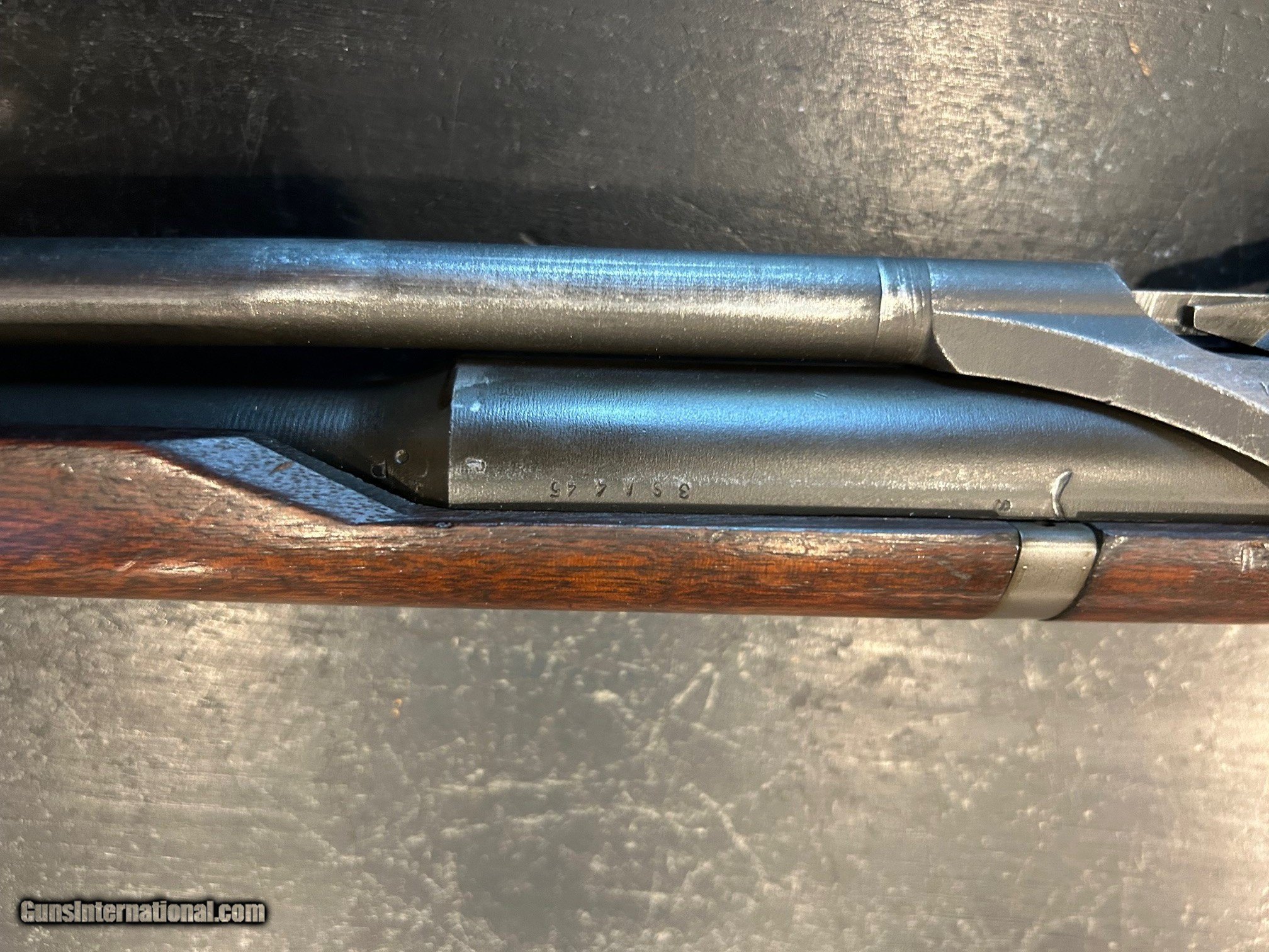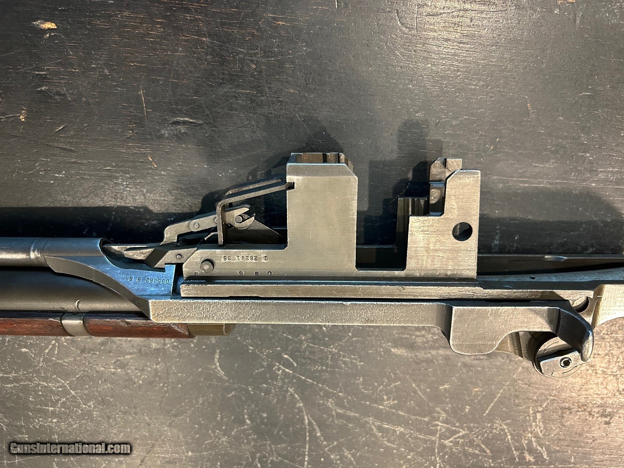 Description: May 1945 production Springfield M1 Garand with 4/45 dated barrel. SN: 3715993. Cartouche on stock SA over NFR. WWII production with WWII parts, not an arsenal rebuild. Very nice rifle. Canvas WWII sling included. SOLD Curio/Relic: Yes Rifle Caliber: .30-06 Springfield Manufacturer: Springfield Model: M1 Garand |