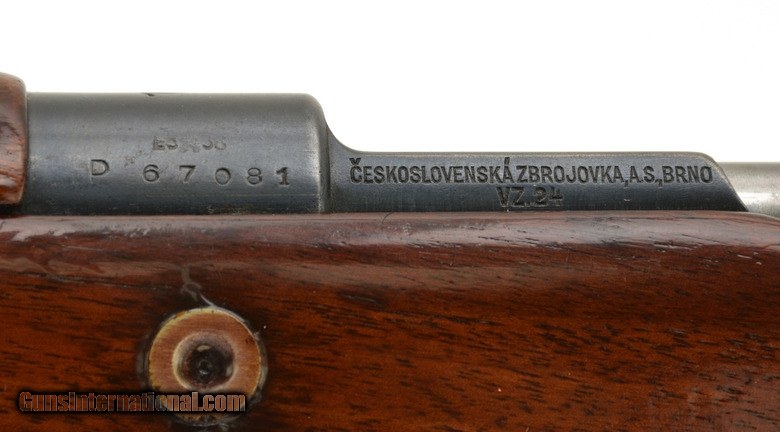 Czech VZ24 8mm caliber rifle. 1937 production. Serial numbers are non-matching. Bore is very good with strong rifling. Wood has a varnish and looks good. Very good overall condition.