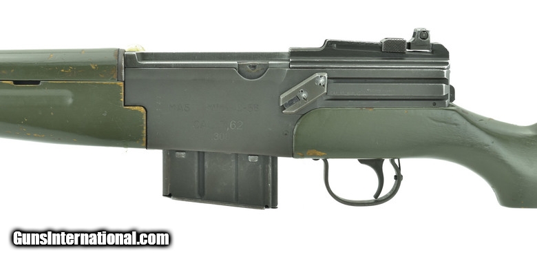 Description: French MAS 1949-56 .308 Win caliber rifle. French post WWII semi-auto military rifle. Bore has strong rifling with minor frosting. Stock is green. Very good overall condition converted to shoot .308.