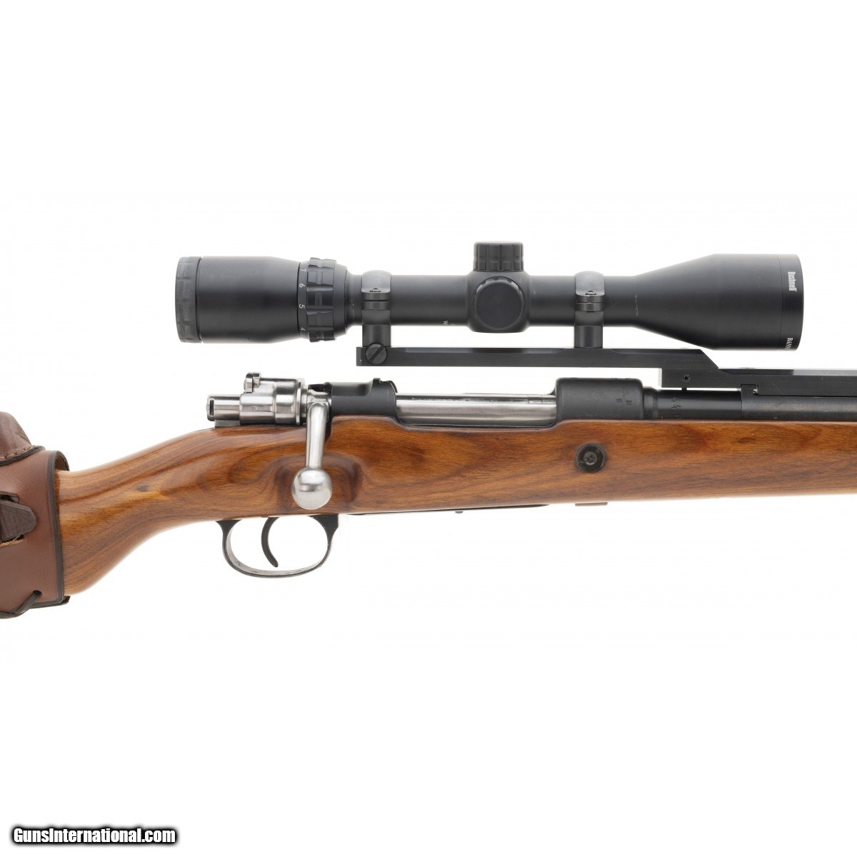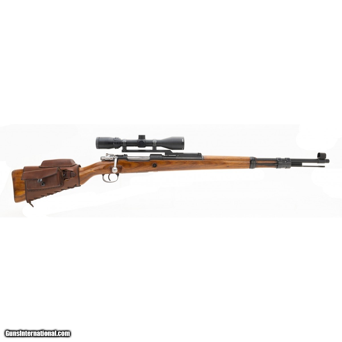 Mitchells Mauser K98, has been refurbished. Stock has a varnish and looks good. Bore has strong rifling with very minor frosting. Rear sight has been replaced with a 3-9X scope. Serial numbers are matching. Very good overall condition.