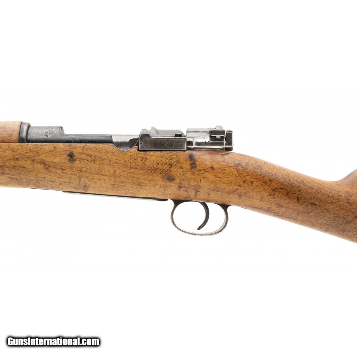 Description: " Swedish Mauser rifle dated 1908 with a 30"" barrel. The serials are matching. The bore is excellent with strong rifling. Overall condition is very good with some handling wear on the stock. SOLD |